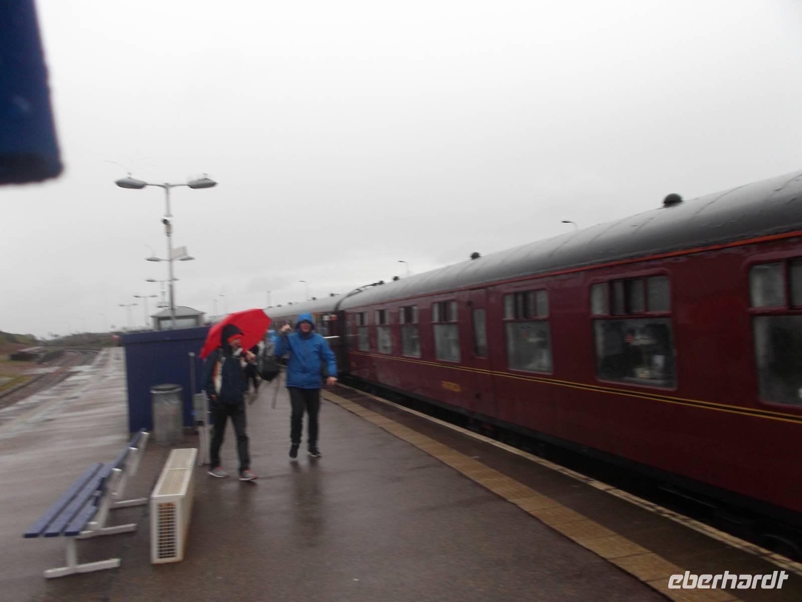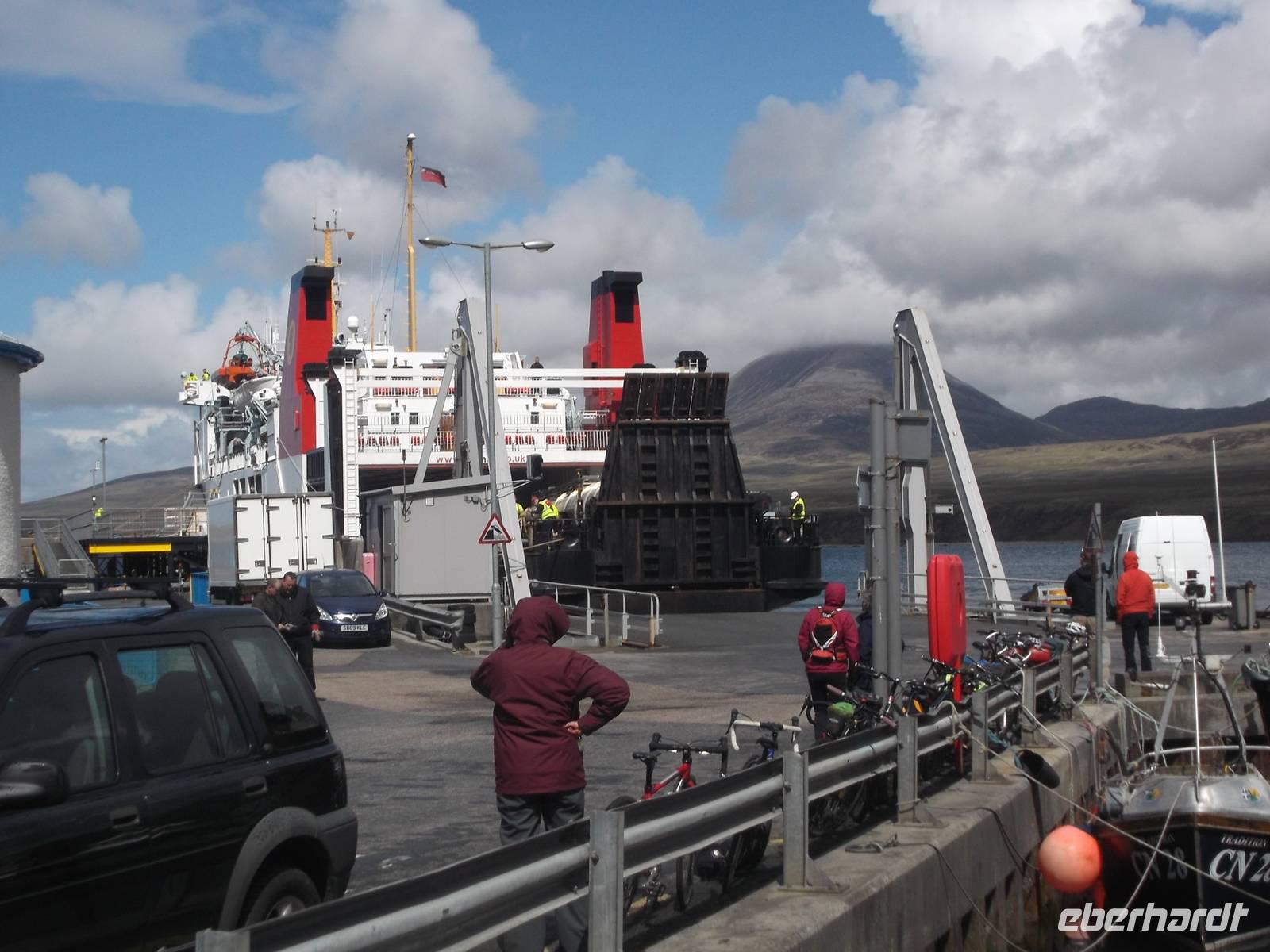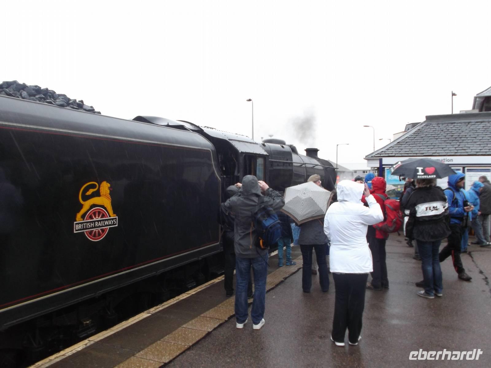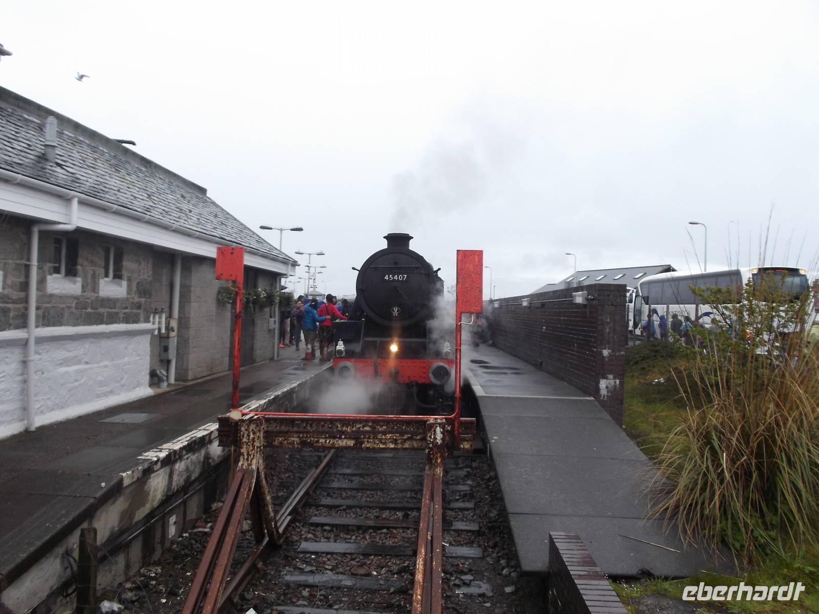 Mit der Fähre der Fährgesellschaft Caledonian McBrayne fuhren wir am Nachmittag von Armadale auf Skye zum Hafenort Mallaig auf dem Festland. Hier konnten wir sogar die Ankunft des kleinen Dampfzuges miterleben, der durch seinen Auftritt in den „Harry Potter"-Verfilmungen einige Berühmtheit erlangt hat.