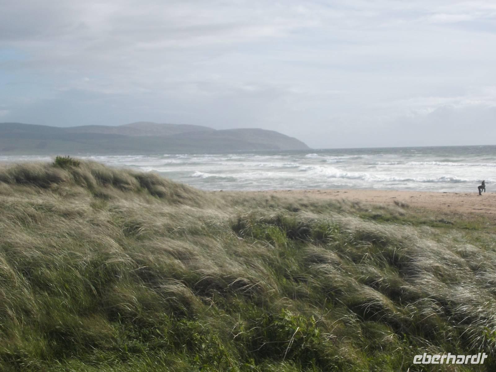 Später fuhren durch herrliche Landschaft und entlang der Meeresküste nach Süden, bis wir die bekannte Halbinsel Kintyre erreichten. Die langgestreckte Halbinsel ist wunderschön, man kann das rauhe Meer beobachten und an klaren Tagen bis zum hier nur gut 20 km entfernten Nordirland hinübersehen. Die Südspitze der Halbinsel, der von einem Leuchtturm gekrönte Felsen „Mull of Kintyre" erlangte Berühmtheit durch den gleichnamigen Song von Paul McCartney und seiner Gruppe „Wings", die die Heimatgefühle besangen, die beim Anblick des Felsens aufkommen...