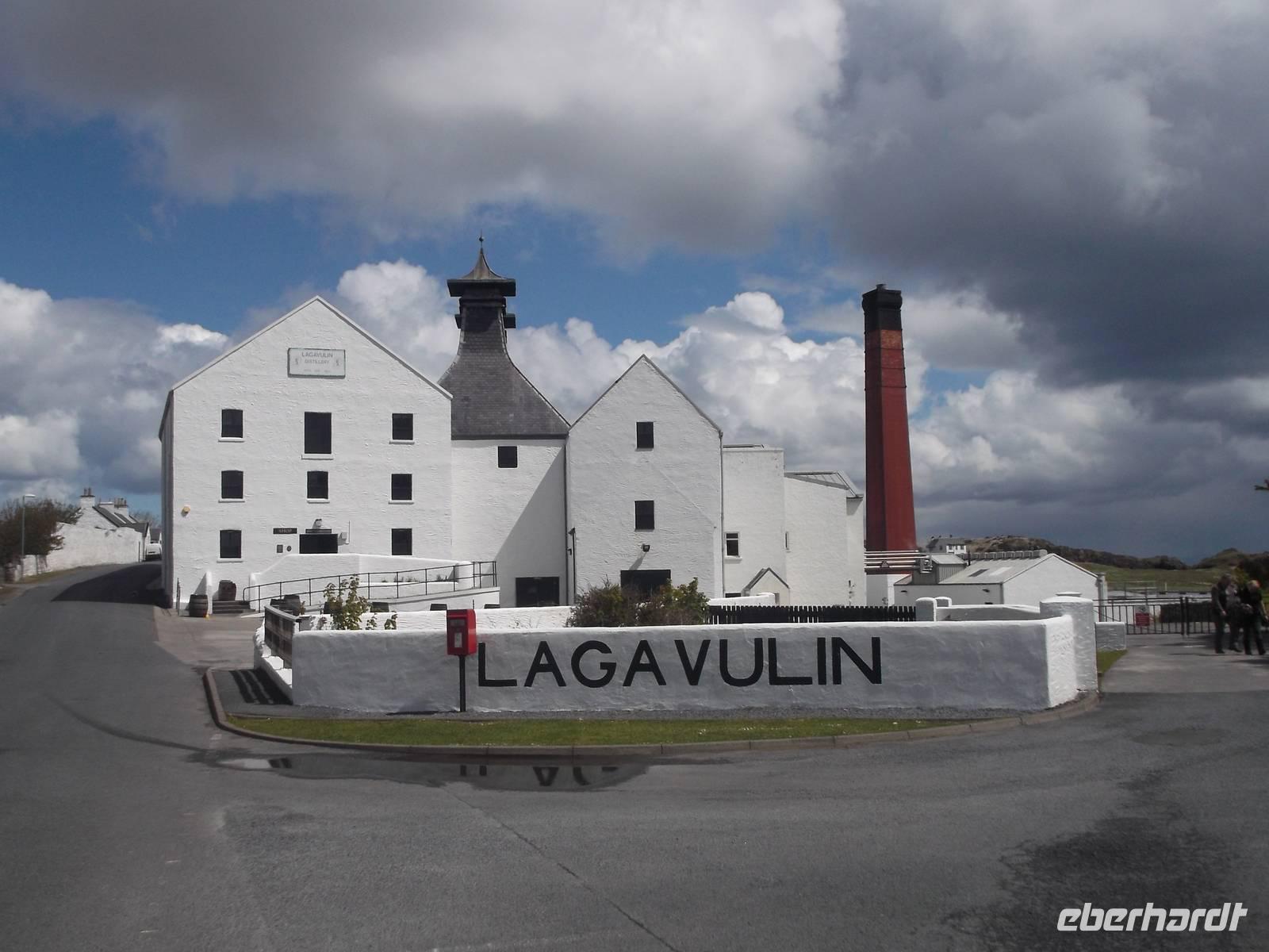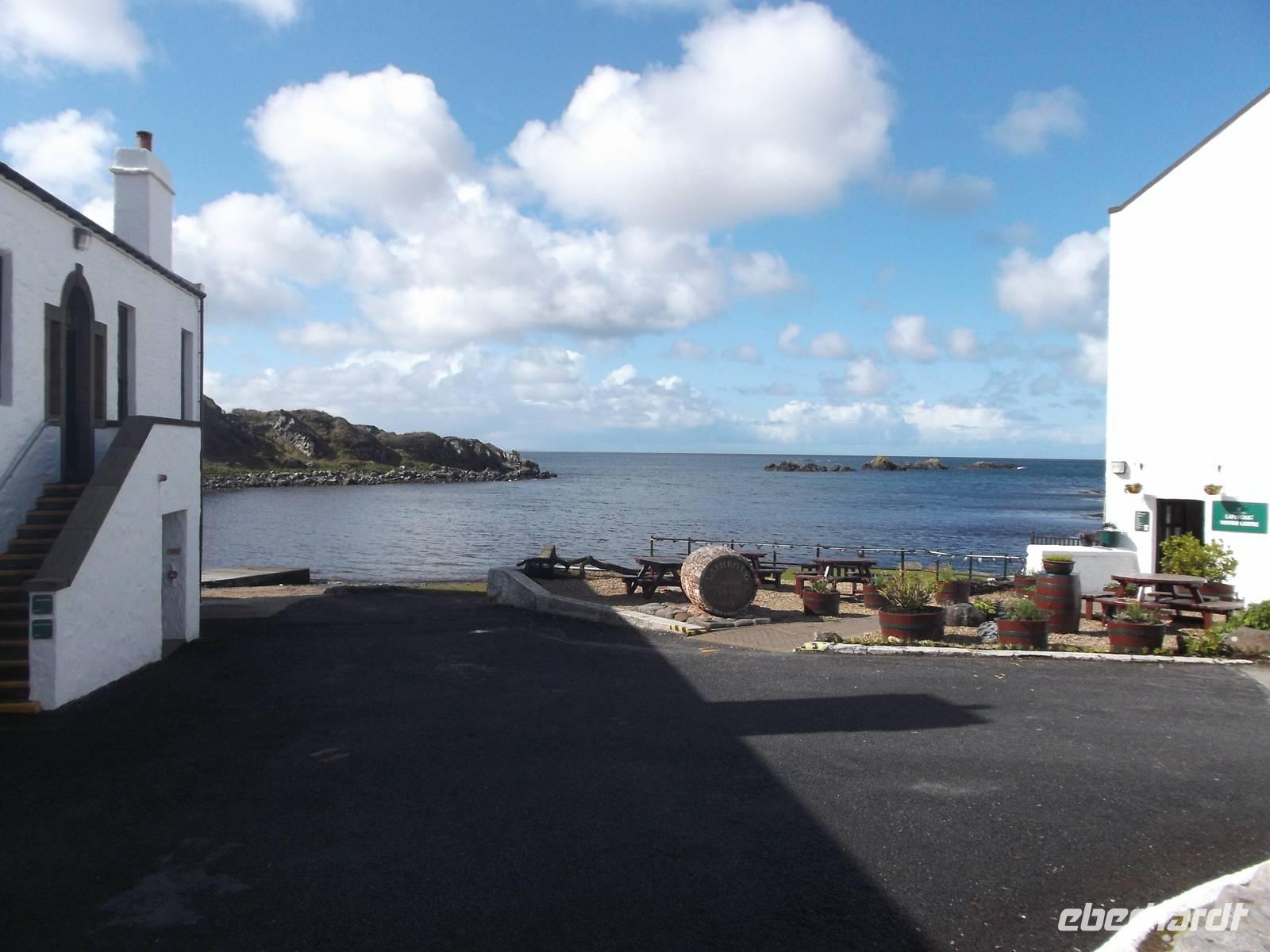 Recht selten findet sich die Hebrideninsel Islay in Reiseangeboten. Auf dem 620 km ² großen Eiland, das damit nur etwa zwei Drittel so groß ist wie die Insel Rügen, finden sich derzeit nicht weniger als acht aktive Whiskybrennereien. Aufgrund ihrer Besonderheiten bildet Islay eine eigene Whiskyregion und wird weder zu den Hochland- noch zu den Inselwhiskys gerechnet. Sehr früh mussten wir heute aufbrechen, denn um nach Islay und dann wieder zurück auf's Festland zu gelangen, brauchten wir ganz bestimmte Fähren und mussten deren Abfahrtzeiten genau einhalten. Schon halb sieben standen wir am Hafen von Kennacraig bereit und setzten in knapp zweieinhalbstündiger Fahrt nach Port Ellen auf Islay über. Da unser Aufbruch zu früh für ein Frühstück im Hotel war, konnten wir das typische warme Frühstück mit Schinken und Ei, Würstchen, Bohnen und Pilzen auf dem Fährschiff genießen. Bei schönem Wetter erreichten wir Islay und starteten gleich mit der Besichtigung der renommierten Laphroig-Brennerei.