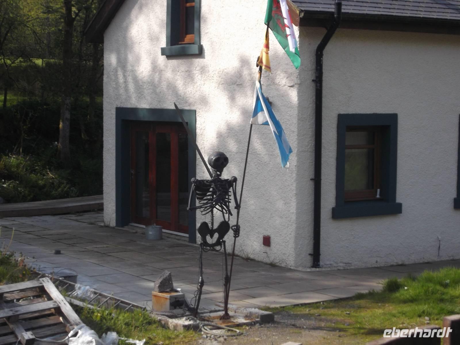Das Dörfchen unmittelbar an der englisch-schottischen Grenze ist nämlich durch eine ungewöhnliche Art von Hochzeit zur Berühmtheit gelangt ist. Unterschiedliche Gesetze bezüglich der Eheschließung in Schottland und England sorgten im 18. und 19. Jahrhundert dafür, dass in Schottland junge Paare ohne Einwilligung der Eltern und mit wesentlich jüngerem Lebensalter als im gestrengen England heiraten durften. Viele Liebespaare heirateten daher oftmals heimlich, mitunter von zur Eheverhinderung entschlossenen Eltern verfolgt im Nachbarland und manche sollen es eben nur gerade über die Grenze geschafft haben. Auf der einzigen Straße nach Schottland lag eben Gretna Green und hier mußte man sich vom Friedensrichter trauen lassen. Das war nach allgemeinem Brauch der Grobschmied des Ortes und weil er hiermit oft reichlich zu tun hatte, erledigte er die Trauungen oft gleich in seiner Werkstatt. Nach schottischem Gesetz waren neben dem Brautpaar nur zwei Zeugen nötig - und die fand man für ein paar Penny. Waren alle um den Amboss versammelt, nahm Schmied den Hammer, um mit einem Schlag auf den Amboss das junge Brautpaar so zu verbinden, wie er sonst Eisen zusammenschmiedete. In der Neuzeit ist aus der einstigen Grobschmiede ein Touristenzentrum mit Museum, Gaststätten, Souvenir und Whiskyshop geworden. Wir hatten genügend Zeit, um uns alles anzusehen oder vielleicht den letzten Whisky zu kaufen... Auf jeden Fall war mit diesem Ort der Abschied von Schottland verbunden.