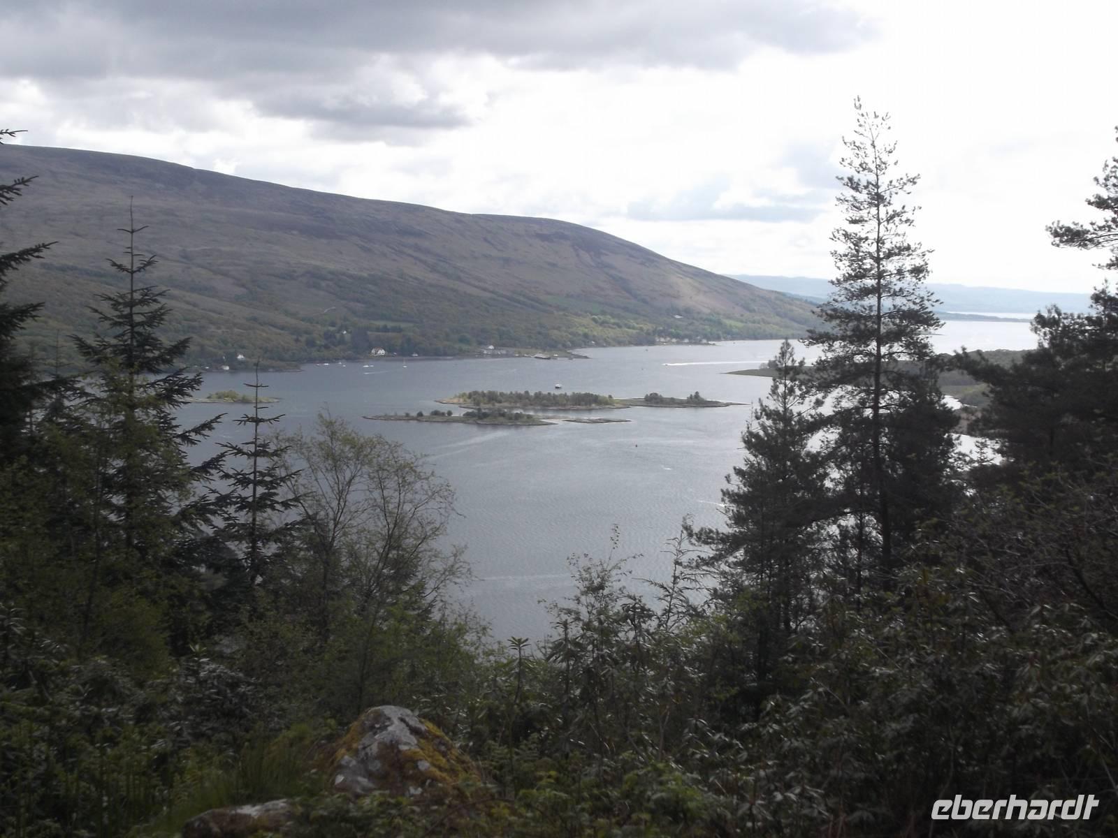 Auf einer der schönsten Küstenstraßen Schottlandfs, der „Road oft he Isles" ging es dann weiter. Mit Fotostopps am Princes Cairn - einer Felseninsel, auf der sich „Bonnie Prince Charlie" auf seiner Flucht vor den Engländern nach der verlorenen Schlacht bei Culloden 1746 versteckt haben soll - und am Glenfinnan-Monument setzten wir die Fahrt fort. Der Turm von Glenfinnan steht an der Stelle, an der Bonnie Prince Charlie 1745 seine Standarte aufgepflanzt und die Highlander zu den Waffen gegen England gerufen haben soll. Später stoppten wir noch an Neptunes Staircase, einer aus acht hintereinanderliegenden Schleusen bestehenden Anlage des Kaledonischen Kanals, der Inverness per Wasserweg mit Fort William verbindet, jenem Ort, in dem unser nächstes Hotel lag.