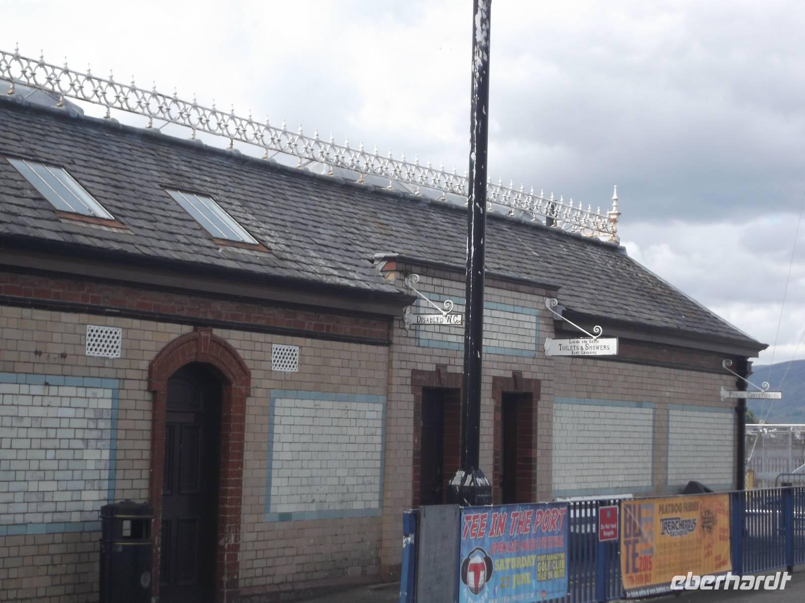 Die Stuarts schützen Rothesay seit dem 13. Jh. bereits durch eine starke Burg, die wir am frühen Nachmittag besichtigten. Rothesay Castle ist Schottlands einzige Rundburg und entstand als „Motte" auf einem künstlich angelegten Hügel und Wassergraben. Ihr Grundriss - kreisrund mit vier ausfallenden zusätzlichen Rundtürmen im Mauerverlauf und mit dem später vorgesetzten und als Torbau dienenden rechteckigen Bergfried ist gut zu erkennen und die Ruine bietet insgesamt einen imposanten Anblick. Wir hatten Zeit, sie zu besichtigen und da sie mitten in der Stadt liegt war es danach einfach, das Städtchen Rothesay bei einem Bummel näher kennenzulernen.