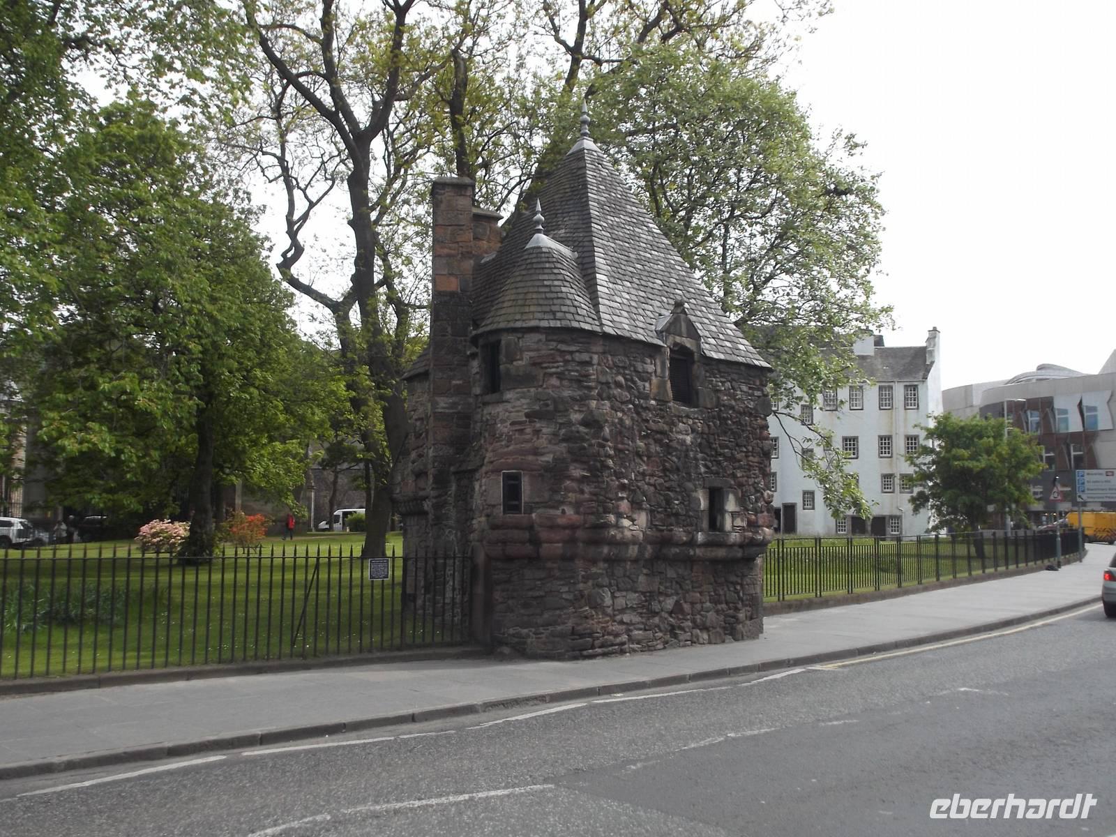 Wir setzten unsere Reise in die schottische Hauptstadt fort und trafen uns dann am Rand der Neustadt mit unserer Stadtführerin. Marion zeigte uns bei einer Stadtrundfahrt durch Edinburgh zunächst die Neustadt, die im 18.Jahrhundert in komplett georgianischem Stil erbaut worden war. Stadtpaläste mit kleinen Balkons und gusseisernen Balustraden sind hier ebenso charakteristisch wie die nur den Anwohnern vorbehaltenen kleinen eingezäunten Parks und verschiedene alte Vorrichtungen wie etwa zum Fackellöschen, zum Stiefelabtreten und den erhöhten Trottoirstein um leichter auf's Pferd zu steigen.