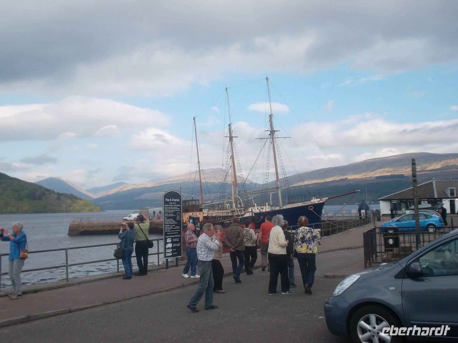 Der Nachmittag führte uns durch Schottlands größte Stadt Glasgow und über die beeindruckende Erskine Bridge erst einmal zum vielbesungenen Loch Lomond. Theodor Fontane, Schottland-Kenner und Verfasser des ersten „Werbe"Büchleins für Schottland, liebte diesen See und nannte ihn eine „große noble Wasserfläche ... und den König der Seen". An seinem Ufer liegt der hübsche Ferienort Luss, in dem wir eine längere Kaffeepause einlegten, die von den Gästen gern zum Seespaziergang genutzt wurde.