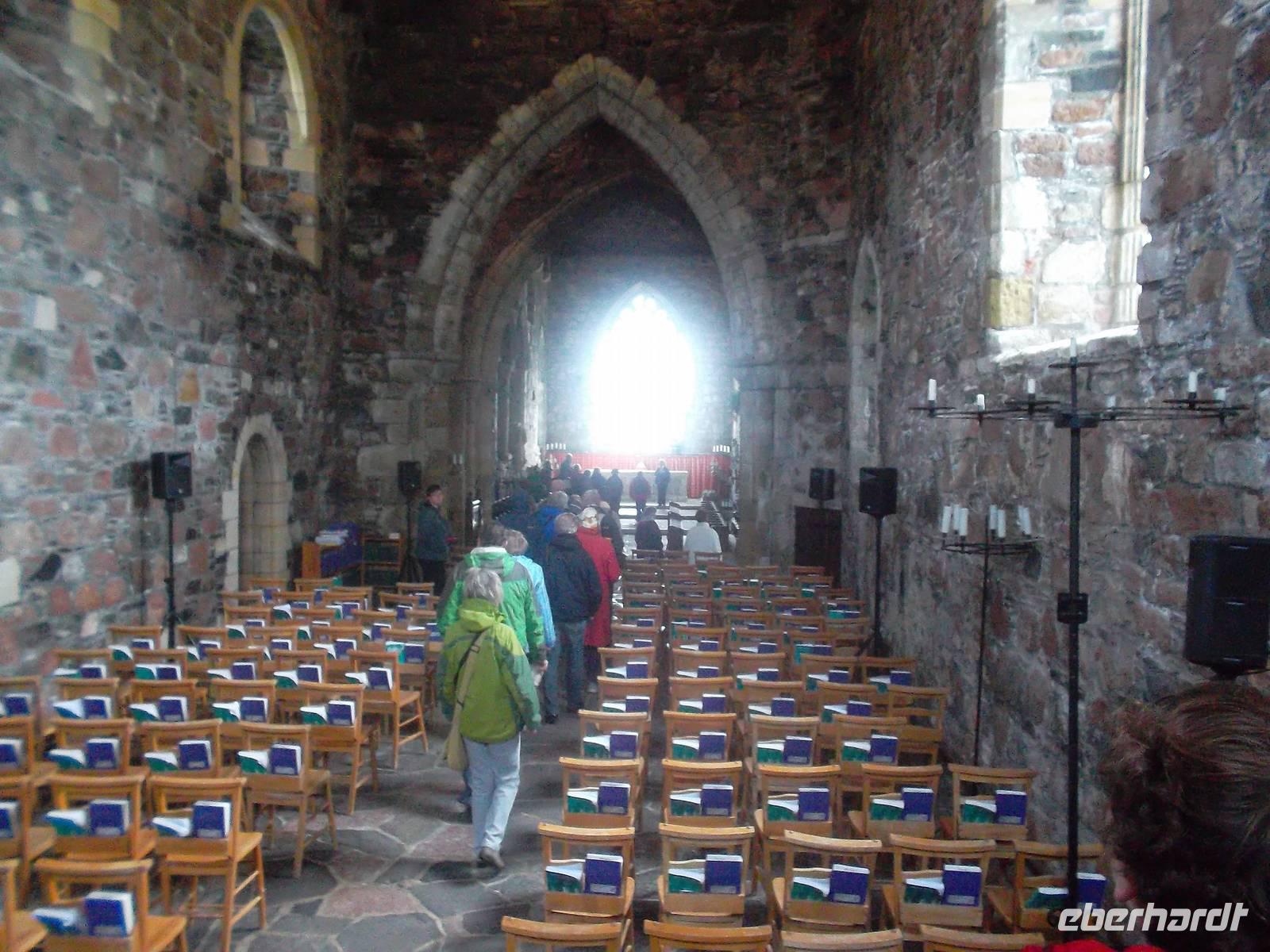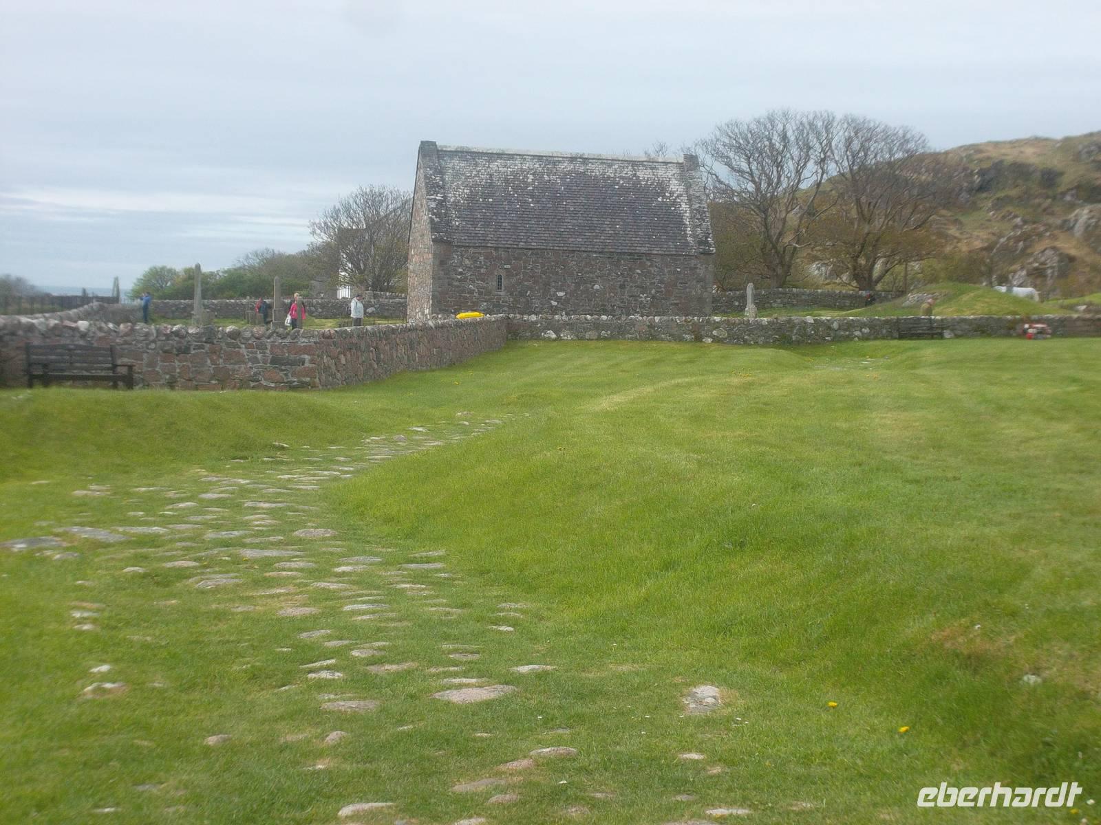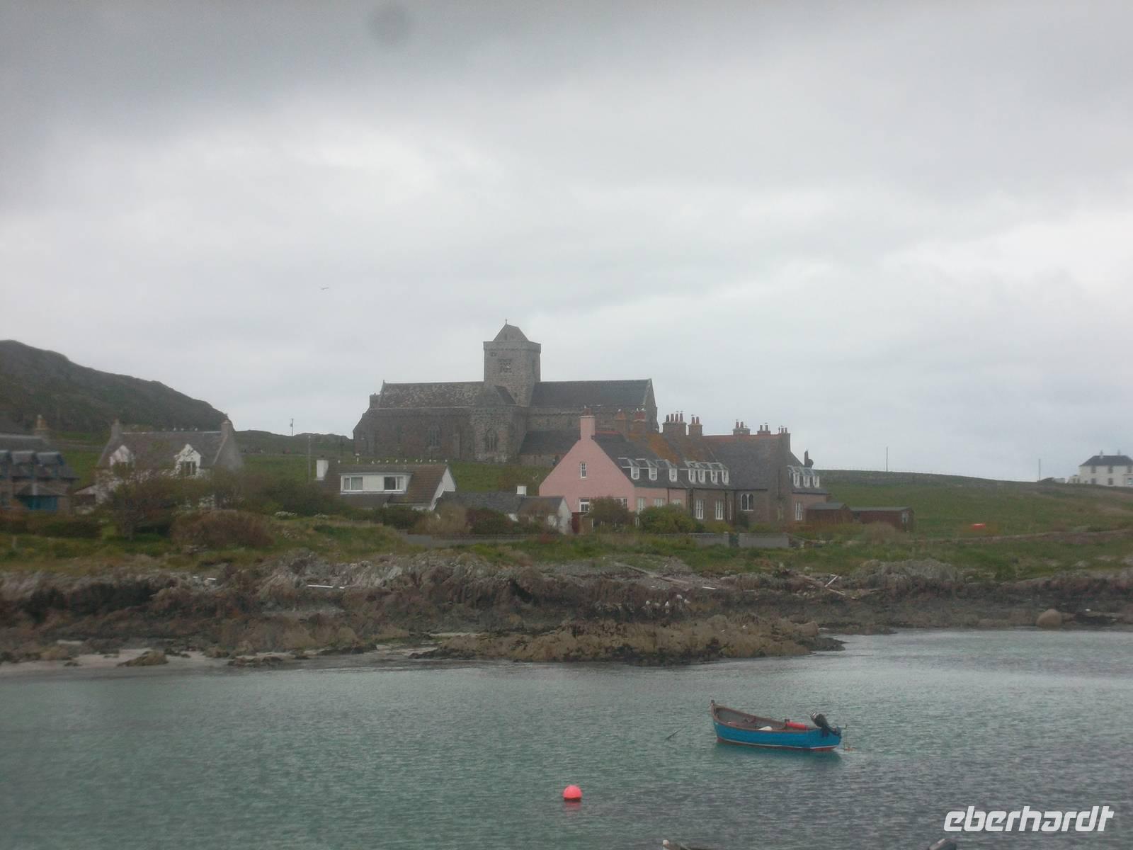 Mit der Frühfähre der Firma „Caledonian McBrayne" gelangten wir schon kurz nach acht Uhr auf die Insel Mull. Es ist die zweitgrößte Insel der Inneren Hebriden, die durch ihre Landschaftsfülle bekannt sind. Wie immer an dieser Stelle wurde es etwas „klassisch", denn ich spielte den Gästen über dir Bus-Lautsprecher-Anlage die „Hebridenouvertüre" von Felix Mendelssohn-Bartholdy vor. Wir durchquerten spektakuläre Landschaftsszenerien, während uns der Bus zu der kleinen Fähre nach und von Iona brachte.