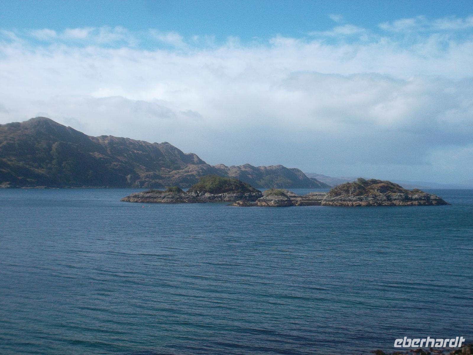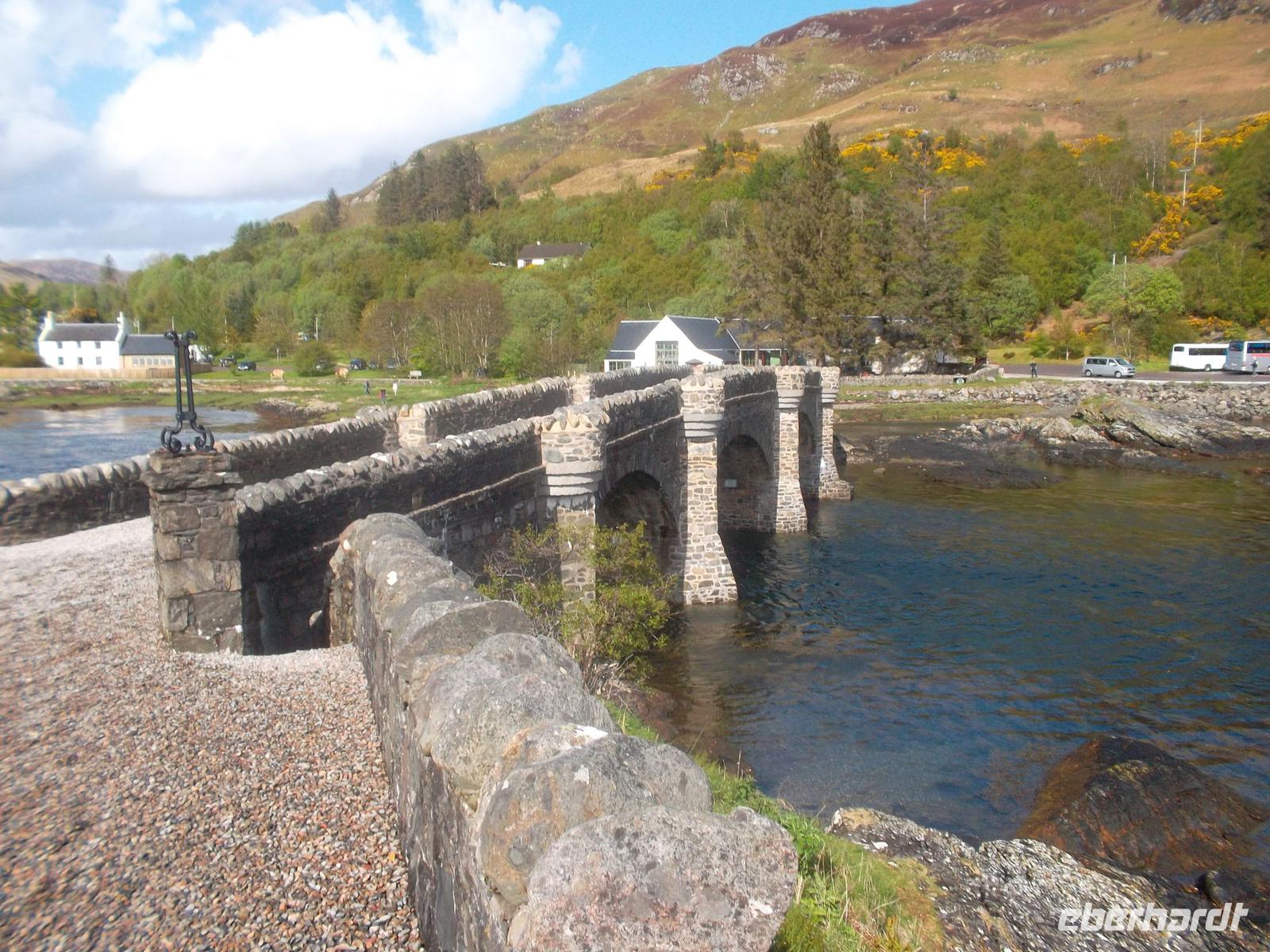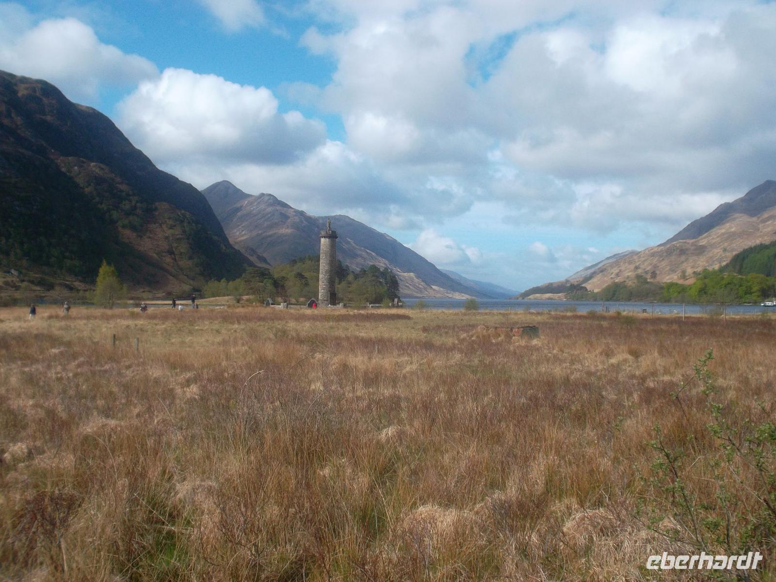 „Road of the Isles" ist der Name für die Straße von Fort Wiulliam zum Fischer- und Hafenort Mallaig. Als erstes erreicht man hier die originelle Schleusentreppe „Neptunes staircase", eine Abfolge von acht Schleusen im Verlauf des „Kaledonischen Kanals". Damit werden Höhenunterschiede überwunden - errichtet hat sie im 19. Jahrhundert der berühmte Ingenieur Telfort. Der nächste Fotostopp ergab sich - bei schönstem Fotowetter - am bekannten Glenfinnan Monument. Hier hatten sich 1745 königstreue Highlander nach dem Waffenruf des in Frankreich exilierten Thronanwärters „Bonnie Prince Charlie" gegen die englische Herrschaft über Schottland erhoben. Da nach anfänglichen Erfolgen jedoch die Armee der Highlander in der verlorenen Schlacht bei Culloden 1746 zugrundeging, begründete dies eines der dunkelsten Kapitel der schottischen Geschichte. Von Glenfinnan aus sieht man auch das gleichnamige Eisenbahnviadukt, das aus den Harry-Potter-Filmen bekannt ist.