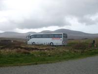 Da wir schon den besonderen Höhepunkt von Harris kannten und ihn den Reisegästen nicht vorenthalten wollten, lieferte Chauffeur Alf noch eine Meisterleistung: er fuhr uns auf der schmalen „schönsten Küstenstraße der Hebriden" zurück. Die winzige, gerade eine Busbreite umfassende Straße in vielfachem Auf und Ab verbindet malerische Fischerdörfer und Gehöfte und führt direkt am Ufer innnerhalb spektakulärer Felsenszenerien entlang. Nach schmackhaftem und reichhaltigem Abend-Buffet wartete unser Hotel in Stornoway mit einer Überraschung und dem letzten Tageshöhepunkt auf: man hatte nicht nur eine „Sonderverkostung" leckeren Inselwhiskys organisiert, sondern auch eine Folklorevorführung mit Dudelsack, Tänzerinnen und Akkordeonspielern! auf.