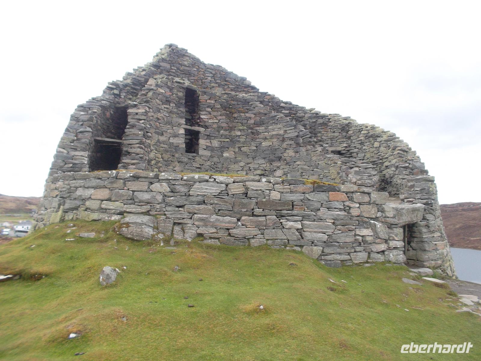 Die folgende Besichtigung galt einem „Broch" - einem kegelstumpfförmigem Rundturm, der einst als Adelssitz und Fluchtburg gedient hatte. Der Aufbau auch des von uns besichtigten Dun Carloway-Broch war doppelwandig, um den Hohlraum zwischen den Mauern für Gänge und Aufbewahrungsräume zu nutzen.