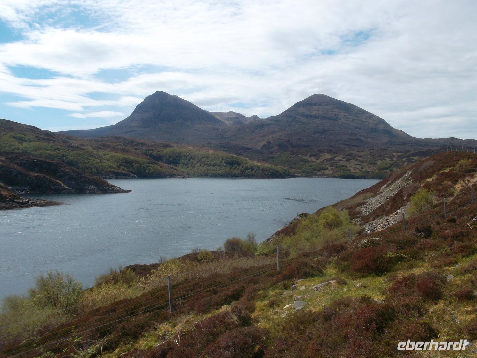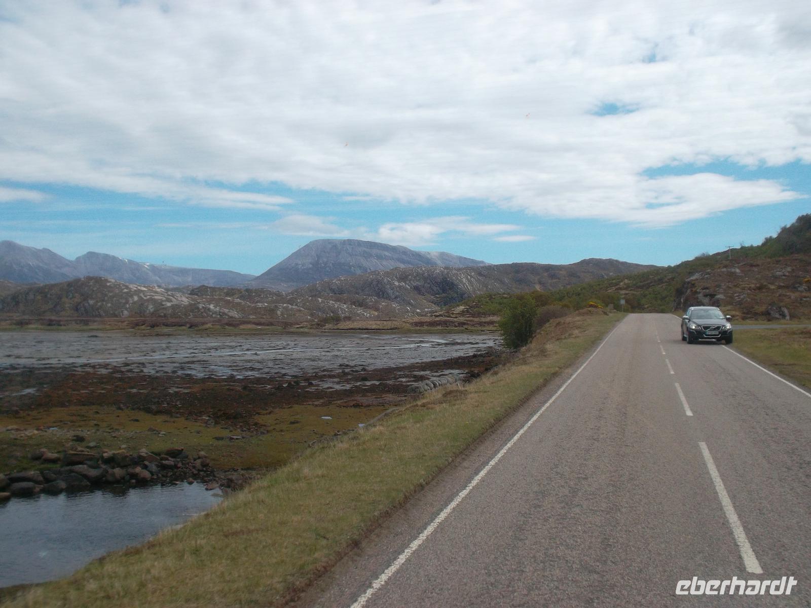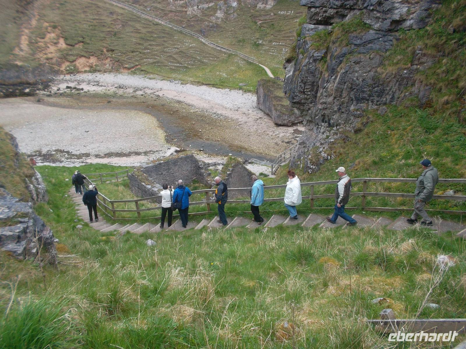 Heute gab es das Frühstück ausnahmsweise mal nicht im Hotel sondern an Bord der Fähre, die sehr früh zum „Festland" ablegte. Pünktlich erreichten wir dieses in Ullapool bei wieder herrlichem Wetter. Unser Weg heute führte durch die nordwestlichen und nördlichen Highlands bis ganz hinauf zum nördlichsten Punkt der britischen Hauptinsel, den ganzen Tag durch Schönheiten der Natur. Die Ruine des Ardvreck Castle und das U-Boot-Denkmal an der Brücke von Kylescu veranlassten uns natürlich zu Fotostopps, bevor wir mittags die Kirchenruine und den Strand von Balnakeil erreichten. Das Kirchlein war früher ein Zentrum der Christianisierung. Auf dem hiesigen Parkplatz gab es heute den Bordservice zu Mittag und dann ging es zu der inzwischen sehr gut ausgebauten Smoo -Cave weiter. Das Höhlensystem hatte der griechische Geschichtsschreiber Herodot einst als „Eingang zur Unterwelt" apostrophiert. Die Höhle mit mehreren Kammern birgt, von schroffen Uferfelsen umgeben, als ihr Geheimnis einen Wasserfall, der durch das Höhlendach in der Kammer heruntertost und seinen Weg zum Meer findet. Auf der weiteren Strecke mit grandiosen Ausblicken aufs Meer und fjordähnlichen Buchten erreichten wir schließlich nach mehreren Fotostopps wir das Städtchen Thurso, die größte Stadt im Norden Schottlands und checkten ins gemütliche St Clair-Hotel ein.