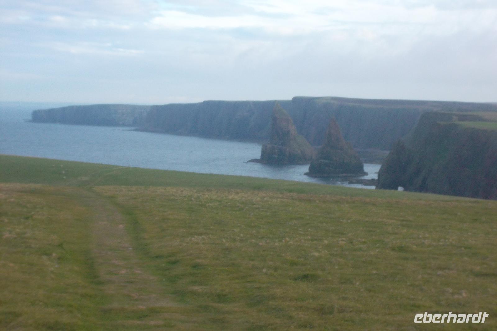 Als Tagesabschluß folgte ein Aufenthalt in Kirkwall und die Besichtigung der St.Magnus-Kathedrale, der zweitgrößten Kathedrale Schottlands. Nach etwas Freizeit in Kirkwall brachte uns John mit dem Orkney-Bus zurück nach Burwick und die Abendfähre schipperte uns aufs „Festland" nach John O'Groats. Zwar war es schon recht spät, aber dennoch machten wir noch einen Abstecher zum Leuchtturm von Duncansby Head. Neben dem von der Familie Stephenson erbauten Leuchtturm gibt es hier auch noch die Möwenfelsen sowie die seltsame Felsenformation der „Stacks of Duncansby", die aussehen wie zu Stein erstarrte Segel. Zum späten Abendessen kehrten wir ins Hotel zurück.