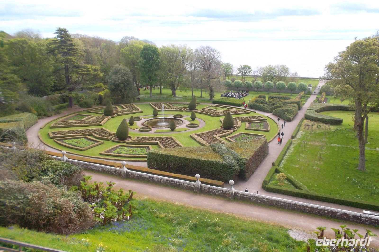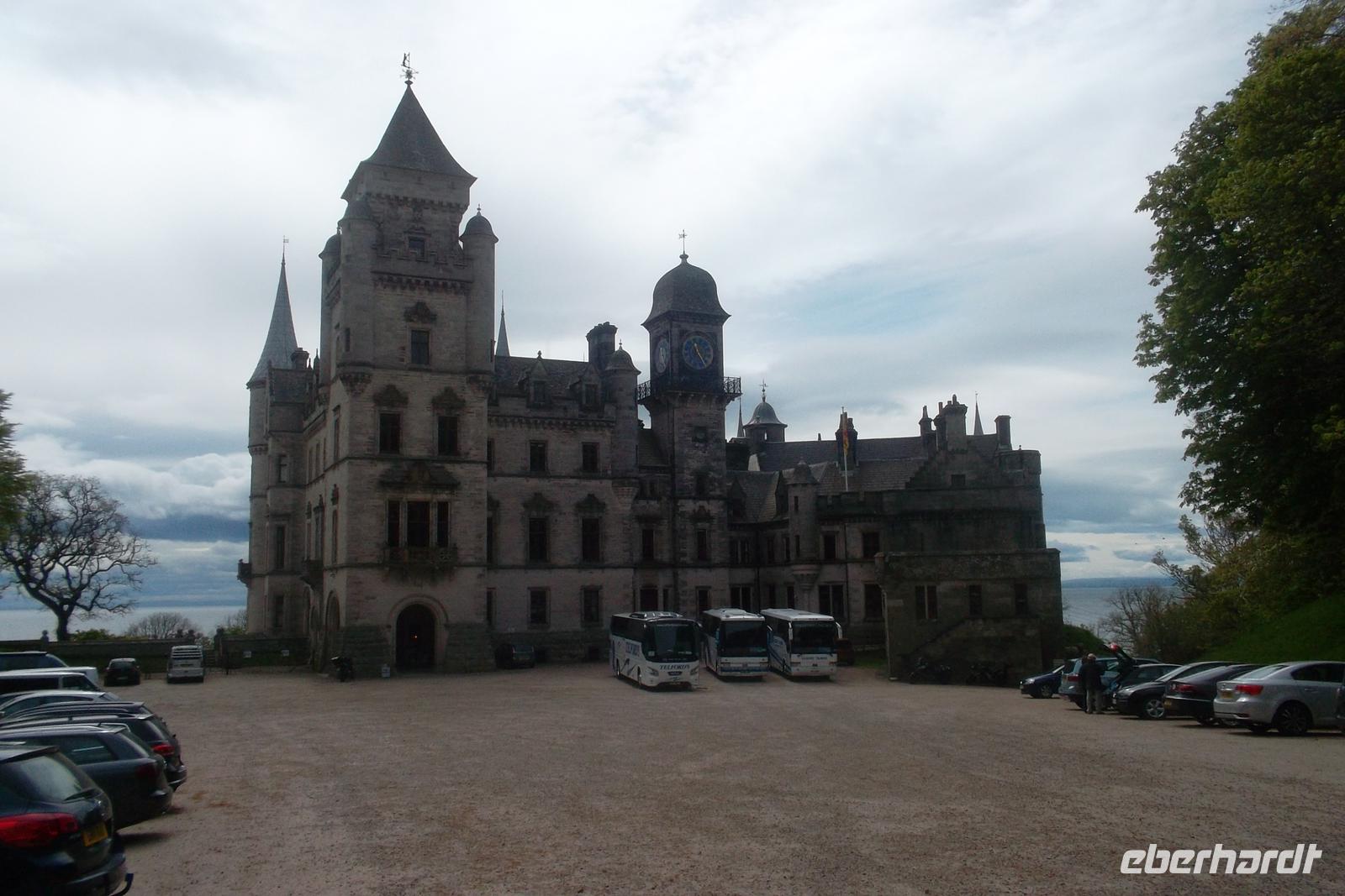 Ein Spaziergang zu den Robbenfelsen bei Old Wick Castle war zwar ein Extra, aber starker Wind und nasskaltes Wetter trübten das Vergnügen etwas. Anschließend führte uns die „Ostküstenmagistrale" gen Süden. Als besonders schöne Besichtigung war die der herrlichen Schloß- und Parkanlage von Dunrobin Castle geplant. Der auf einer Anhöhe am Meer liegende, von einer überaus gepflegten Gartenanlage umgebene Sitz der Familie des Herzogs von Sutherland gehört zu den prunkvollsten Schlössern des 19. Jahrhunderts und mit 189 Räumen zu den größten des Landes. Da wir rechtzeitig ankamen, konnten interessierte Gäste die im Garten stattfindenden Raubvogelschau sehen und sich dann der Besichtigung des Schlosses zuwenden, die mit ihrem authentischen Interieur stets ein Erlebnis ist.