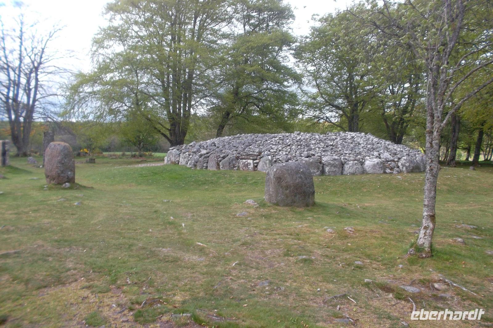 Den Nachmittag hatten wir zur Verfügung für „Richtig Reisen!"-Extras, denn bis zum Übernachtungsort Inverness war es nicht mehr weit. Ein „Geheimtipp" sind die Cairns of Clava, jungsteinzeitliche Kammergräber, von Steinkreisen und gut erhaltenen Steinaufschüttungen umgeben. Wir besuchten diese prähistorischen Zeugnisse und machten dann im neuen Besucherzentrum von Culloden Halt. Es liegt direkt am Schlachtfeld von Culloden, 1746 Schauplatz der verheerenden Niederlage der schottischen Highland-Clans gegen die englische Armee. Anschließend fuhrern wir noch zu einer Stippvisite an Schottlands bekanntesten See, zu den schwarzen Wassern des Loch Ness. Im kleinen Ort Drumnadrochit gibt es ein Besucherzentrum für Nessie, das Seeungeheuer. Zwar wurden unsere Hoffnungen, das Original-Monster wenigstens mal kurz zu sehen enttäuscht, aber ein wirkliches Nessie-Foto im Örtchen Drumnadrochit ist möglich, denn die metallene Nachbildung eines Sauriers steht hier als Modell. Denn als Saurier stellen die meisten Menschen sich das Ungeheuer von Loch Ness vor. Später erreichten wir Inverness und checkten ins Hotel am Ufer des Flusses Ness ein.