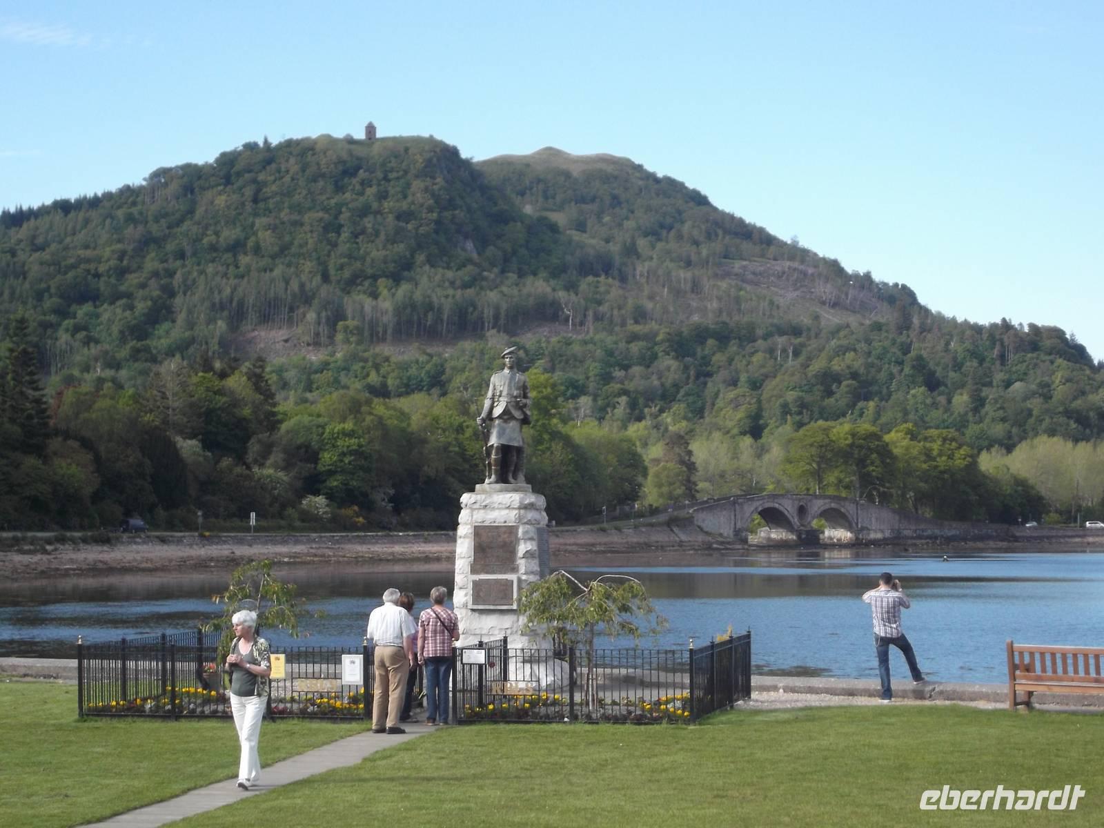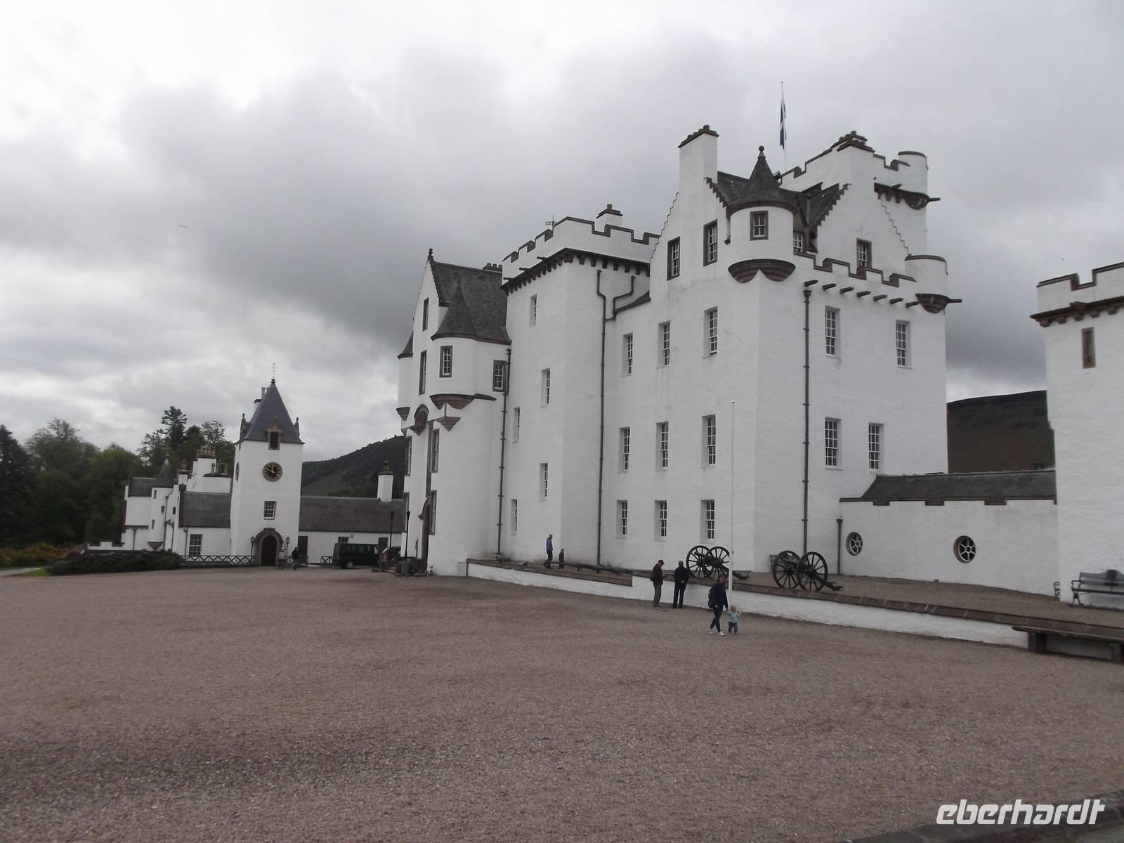 Auch heute fuhren wir wieder fast den gesamten Tag auf der A 9 gen Süden. Das erste Ziel des heutigen Tages war ein besonders schmucker historischer Adelssitz. Gleichsam als Kontrapunkt zum prachtvollen Wohnschloss des Vortages im französischen Stil ist das Blair Castle eine historisch gewachsene, immer wieder erweiterte Burganlage. Es ist Sitz des Herzogs von Atholl, der nicht riesige Ländereien in derr Umgebung besitzt, sondern auch der einzige Mensch in Schottland mit dem Privileg ist, eine Privat-Armee zu unterhalten. Die „Blair Atholl Highlanders" tragen stolz die Schottenkaros von Atholl und sind unter anderem für ihre Dudelsackpfeifer bekannt. Zu jeder vollen Stunde tritt einer von ihnen tagsüber in der Öffnungszeit des Museums vor die Fassade der Burg und spielt für die Besucher bekannte schottische Melodien. Auch Blair Castle ist, wie zuvor Dunrobin Castle und Eilean Donan Castle, überaus malerisch und hebt sich mit seiner weißgetünchten Fassade vom satten Grün der umliegenden Wiesen und Wälder und den bunten Farben des prachtvollen Schlossgartens ab. Bei der Besichtigung sahen wir vieles von der kompletten Einrichtung der Prunkgemächer, die eindrucksvoll das Leben der Adeligen in Schottland widerspiegeln, sowie den weithin bekannten Ballsaal.