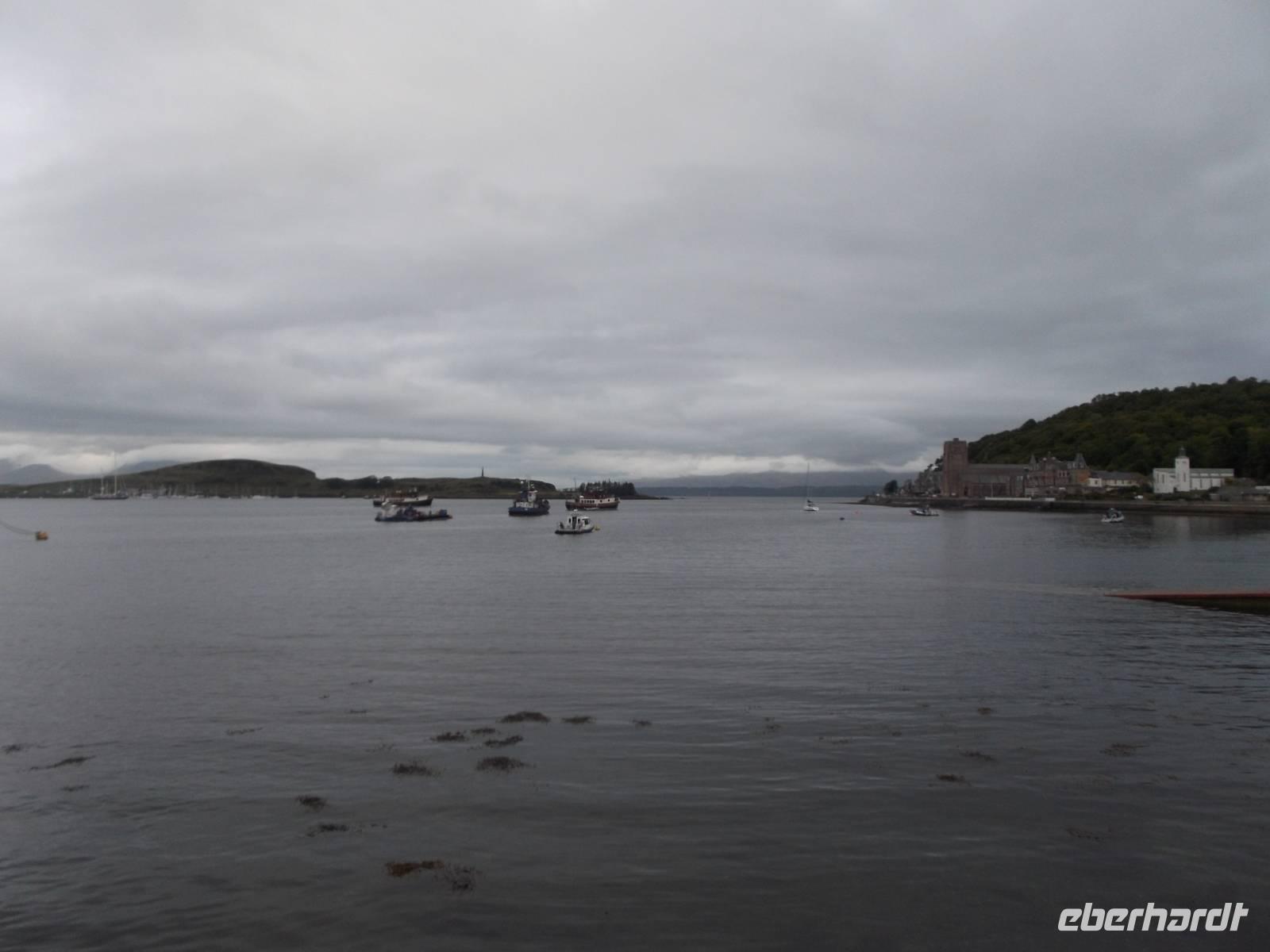 Am Nachmittag fuhren wir an Schottlands größter Stadt Glasgow vorbei über die beeindruckende Erskine Bridge in Richtung Highlands. Einen Stopp gab es dann erst einmal am Loch Lomond, wobei wir uns natürlich das berühmte zugehörige Lied anhörten. Der größte See Schottlands ist als Ferienparadies beliebt und auch der deutsche Dichter Theodor Fontane, der ein guter Schottland-Kenner war und ein Buch über dieses Land verfasste, liebte diesen See, der er immer als „große noble Wasserfläche" bezeichnete, der es verdient hätte, „der König der Seen zu heißen". Nach unserer Pause an seinem Ufer im hübschen Ferienort Luss fuhren wir in die oberhalb des Loch Lomond beginnenden schottischen Highlands ein. Als letzten Höhepunkt des Tages legten wir noch einen ausgedehnten Fotostopp im südlichen Highland-Örtchen Inveraray am Ufer des Loch Fyne, einer langgezogenen Meeresbucht. In der Tat eine der kleinsten Städte Europas ist Inveraray, dessen weißgetünchten Häuser über der Meeresfront leuchten und seinem bekannten Gefängnismuseum mitten in der Stadt und dem außerhalb gelegenen Schloss ein echtes Kleinod. Von Inveraray aus erreichten wir dann unser Tagesziel Oban, das „Tor zu den westlichen Inseln". Unser Hotel lag schön in der Innenstadt und direkt am Wasser.