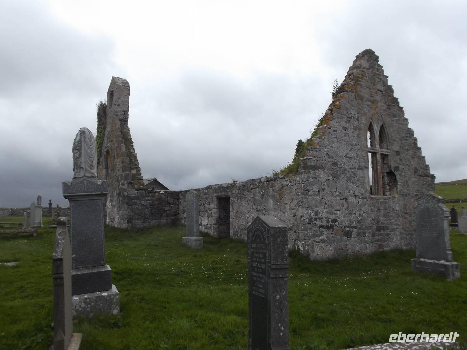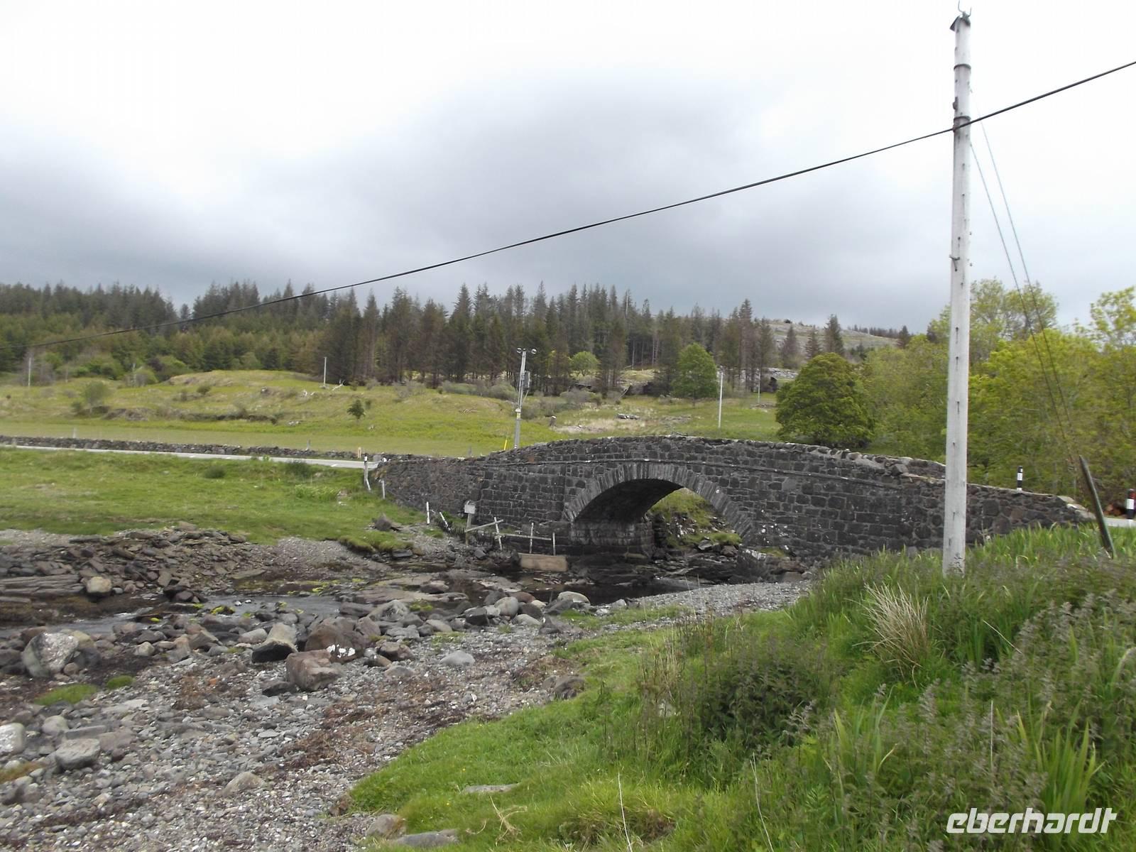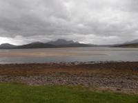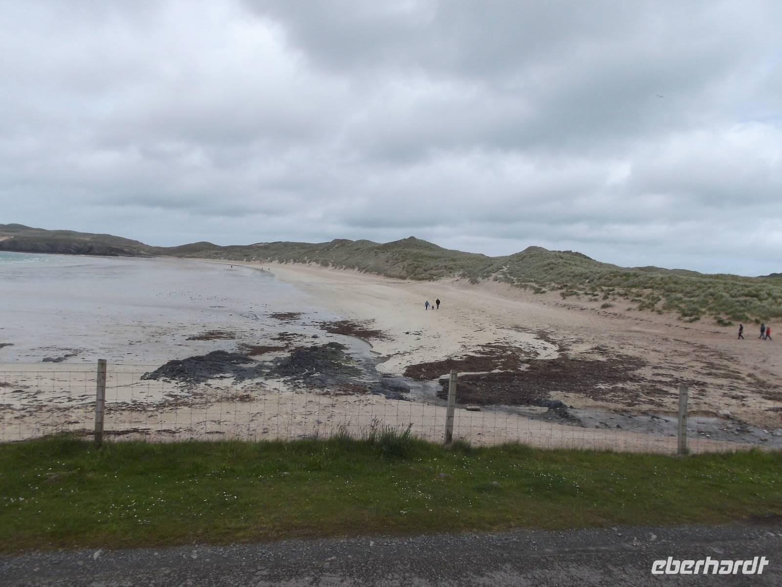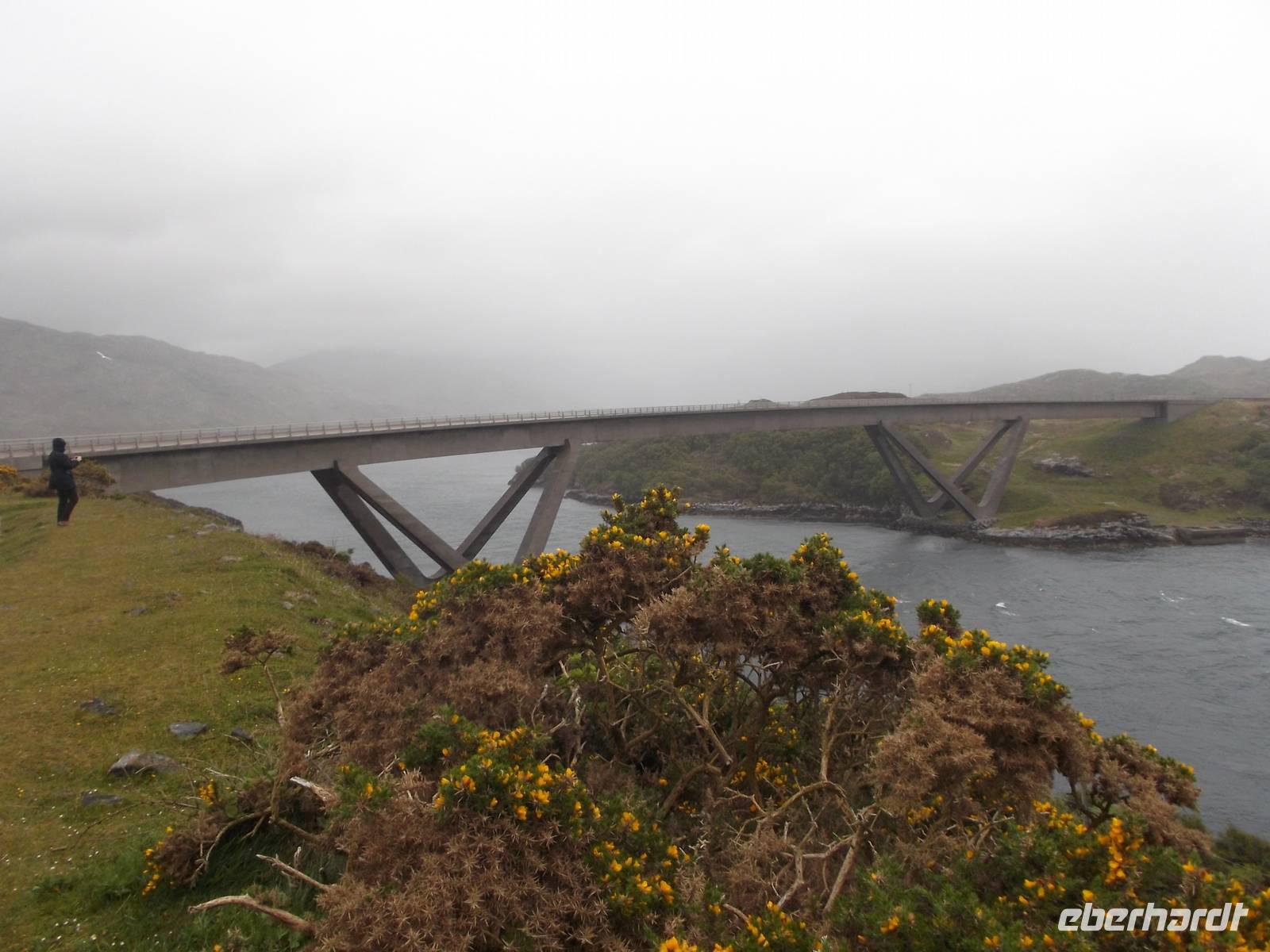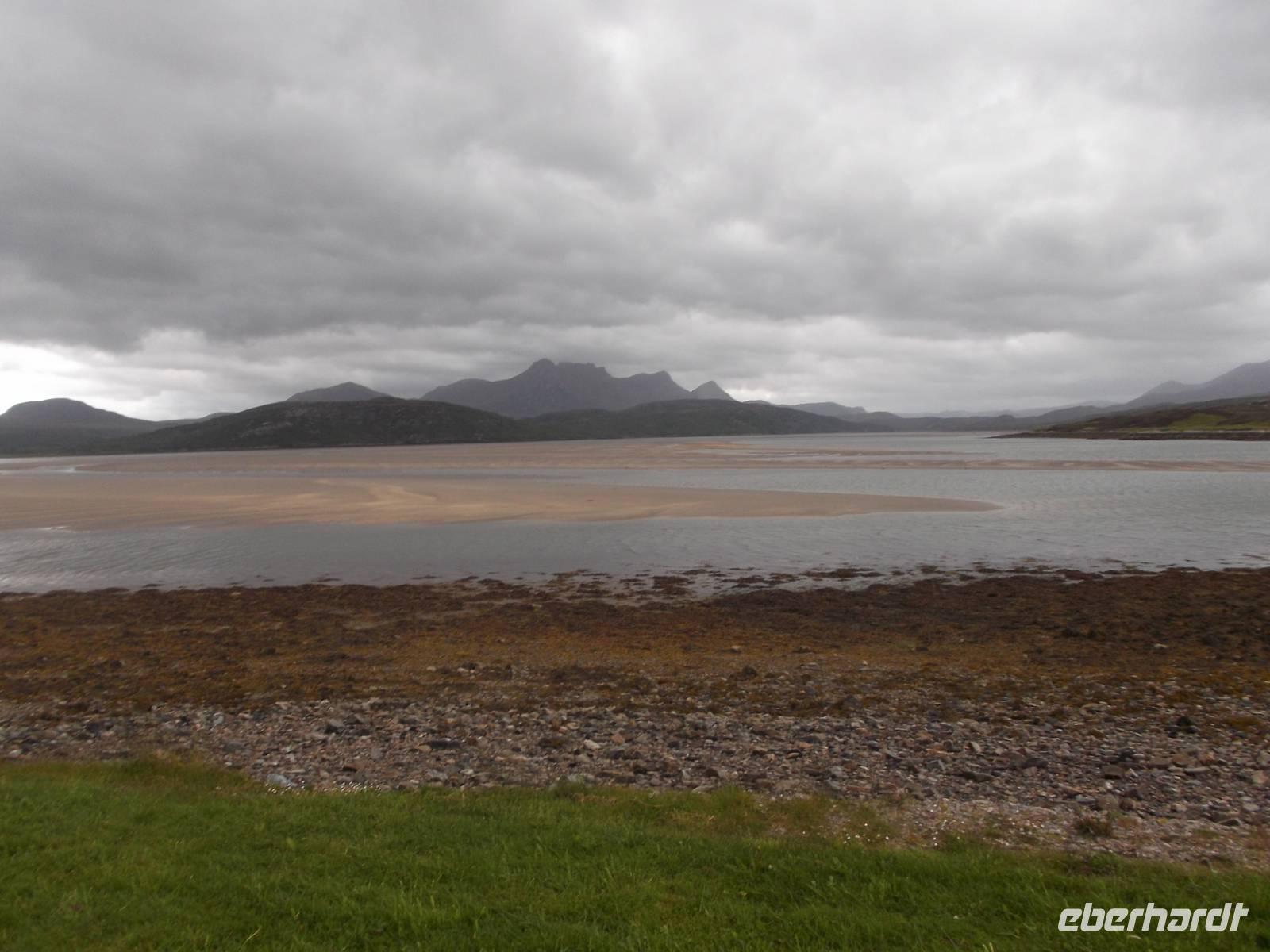 Die weitere Strecke führte uns durch die nördlichen Highlands und war - wie jedes Jahr - mit zahlreichen Fotostopps als Höhepunkten versehen. Zunächst fuhren wir durch die Landschaft des Assynt und stoppten am gleichnamigen See an der Ruine des Ardvreck Castle, einst ein befestigter Wohnturm als Sitz eines Clanoberhauptes. Dann hielten wir an der Brücke von Kylescu an einer fjordähnllichen Meeresbucht, wo sich im zweiten Weltkrieg eine Ausbildungsstätte für britische Spezialeinheiten befand. Nach Stopps in mehreren kleinen Orten hielten wir nahe dem Strand von Balnakeil. Hier empfiehlt sich der Besuch der geschichtsträchtigen Kirchenruine. Das Kirchlein mit seiner langsam verwitternden interessanten Grabstätte liegt am beinahe nordwestlichsten Punkt der britischen Hauptinsel und war einst ein früher Schauplatz der Christianisierung Schottlands. Noch heute behauptet man, die Pfarrstelle unterstehe direkt dem Papst selbst. Auf dem die recht malerische Ruine umgebenden Friedhof liegt auch das Grab von Rob Donn, der als der letzte der keltischen Barden gilt und Ende des 17. Jahrhundert hier beerdigt wurde.
