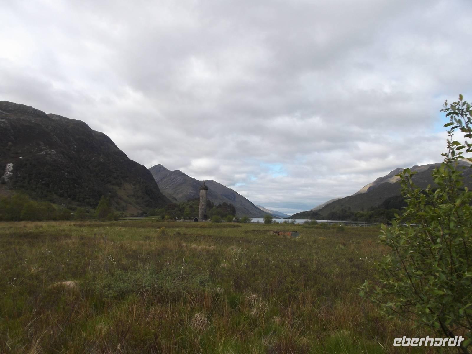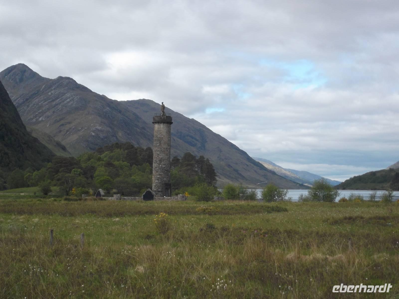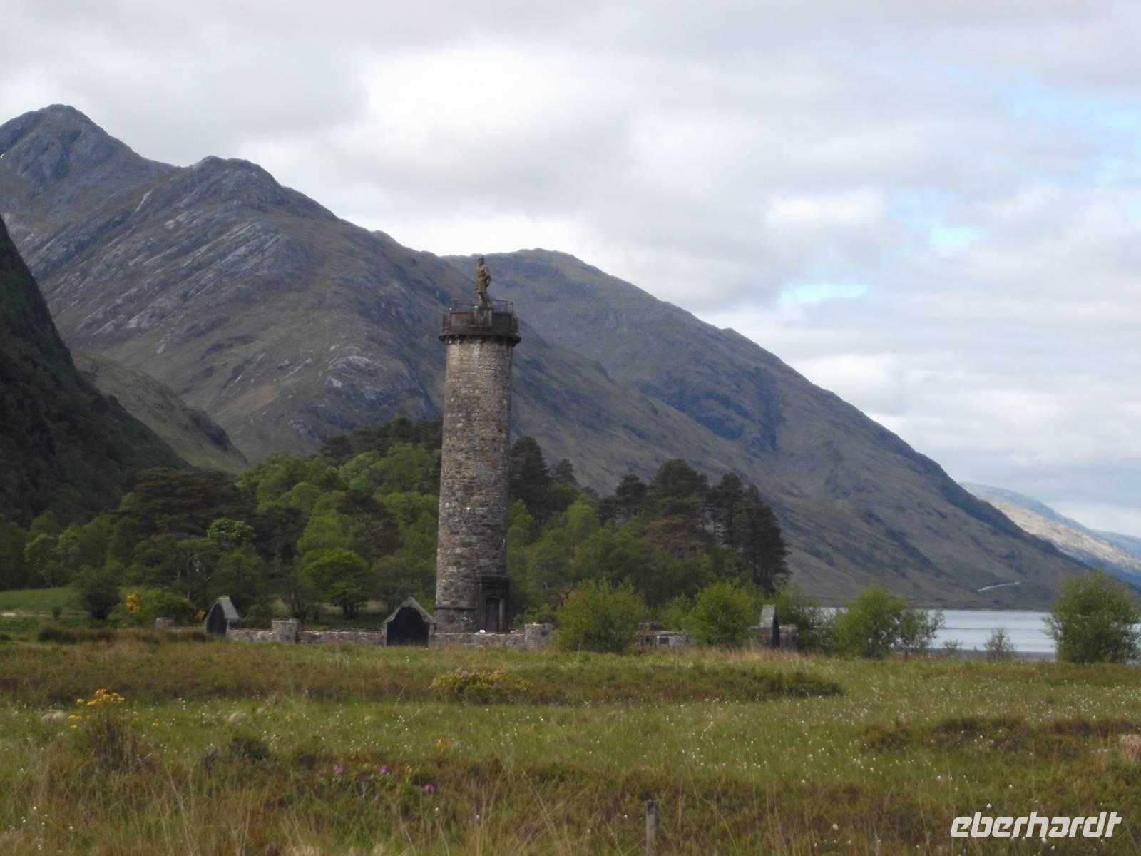 Eine der schönsten schottischen Küstenstraßen ist die „Road oft he Isles" genannte Tour von Fort William zum Fischerörtchen Mallaig. Die Straße führt zunächst zum Glenfinnan Monument, wo wir beim Fotostopp am Denkmal einiges über den letzten großen Aufstand der Jakobiten erfuhren. 1745 erhoben sich ihrem alten König treue Highlander, als der aus dem Exil nach Schottland gekommene Thronanwärter „Bonnie Prince Charlie" zu den Waffen gegen die englische Herrschaft über Schottland rief. In Glenfinnan begann die Erhebung und viele Clanchefs schworen dem Sohn des exilierten Königs Jakob Treue. Sie marschierten als Rebellenheer gegen England, aber nach einigen anfänglichen Erfolgen ging die jakobitische Armee der Highlander in der Schlacht bei Culloden nahe Inverness 1746 zugrunde.