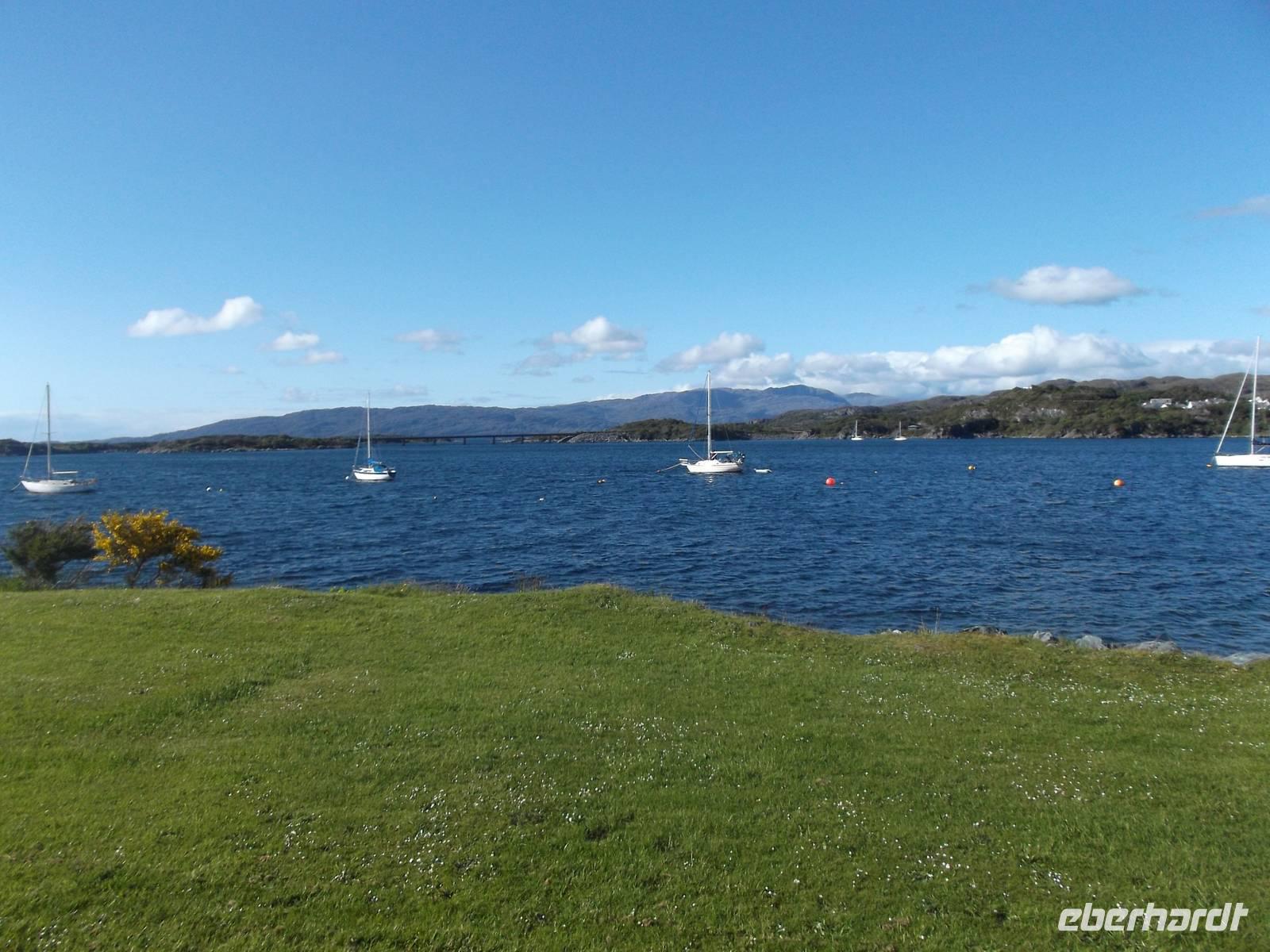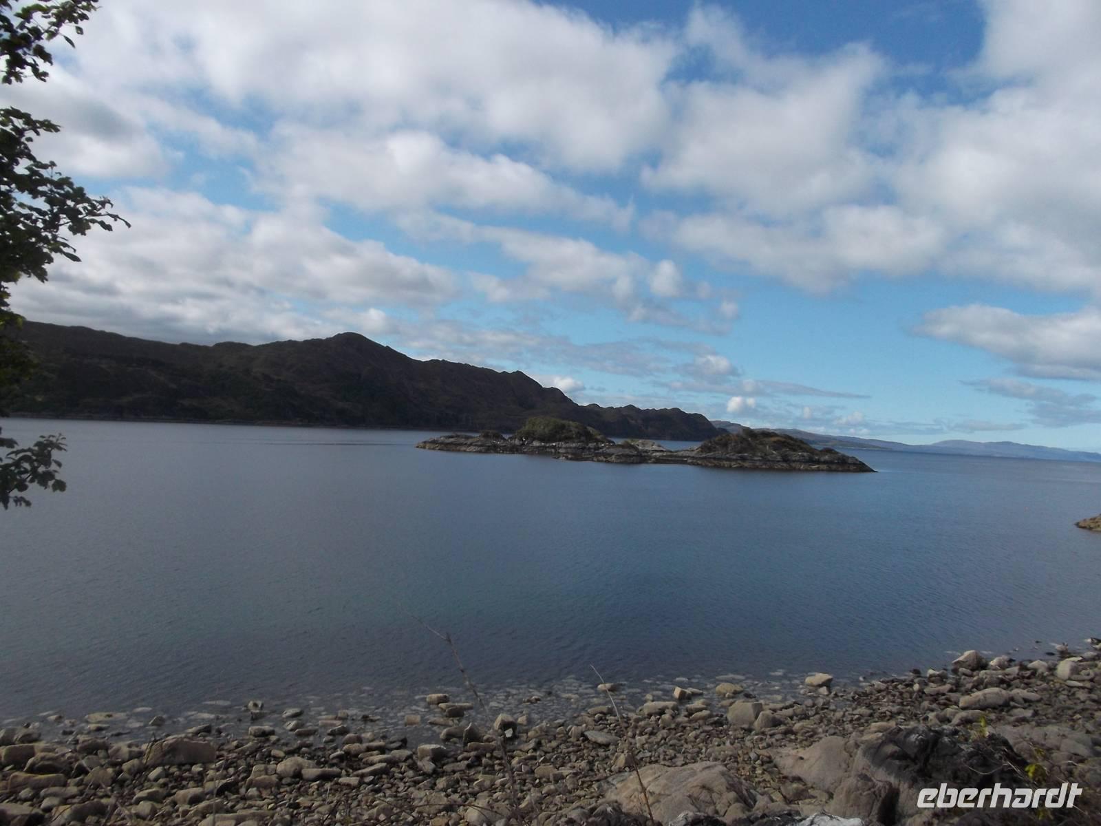 Auf dem weiteren Weg folgte ein Fotostopp mit schönem Ausblick auf das Meer am sogenannten „Princess Cairn". Auf einer der zahlreichen Inseln in der fjordähnlichen Meeresbucht soll sich Bonnie Prince Charlie nach der Niederlage von Culloden auf der Flucht vor den englischen Truppen versteckt haben. .