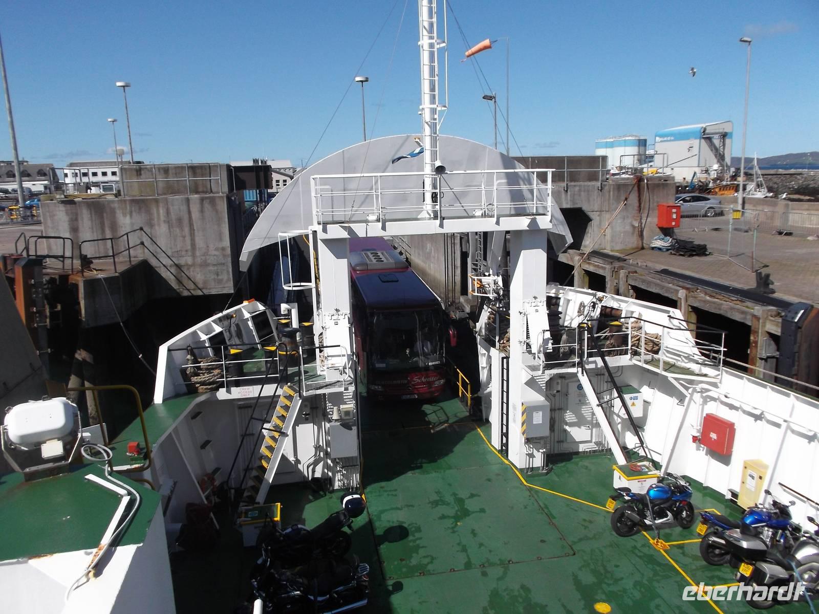 Da wir sehr früh heute zur Fährabfahrt einchecken mußten, bekamen wir unser Frühstück diesmal nicht im Hotel sondern auf der Fähre. Das „Festland" in Ullapool erreichten wir pünktlich.