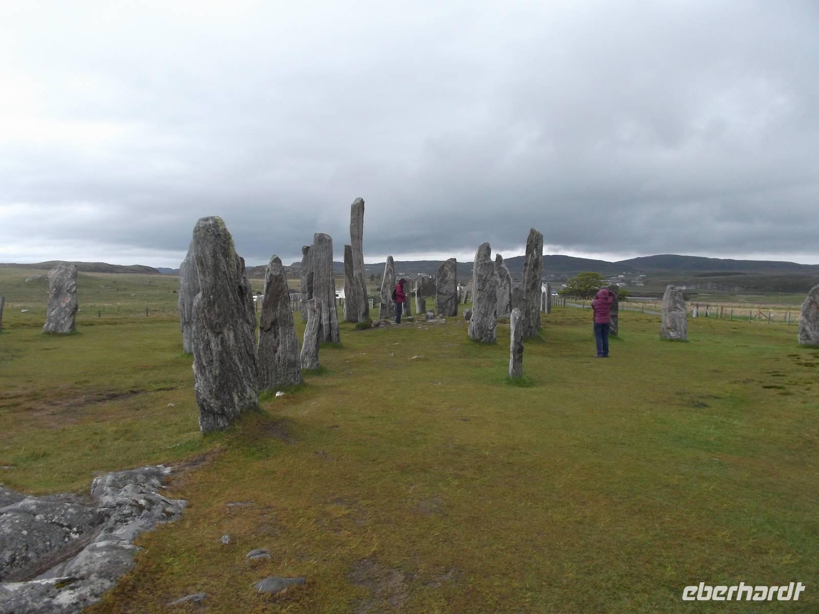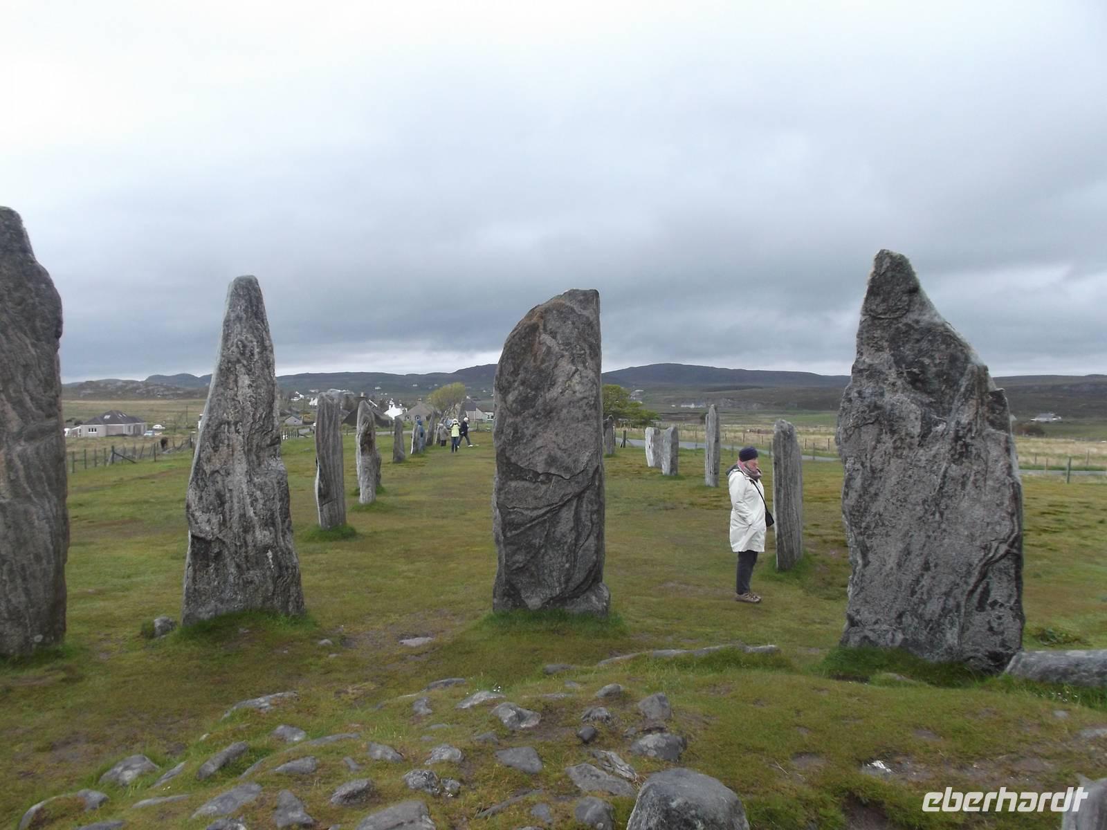 Ein besonderer Höhepunkt unserer Lewis-Rundfahrt war aber die Besichtigung der Standing Stones of Callanish, eines Steinkreises der Großstein-Kultur. Diese Megalith-Anlage ist weit weniger bekannt als das südenglische Stonehenge, stammt aber aus derselben Erbauungszeit und gibt ebensoviele Rätsel auf wie das südliche Monument. Der Steinkreis von Callanish wird von einer gewaltigen kreuzförmigen Steinsetzung geschnitten, die exakt nach den Himmelsrichtungen ausgerichtet ist. Nach Meinung der Wissenschaft diente das Monument sowohl als Begräbnisstätte und Kalender, aber auch zur Berechnung von Stern- und vor allem Mondbewegungen. Etwas Mystisches, eine Aura des Geheimnisvollem umgibt die gesamte Anlage. Jeder ihrer tonnenschweren Steine scheint eine Geschichte zu erzählen und für fast jeden Besucher ist der Aufenthalt hier ein ganz persönlicher Höhepunkt.