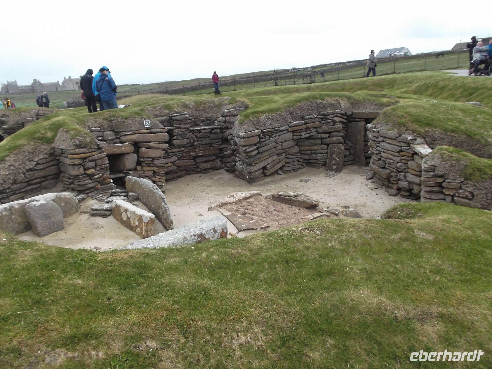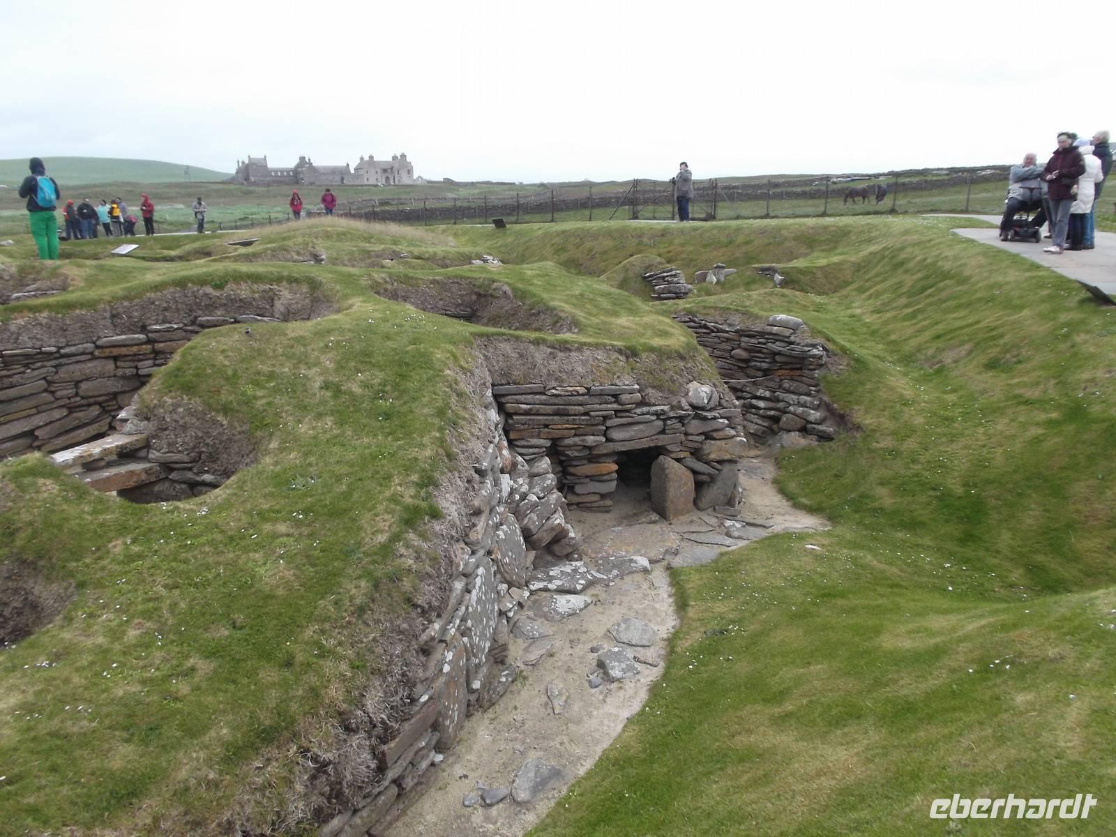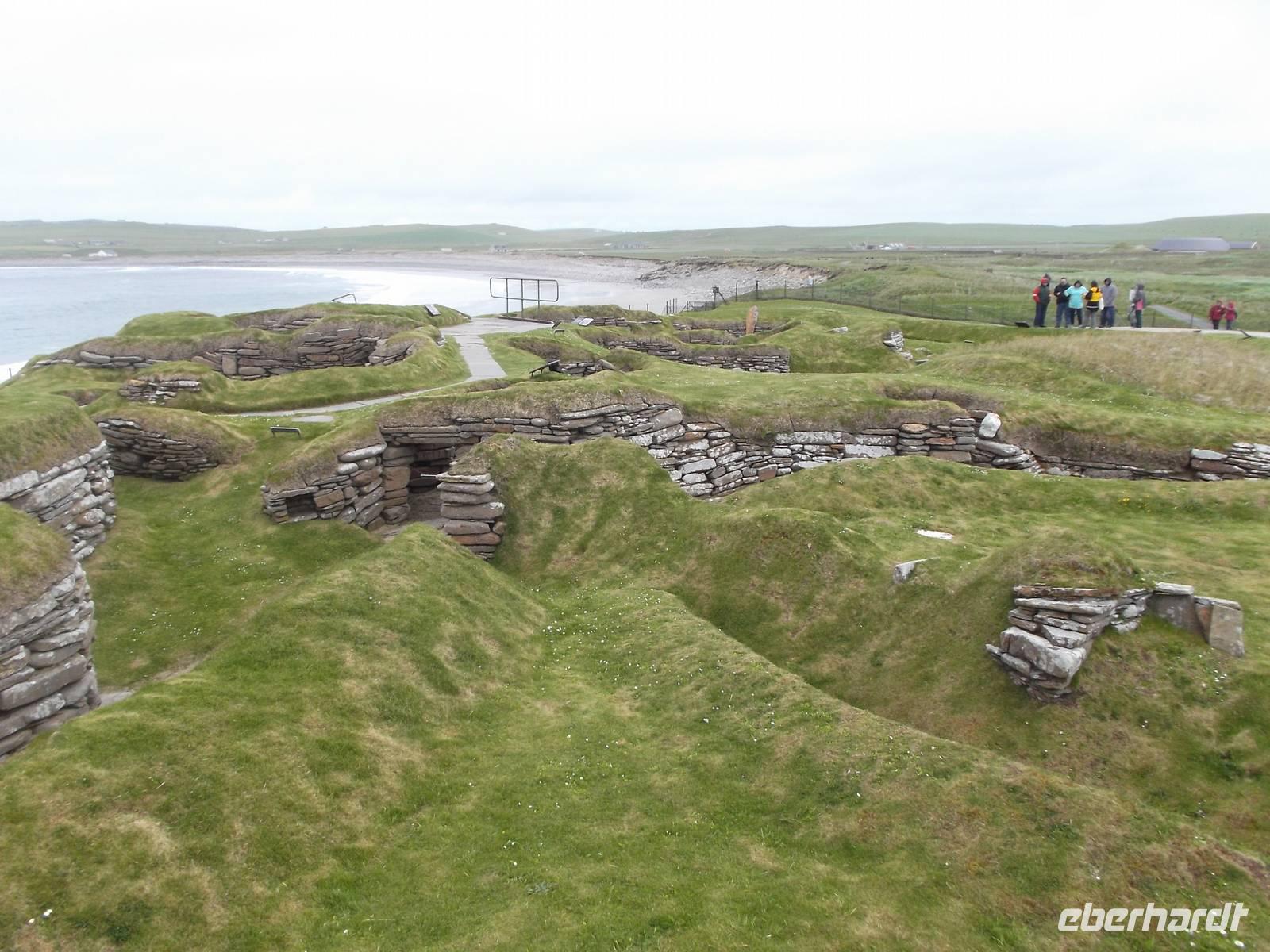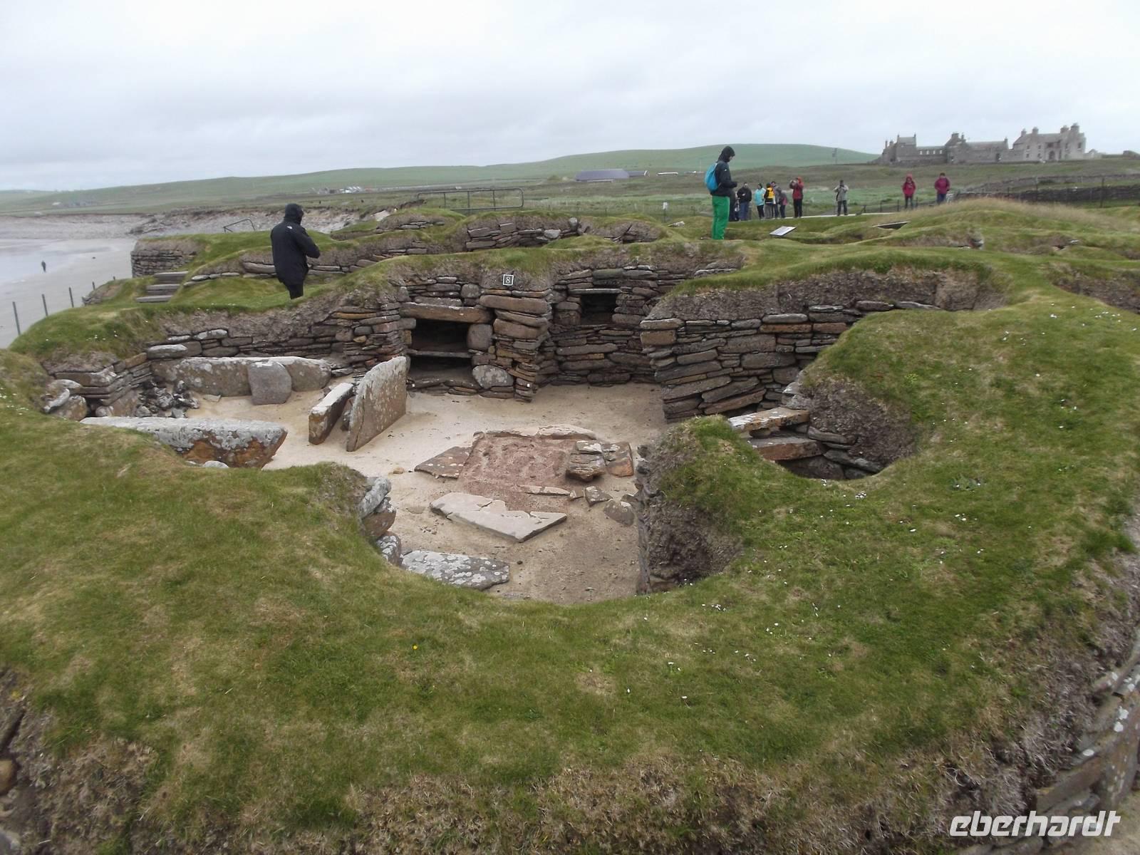 Der Besuch des bedeutendsten historischen Besiedelungszeugnisses auf den Orkneys folgte dann auf die Mittagspause. Wir sahen die ergrabenen und teilweise aufbereiteten und restaurierten Überreste des Steinzeitdorfes Scara Brae. Beeindruckende war die Lebenskultur seiner Bewohner, die 1000 Jahre VOR dem Bau der ägyptischen Pyramiden in dieser abgeschiedenen geografischen Lage hier siedelten. Auch der benachbarte Herrensitz „Scull House" konnte besichtigt werden.