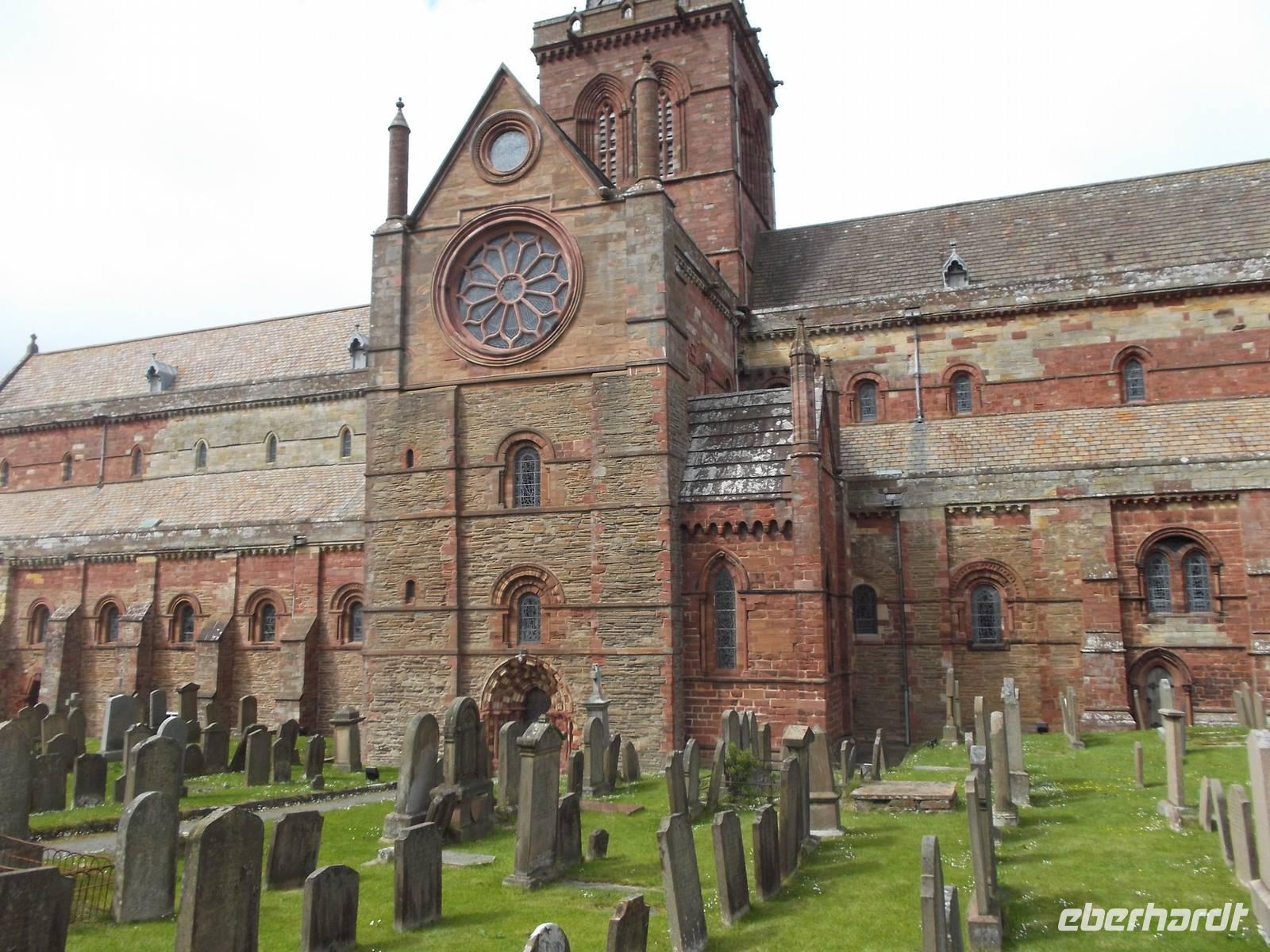 Anschließend fuhren wir zum megalithischen Steinkreis „Ring of Brodgar". Wiewohl nicht so spektakulär wie die schon besuchte Megalithanlage der Standing Stones of Callanish auf der Insel Lewis, beeindruckt der Steinkreis auf den Orkneys durch seine nen guten Erhaltungszustand und seine Ausmaße - mit etwa 104 Metern Durchmesser ist er größer als das südenglische StonehengeAuch an einem weiteren Großstein-Denkmal, den stehenden Steinen von Stenness, hielten wir noch, bevor wir der Inselhauptstadt Kirkwall einen Besuch abstatteten. Hier beeindruckt die St.Magnus-Kathedrale, das zweitgrößte Kirchengebäude Schottlands. Auch hier ist der Einfluß Norwegens und der Architektur beispielsweise des Nidarosdomes in Trondheim spürbar.