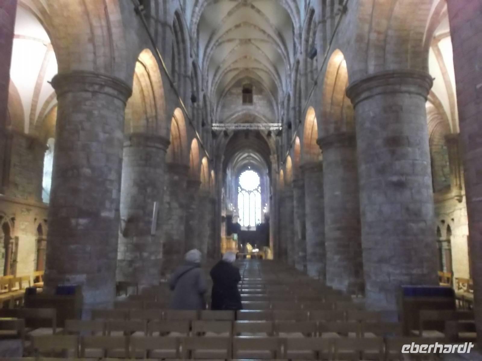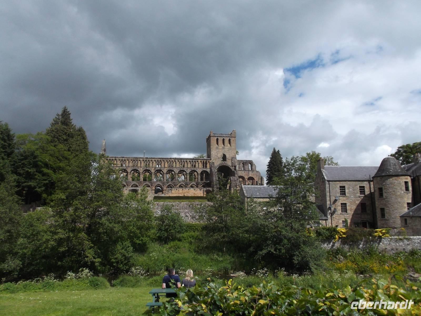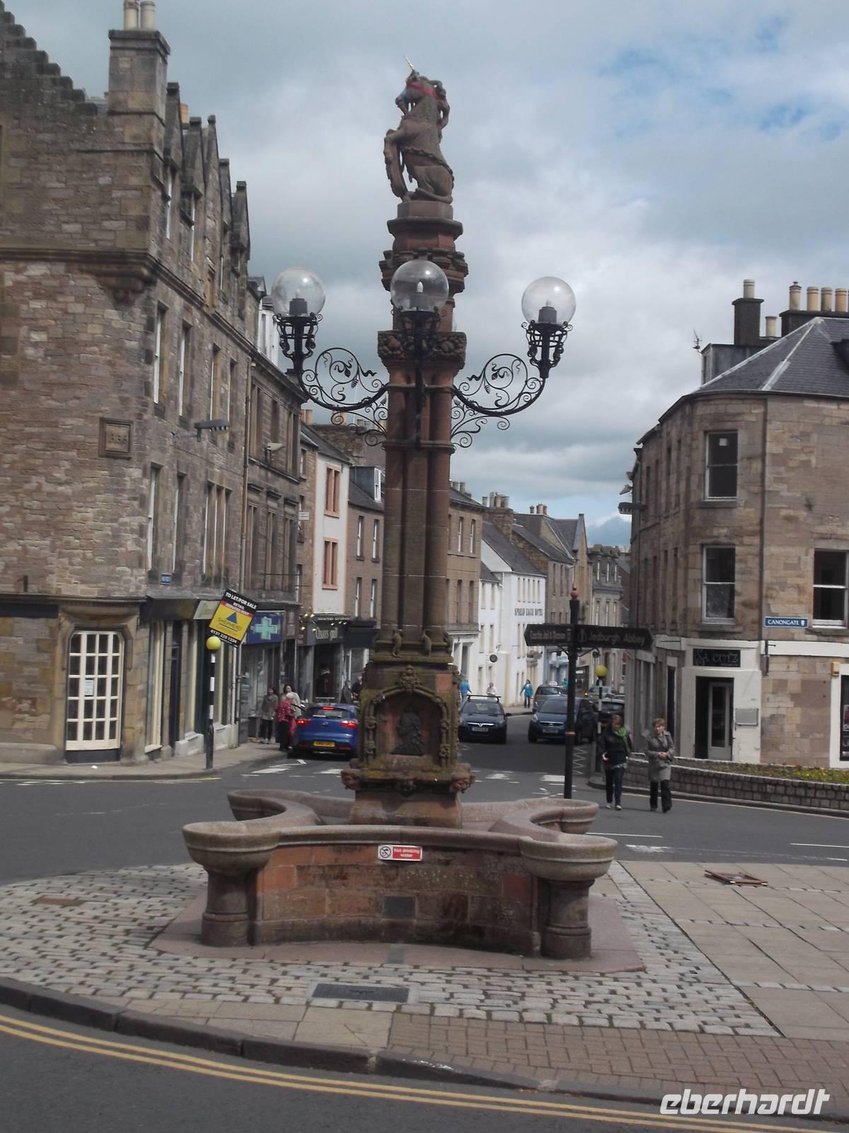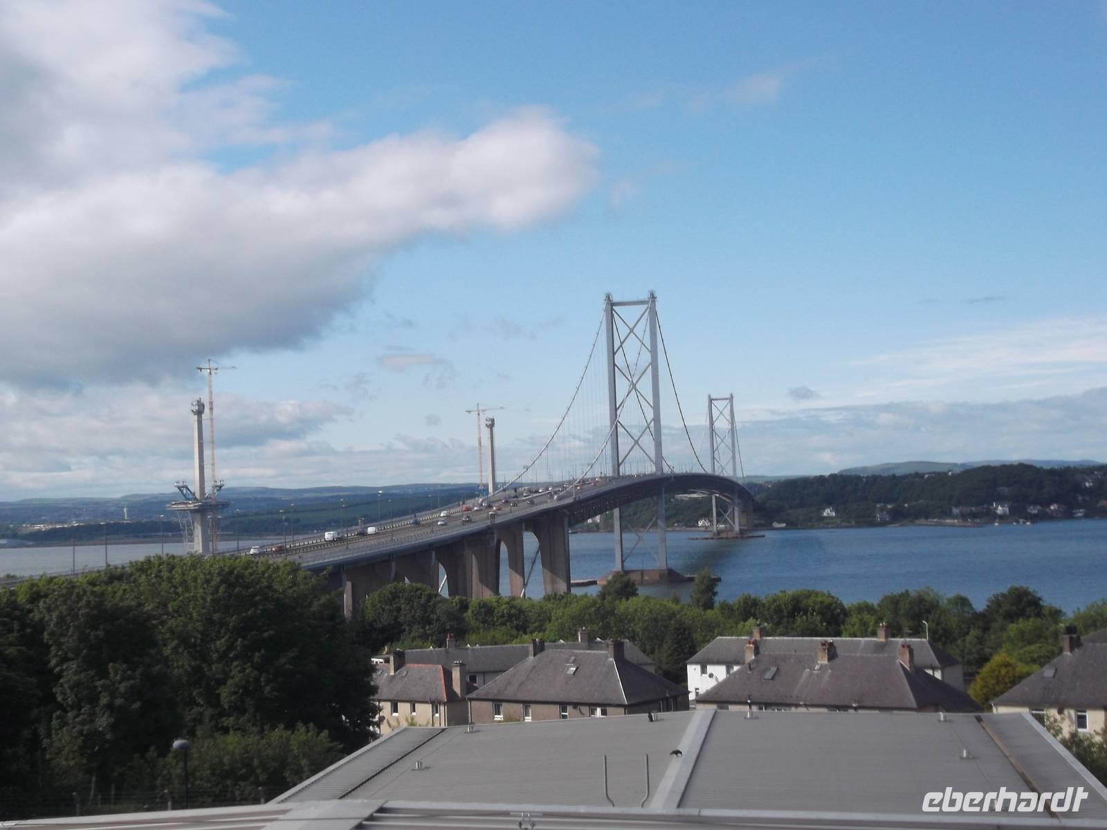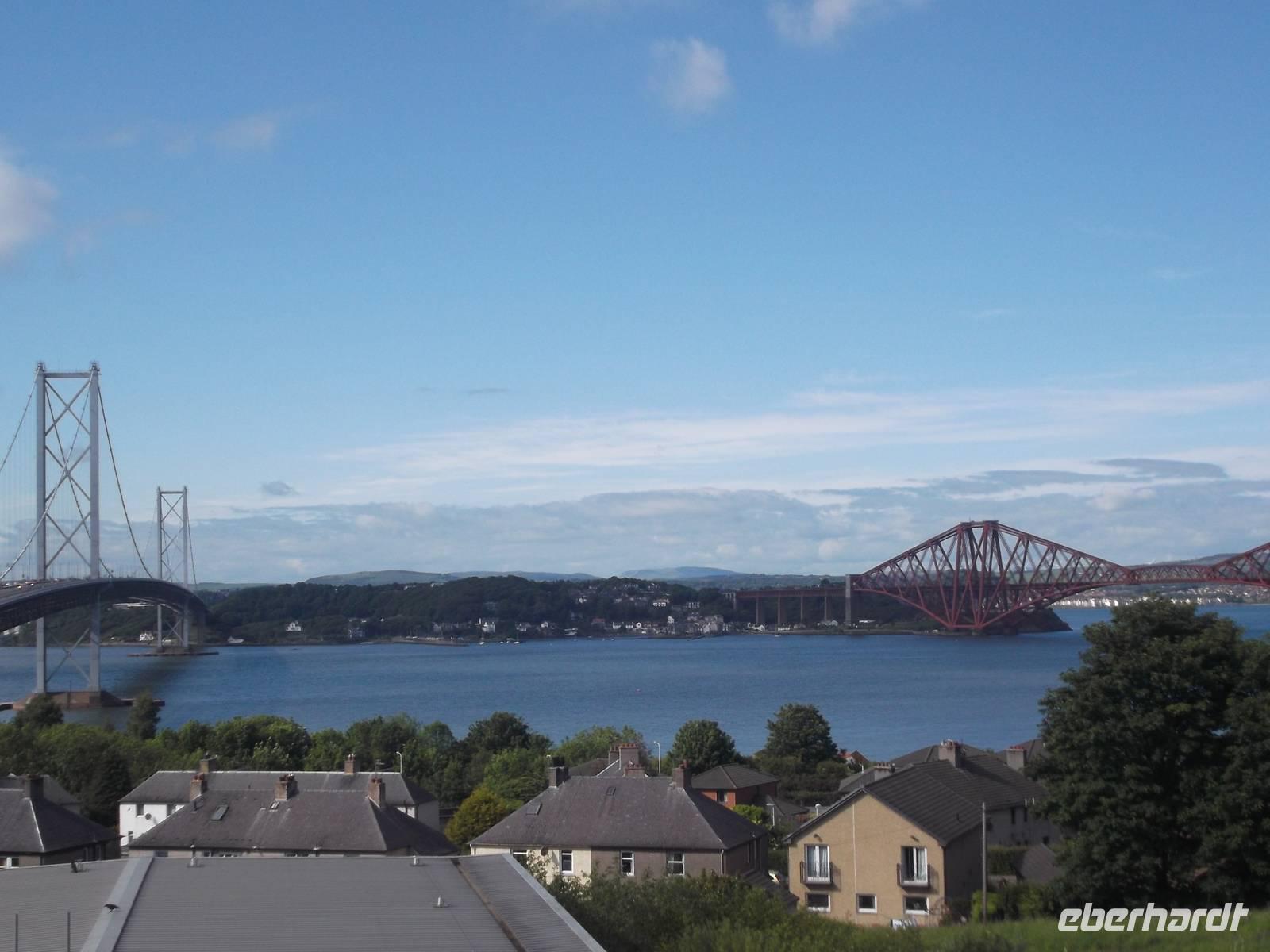 Ein kleines Extra war dann noch ein kurzer Umweg in das historische Städtchen Dunkeld. Es besitzt neben einer großartigen Kathedralenruine, einst von aus Iona vertriebenen Mönchen gegründet, einen winzigen Markt, umstanden von weißen Häusern, die alle unter Denkmalschutz stehen. Später fuhren wir dann weiter nach Süden, unterbrochen von einem Fotostopp am Ausschtspunkt über die Firth-of-Forth-Brücken. Von hier kann man sehr gut die seit 1964 längste Straßenbrücke Großbritanniens sehen und daneben die ingenieurtechnische Meisterleistung der eisernen Eisenbahnbrücke von 1890.