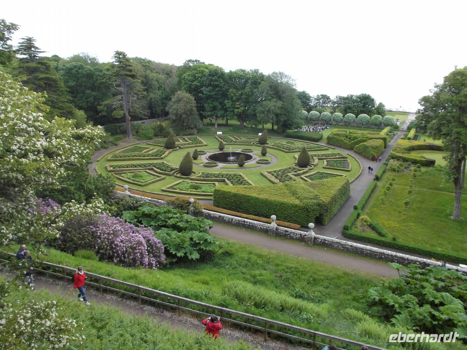 Immer auf der neben den neugebauten Autobahnen wichtigsten Durchgangsstraße Schottlands, der A 9 fuhren wir dem ersten Tageshöhepunkt entgegen. Dunrobin Castle, das größte Wohngebäude in den nördlichen Highlands, war einst eine kleine Festung und Sitz des Chefs vom Clan Sutherland. Später immer wieder umgebaut, erhielt es Mitte des 19. Jh. und nach Restaurierungen infolge Schäden im frühen 20. Jh. sein heutiges Aussehen, das ein wenig an die französischen Loireschlösser erinnert. Der Architekt, der auch den an Versailles erinnernden und bis heute überaus gepflegten Garten anlegte, war kein Geringerer als Charles Barry, der den Westminsterpalast - heute britischer Parlamentssitz - und auch den berühmten Glockenturm mit Big Ben in London gestalteteWir besichtigten Schloss und Garten und setzten dann unseren Weg nach Süden fort.