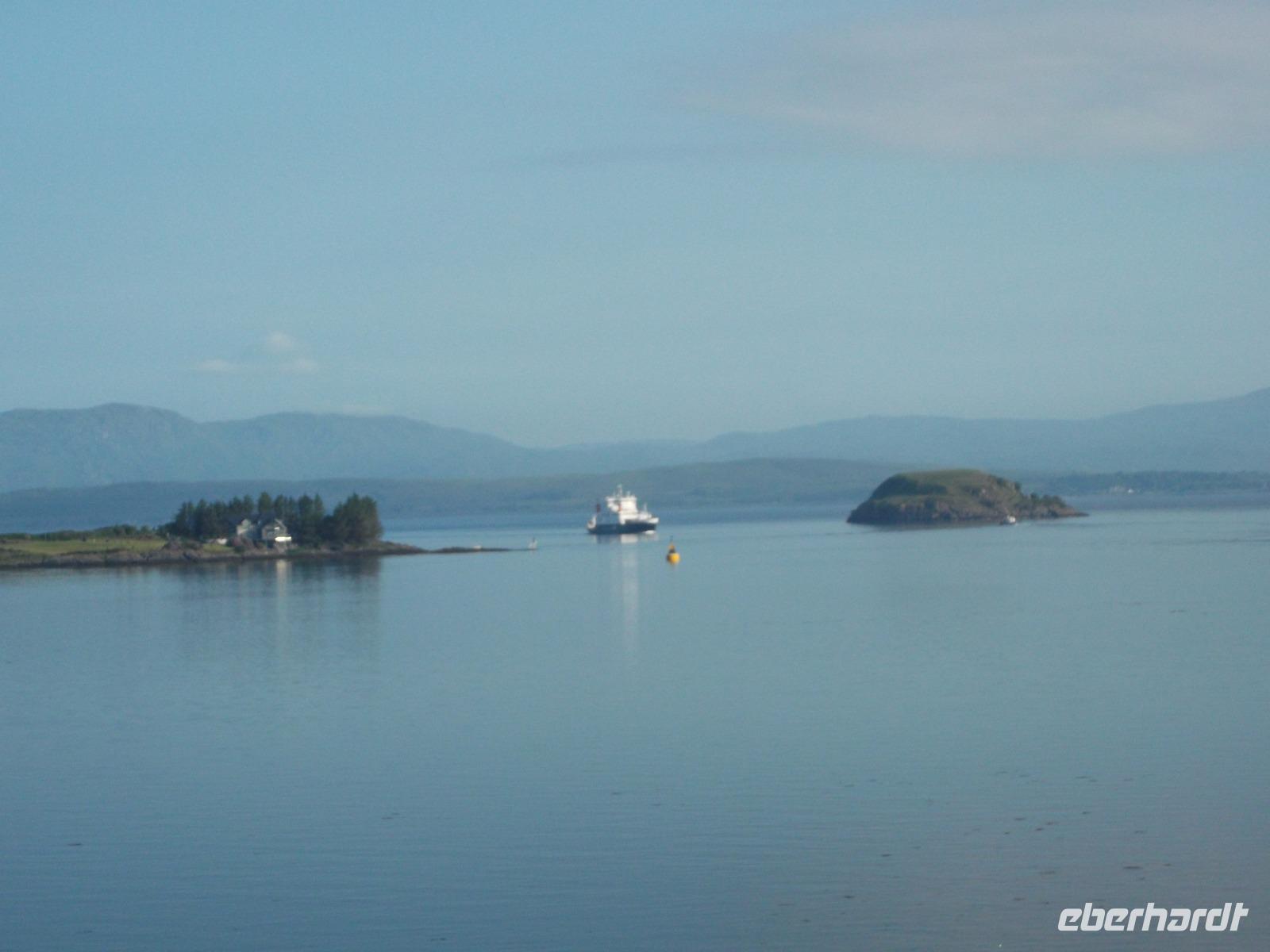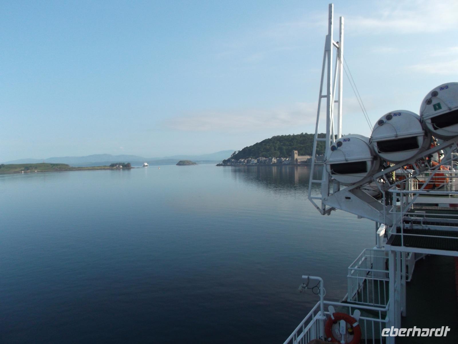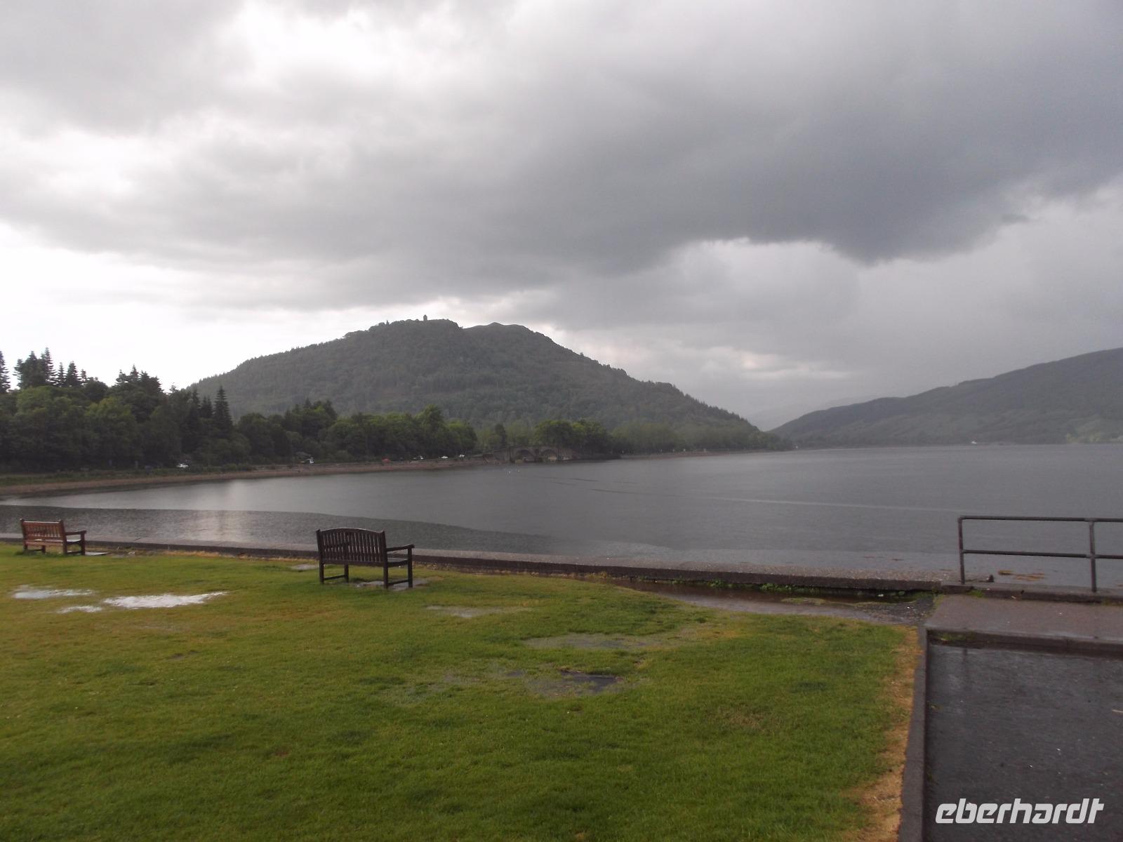 Bei der Weiterfahrt gehörten die Wälder, Täler und Berge bereits zur Landschaft der Highlands. An deren Land liegt eine der kleinsten Städte Europas, das malerische Inveraray am Ende der Meeresbucht Loch Fyne. Obwohl es mit seinen weißgetünchten Häusern, seiner Gesamtanlage und dem bekannten ehemaligen Gefängnis einen kurzen Bummel wert gewesen wäre, verhinderte starker Regen eine Besichtigung. Nach kurzem Aufenthalt hier setzten wir unseren Weg fort und gelangten in das Hafenstädtchen Oban, wo uns im Stadtzentrum ein gastliches Hotel zur Übernachtung und zu einem guten Abendessen erwartete.