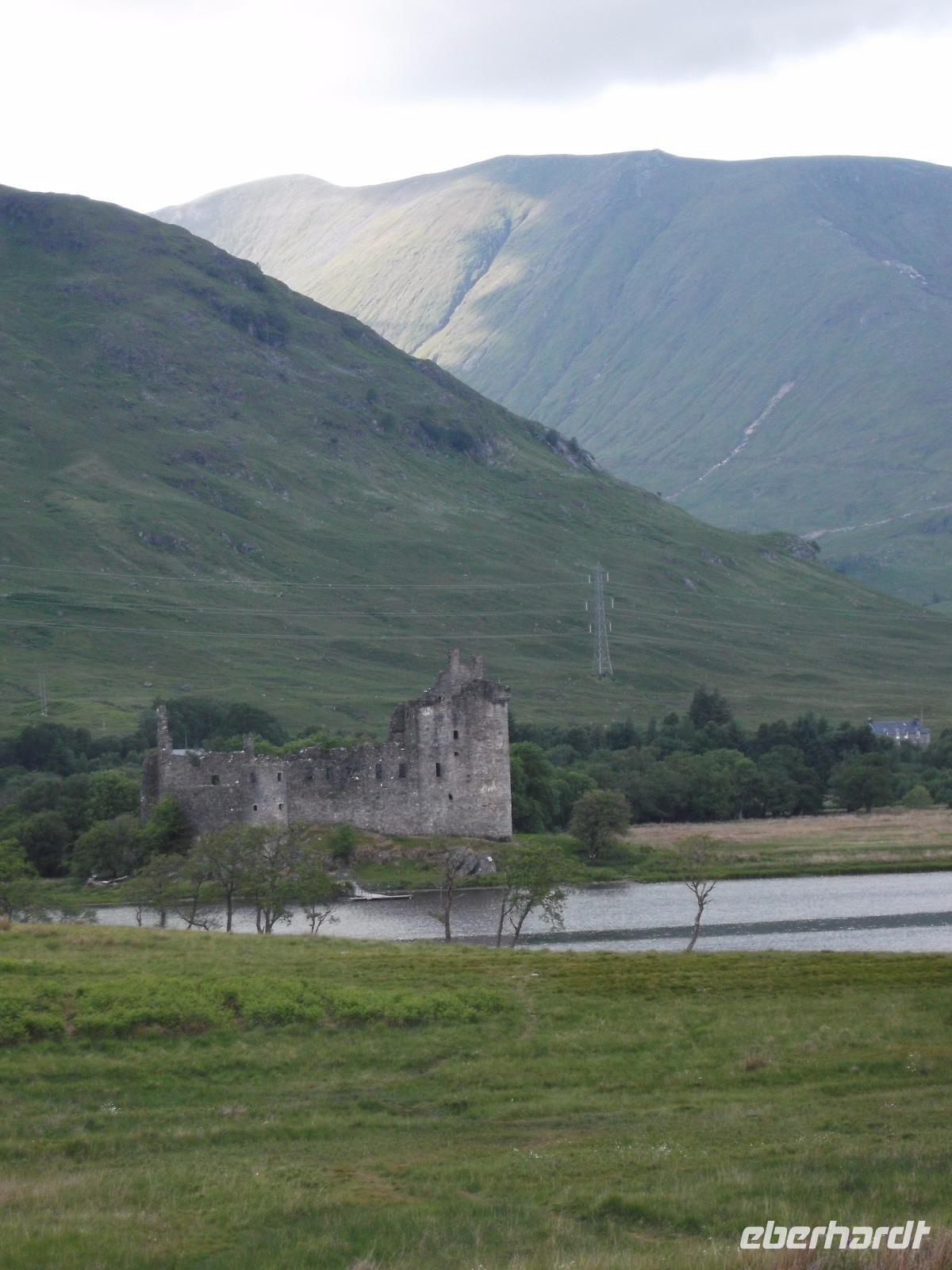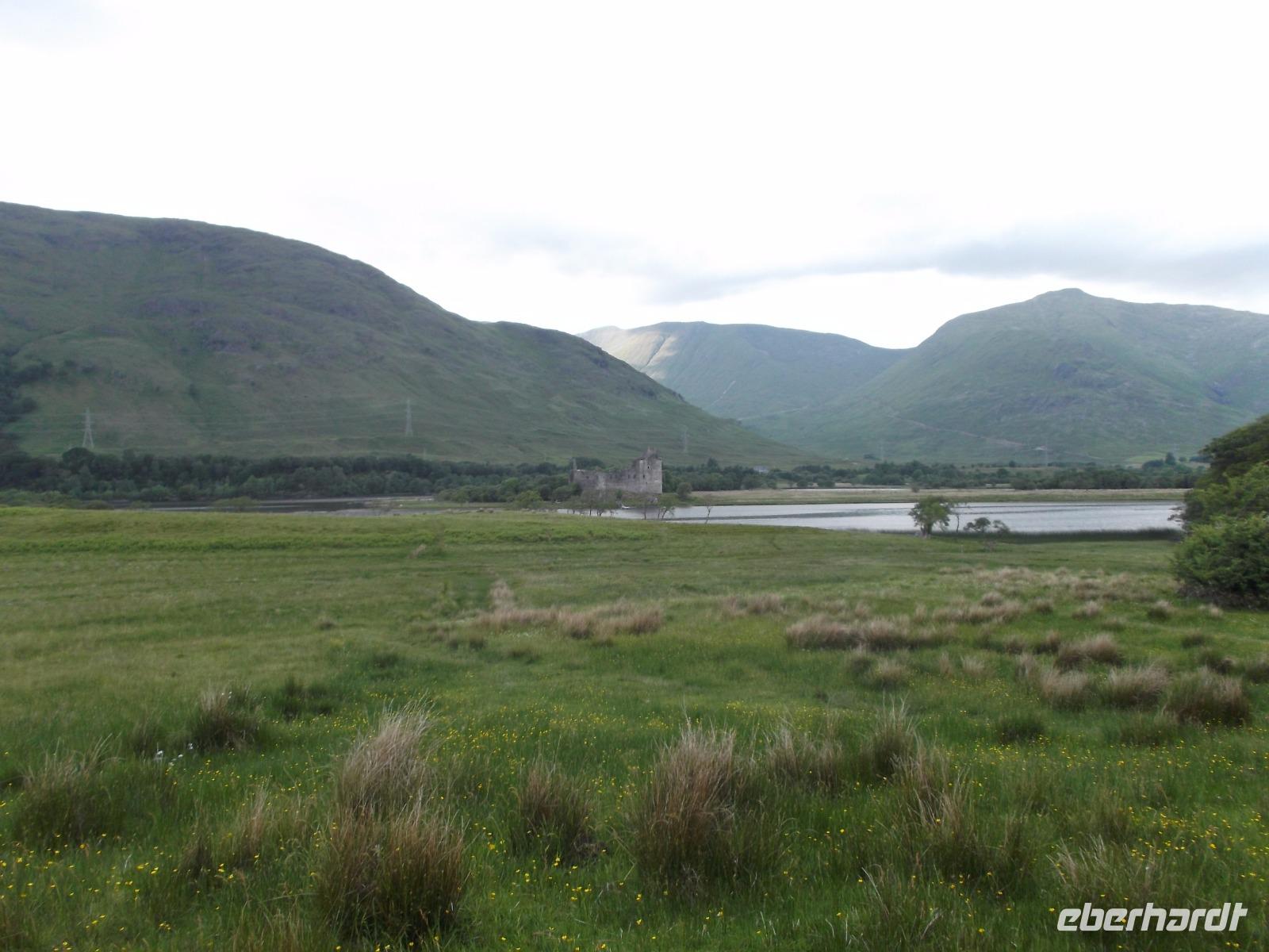 Danach gab es noch einen kurzen Abstecher - nur für einen ausgedehnten Fotostopp - zum legendenumwobensten und geheimnisvollsten aller Highland-Seen. Loch Ness, ein gewaltiger, sehr langer, schmaler und sehr tiefer Rinnensee, ist wohl vor allem aufgrund seines dunklen, fast undurchdringlich wirkenden Wassers so mystisch. Die Zuflüsse bringen jede Menge Schwebstoffe hinein, so dass seine Gewässer oft fast schwarz wirken. Den besten Blick auf den See kann man oberhalb der Ruine des Urquhart Castle erhaschen. Hier hielten wir um Fotos zu machen. Unsere Hoffnung, wenigstens kurz einmal Nessie, das Seeungeheuer, auftauchen zu sehen, wurden allerdings enttäuscht.