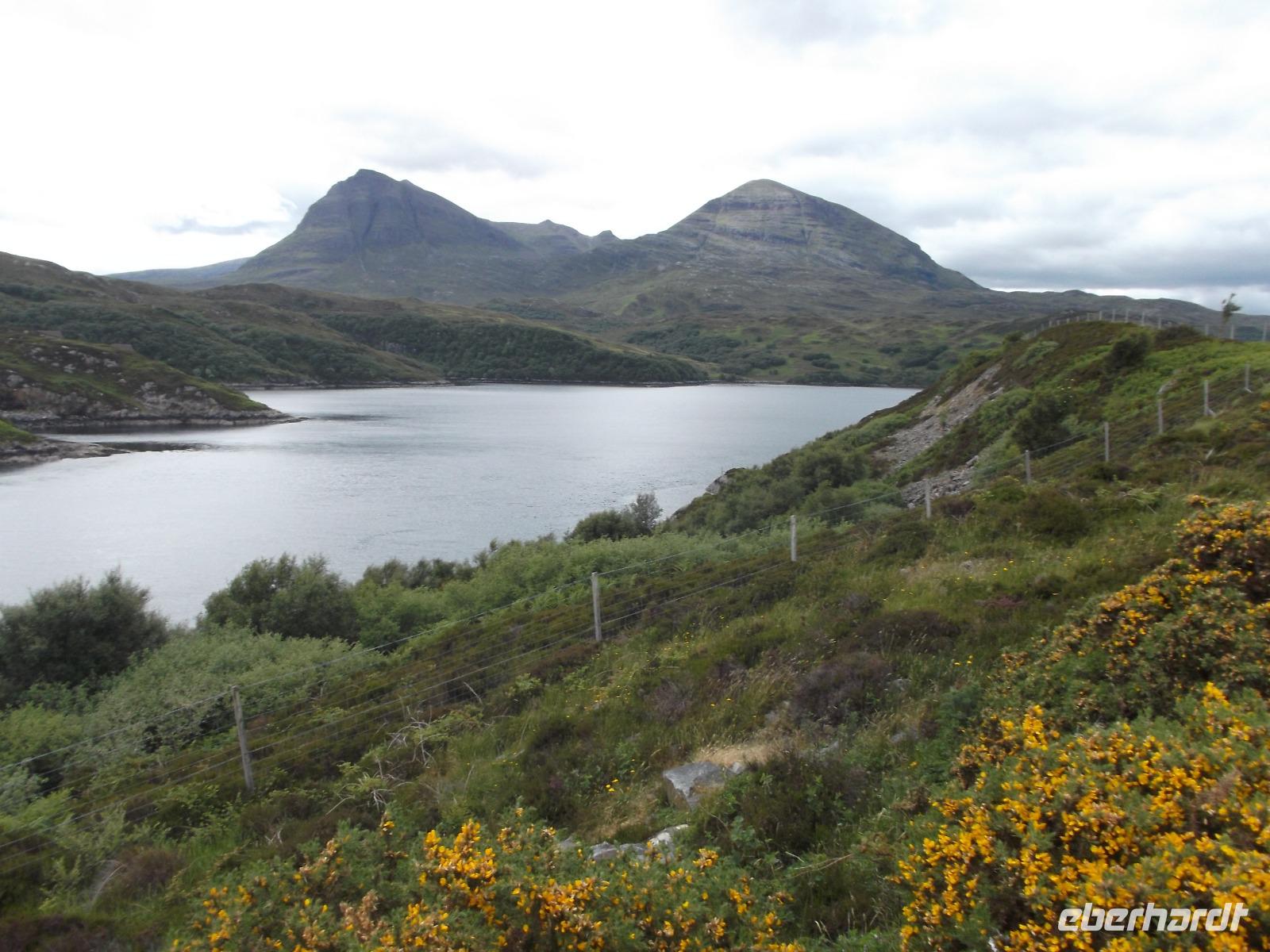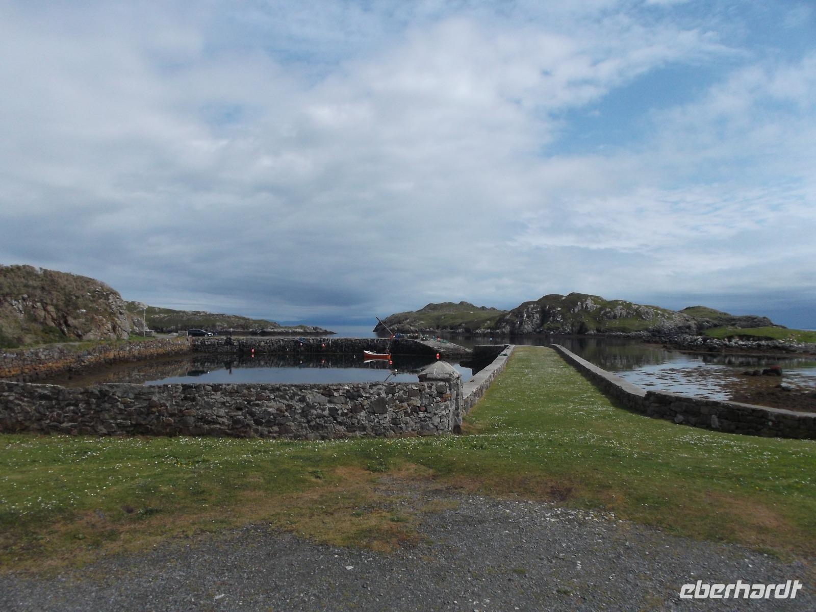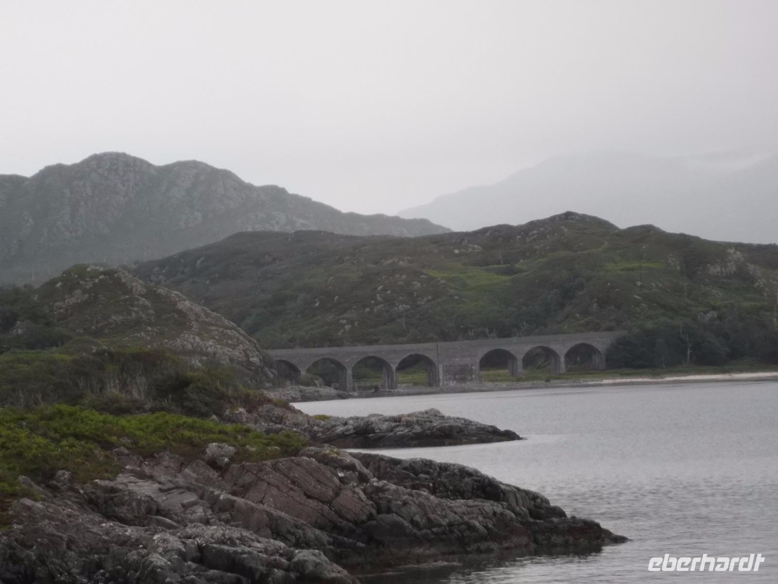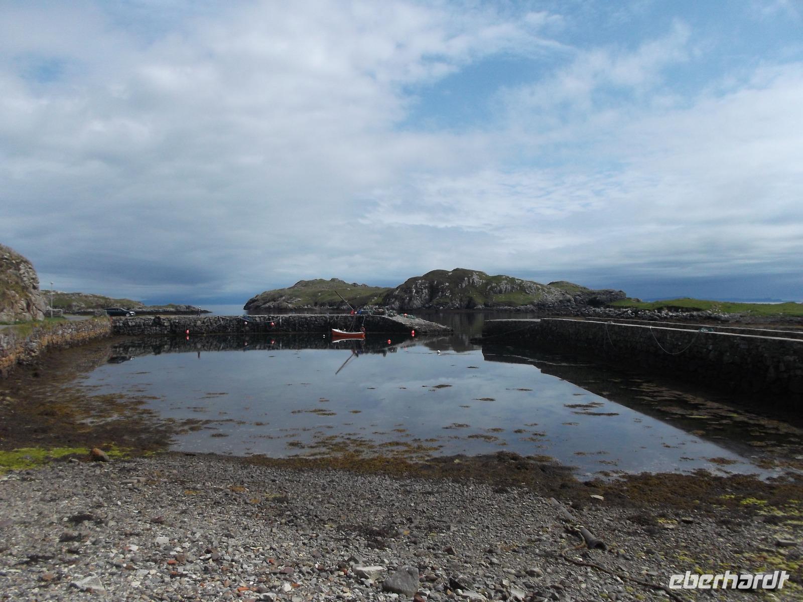 Nach zweieinhalbstündiger Überfahrt erreichten wir pünktlich Ullapool bei sich auflösendem Morgendunst. So konnten wir bei gutem Wetter den Nordwesten und Norden der schottischen Highlands genießen. Die präsentierten sich den ganzen Tag lang als Höhepunkte von Landschaft und Natur mit einer unendlichen Abfolge von Schönheiten. Wir legten Fotostopps ein an der Ruine des Ardvreck Castle und später der Brücke von Kylescu am tiefen und malerischen Fjord und hatten gegen Mittag einen längeren Stopp am Strand von Balnakeil - unweit vom nordwestlichsten Punkt der Insel Großbritannien, dem Kap Wrath. Hier besuchten wir nicht nur den Strand von Balnakeil sondern auch die malerissch gelegene Ruine des Kirchleins, das früher eines der Zentren der Christianisierung in Schottland war. Der Legende nach, die die Wichtigkeit dieser Pfarrei betont, ist die Kirche seit Jahrhunderten (obwohl schon seit langem nur noch Ruine) unmittelbar dem Heiligen Stuhl unterstellt und der Papst selbst der zuständige Geistliche.