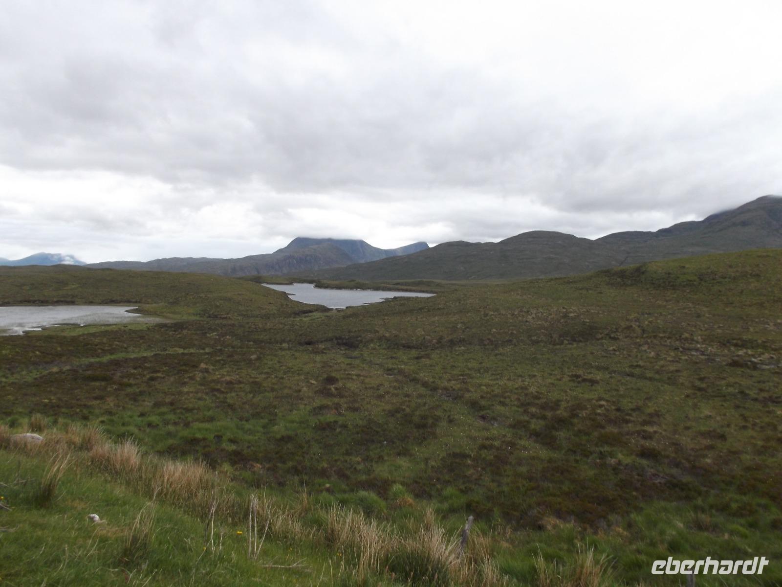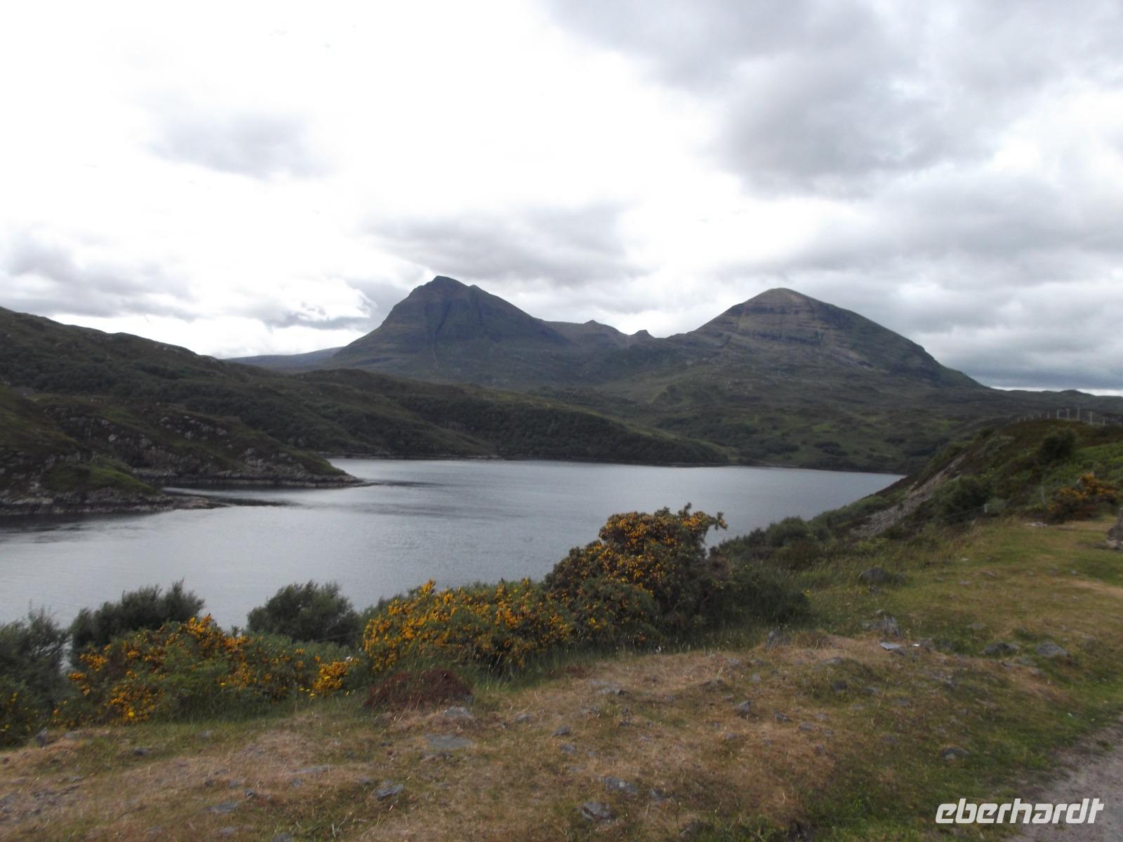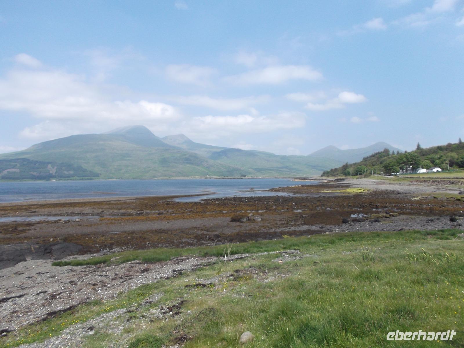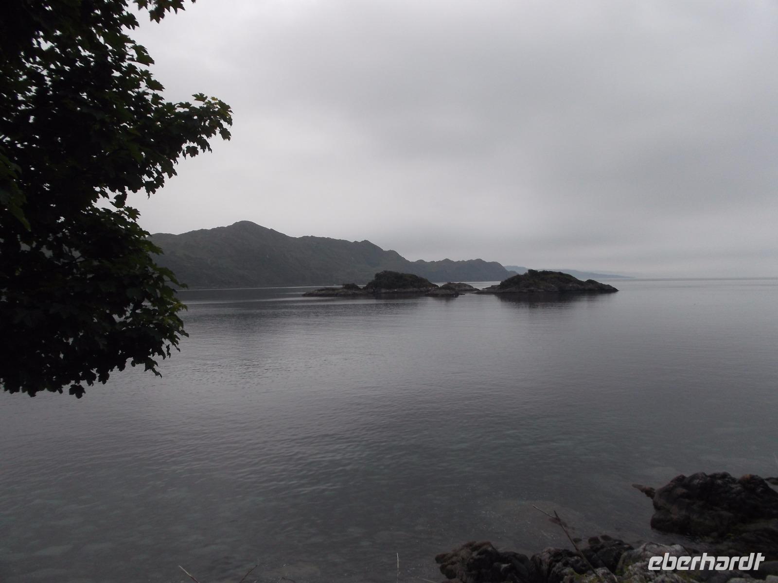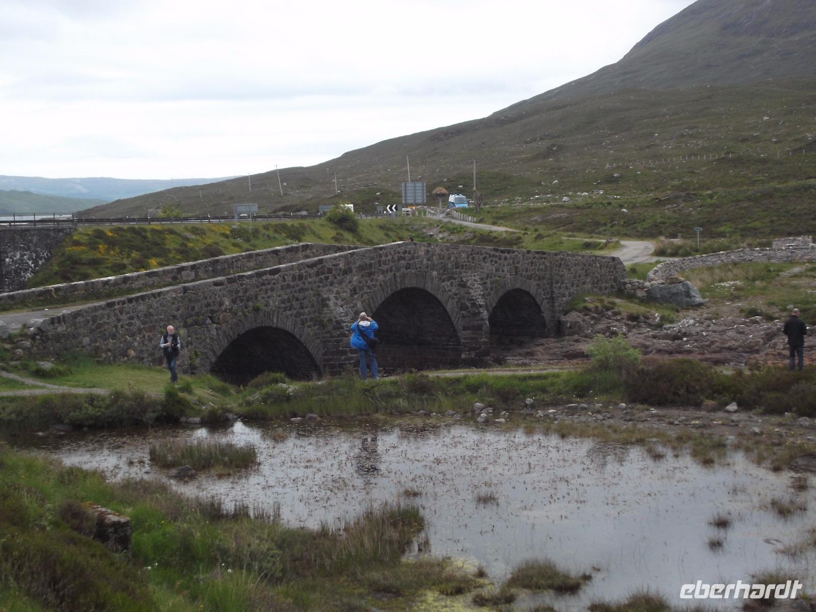 Nach zweieinhalbstündiger Überfahrt erreichten wir pünktlich Ullapool bei sich auflösendem Morgendunst. So konnten wir bei gutem Wetter den Nordwesten und Norden der schottischen Highlands genießen. Die präsentierten sich den ganzen Tag lang als Höhepunkte von Landschaft und Natur mit einer unendlichen Abfolge von Schönheiten. Wir legten Fotostopps ein an der Ruine des Ardvreck Castle und später der Brücke von Kylescu am tiefen und malerischen Fjord und hatten gegen Mittag einen längeren Stopp am Strand von Balnakeil - unweit vom nordwestlichsten Punkt der Insel Großbritannien, dem Kap Wrath. Hier besuchten wir nicht nur den Strand von Balnakeil sondern auch die malerissch gelegene Ruine des Kirchleins, das früher eines der Zentren der Christianisierung in Schottland war. Der Legende nach, die die Wichtigkeit dieser Pfarrei betont, ist die Kirche seit Jahrhunderten (obwohl schon seit langem nur noch Ruine) unmittelbar dem Heiligen Stuhl unterstellt und der Papst selbst der zuständige Geistliche.
