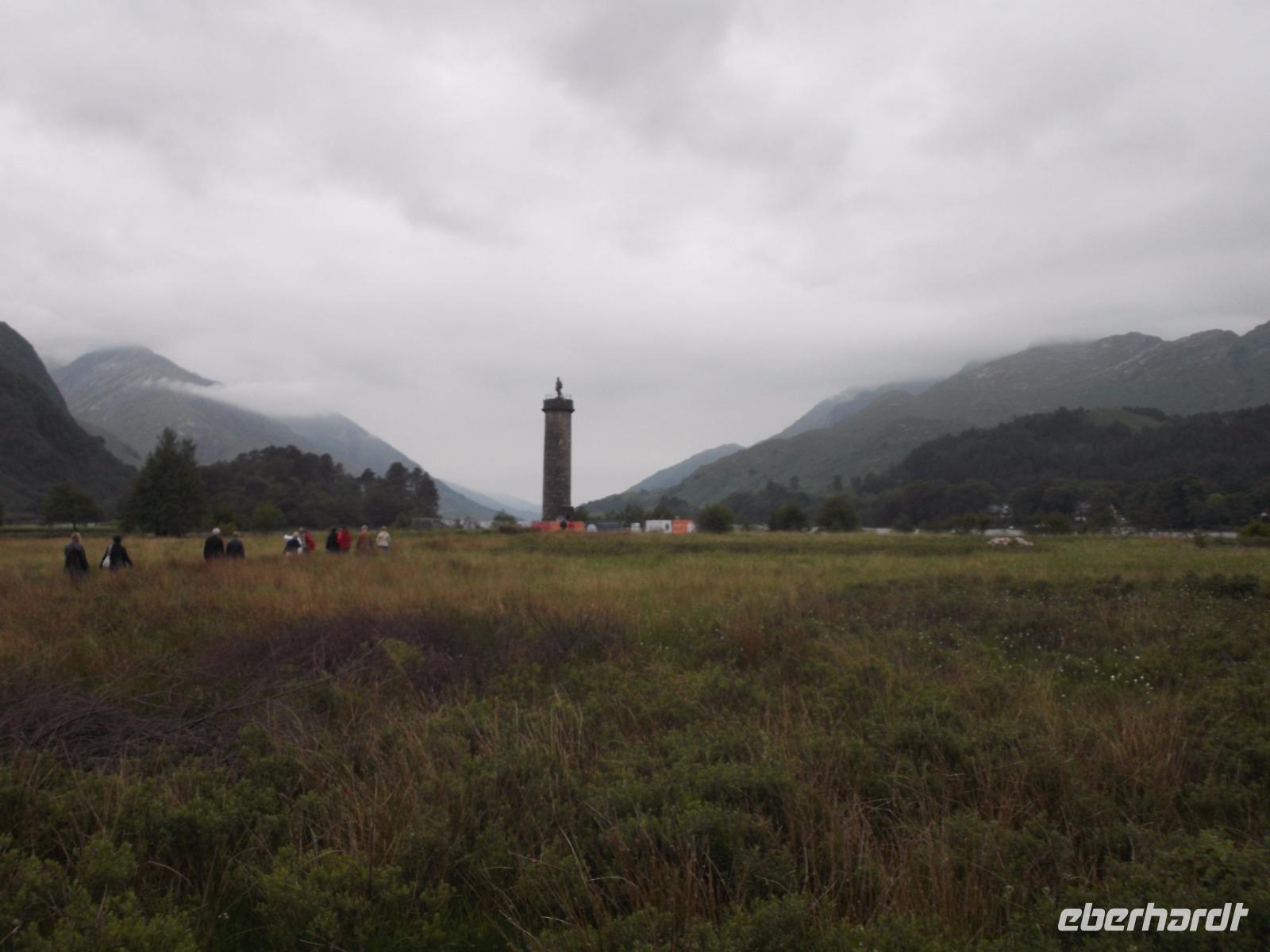 Wieder zurück auf der „Road oft he Isles" folgte gleich der nächste Fotostopp am bekannten Glenfinnan Monument. Es erinnert an den Aufstand der Hochlandclans, die als Anhänger des in England gestürzten Königs Jakob „Jakobiten" genannt wurden. 1745 erhoben sich von hier aus zum letzten Mal königstreue Highlander unter dem Thronanwärter „Bonnie Prince Charlie" gegen die englische Herrschaft über Schottland. In Glenfinnan schworen viele Clanchefs dem Sohn des exilierten Königs die Treue. Allerdings begann hier auch das Ende der jakobitischen Bewegung, denn nach anfänglichen Erfolgen ging die Armee der Highlander in der Schlacht bei Culloden 1746 zugrunde und in den nachfolgenden „Clearences" („Säuberungen") wurden die Clans entmachtet und enteignet.