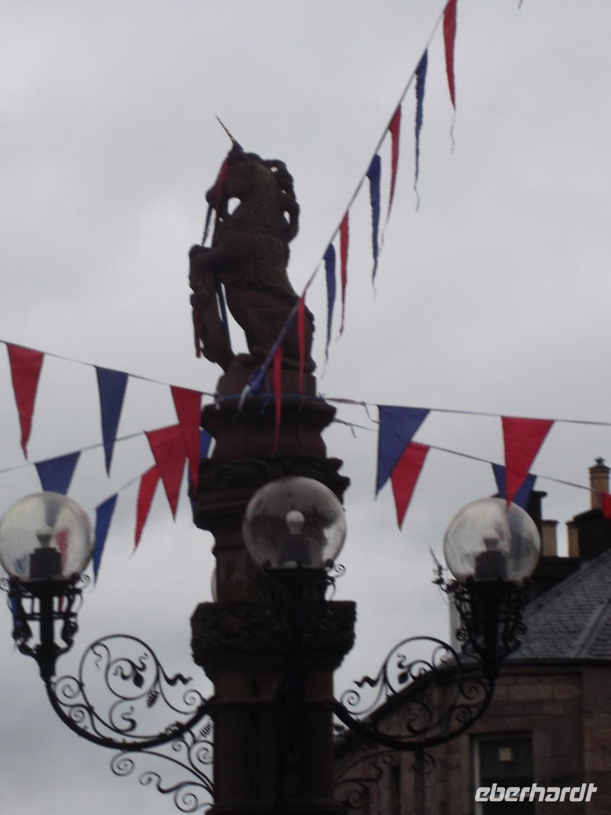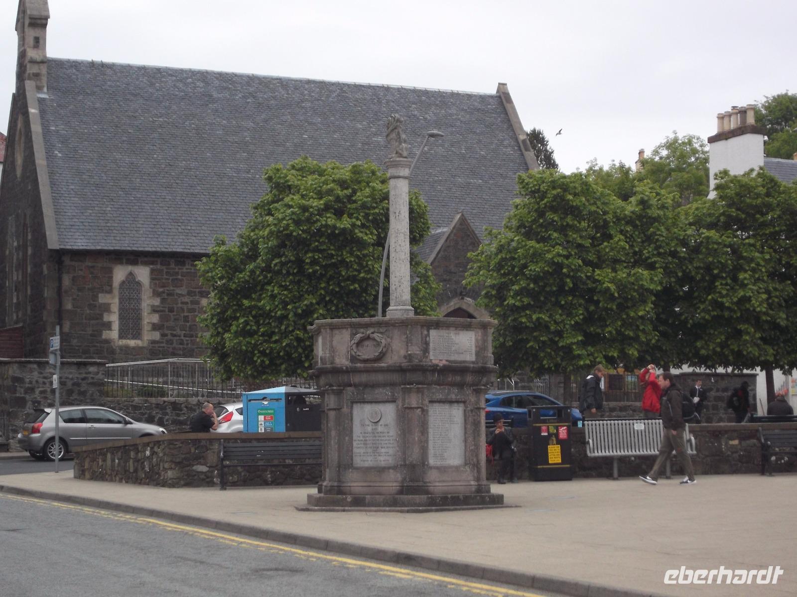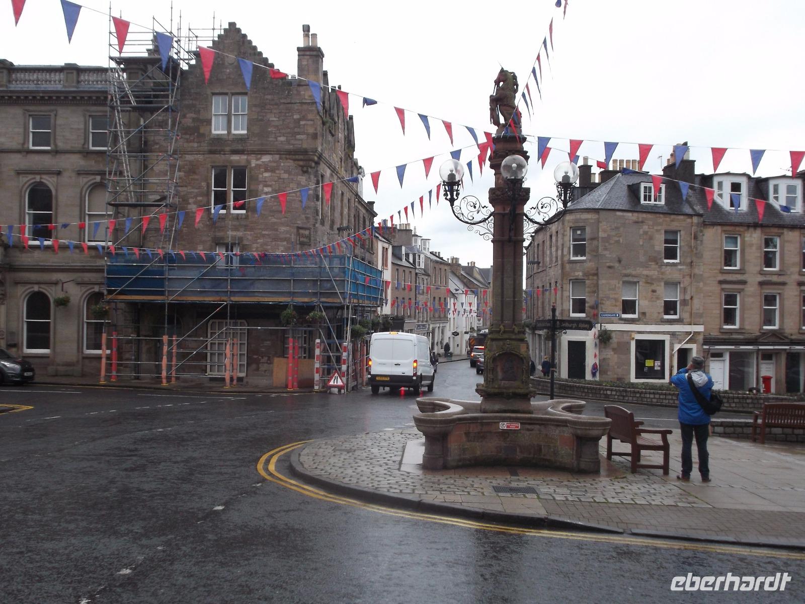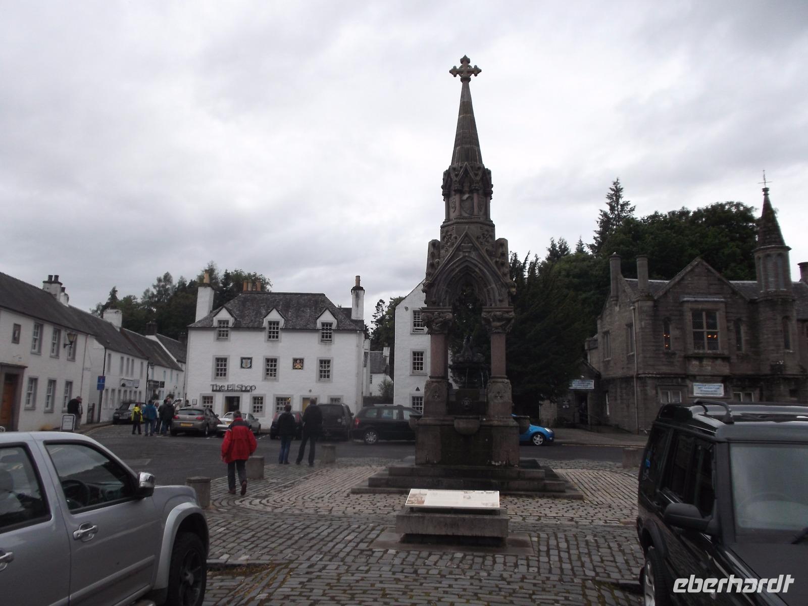 Bei der weiteren Fahrt nach Süden blieb noch Zeit für ein weiteres Extra: bei einem kleinen Abstecher konnten wir das unter Denkmalschutz stehende Städtchen Dunkeld besuchen. Es ist bekannt für seine weißen Häuser um den Marktplatz und seine prachtvolle Kathedralen-Ruine in eine Schleife des Flusses Tay. Man vermutet, dass es sich bei Dunkeld um den Ort handelt, der in Shakespeares „Macbeth" als Dunsinane, Macbeth' Burg, auftaucht. Die Gesamtanlage des winzigen Ortes sowie sein origineller Stadtplatz mit kunstvollem Brunnen sowie die schmucken weißen Häuschen machen das Städtchen neben der Kathedrale besuchenswert.