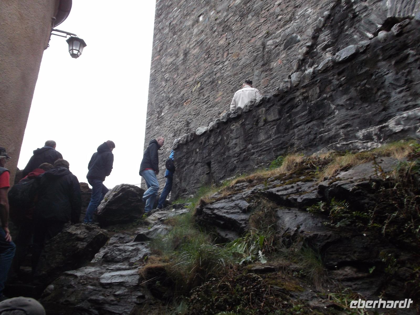Später fuhren wir zum Eilean Donan Castle, das zu den bekanntesten und malerischsten Burgen Schottlands gehört. Da man es allgemein als einen der schönsten und typischsten Clansitze betrachtet, wird das Castle gern und oft als Filmkulisse genutzt. So diente es nicht nur im James-Bond-Film „Die Welt ist nicht genug" als schottisches Hauptquartier des britischen Geheimdienstes, sondern auch Teile der „Highlander"-Trilogie und des Historienfilms „Braveheart" mit Mel Gibson als schottischem Nationalhelden William Wallace wurden hier gedreht. Bei einer kurzen Führung und anschließender Besichtigung des im 20 Jh. restaurierte Schlosses konnten wir Typisches über die Einrichtung und vermeintliche Romantik schottischer Clansitze erfahren.