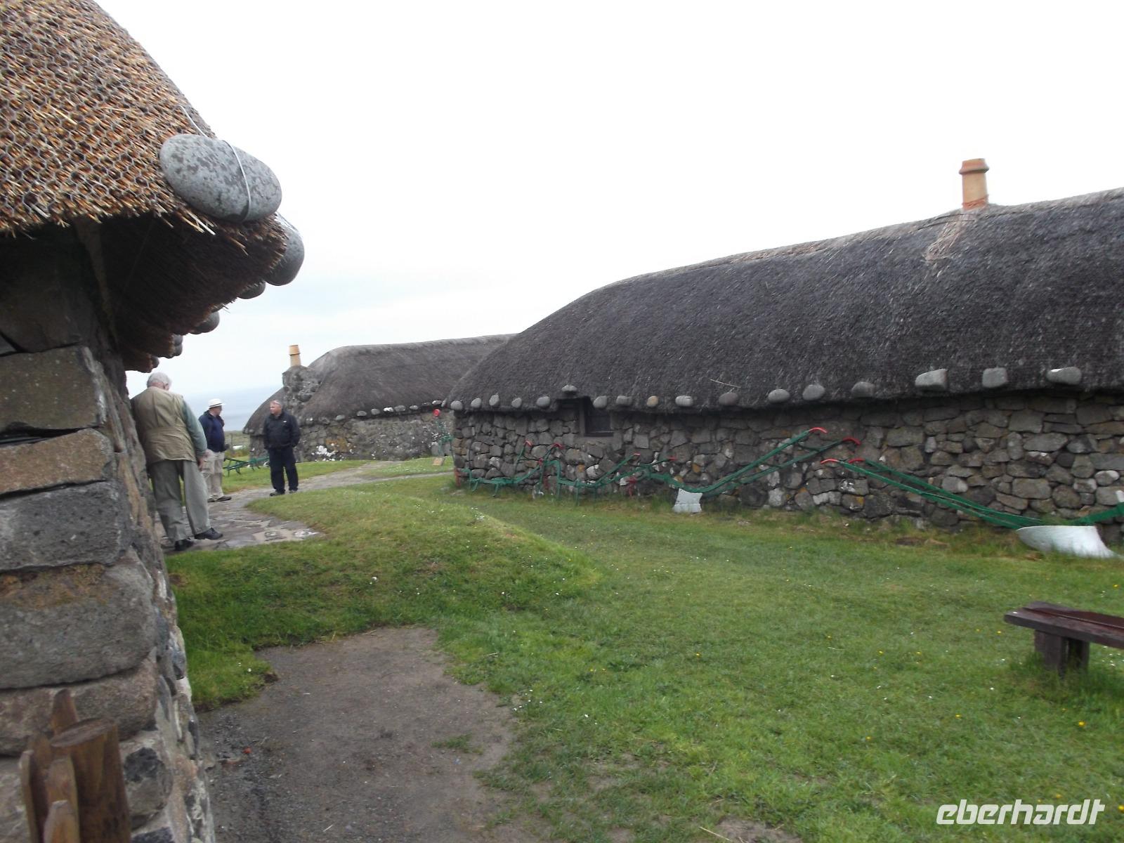 Der letzte für den Nachmittag geplante Programmpunkt war der Besuch des „Isle of Skye Museum". In diesem Freilichtmuseums kann man in den traditionellen „Black Houses" durch eine lebendige Ausstellung die Lebensweise vergangener Jahrhunderte auf den Hebriden Nachvollziehen. Hier war auch Gelegenheit, das nicht weit entfernt liegende Grab der schottischen Nationalheldin Flora McDonald zu besuchen. Sie hatte einst dem vor seinen Verfolgern fliehenden „bonnie Prince Charlie", dem Anführer der bei Culloden 1746 geschlagenen Jakobiten, das Leben gerettet und ihm die Flucht ins französische Exil ermöglicht.