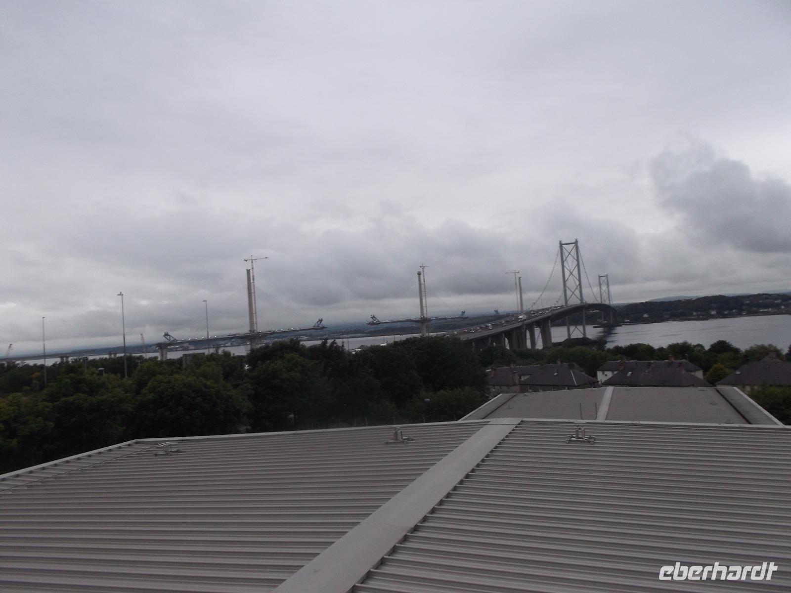 Eine weitere Unterbrechung unserer Fahrt geschah an den Firth-of-Forth-Bridges. Hier war Gelegenheit für einen Fotostopp an den beeindruckenden Brücken, die Straße und Eisenbahn über breite Mündung führen: die Straßenbrücke ist seit 1964 die längste Großbritanniens - ihre Nachfolgerin, die den Verkehr entlasten soll, gerade in Bau. Vor allem aber die Eisenbahnbrücke von 1890 ist interessant: mit ihren über 50.000 Tonnen Stahl gilt sie bis heute als ingenieurtechnische Meisterleistung.