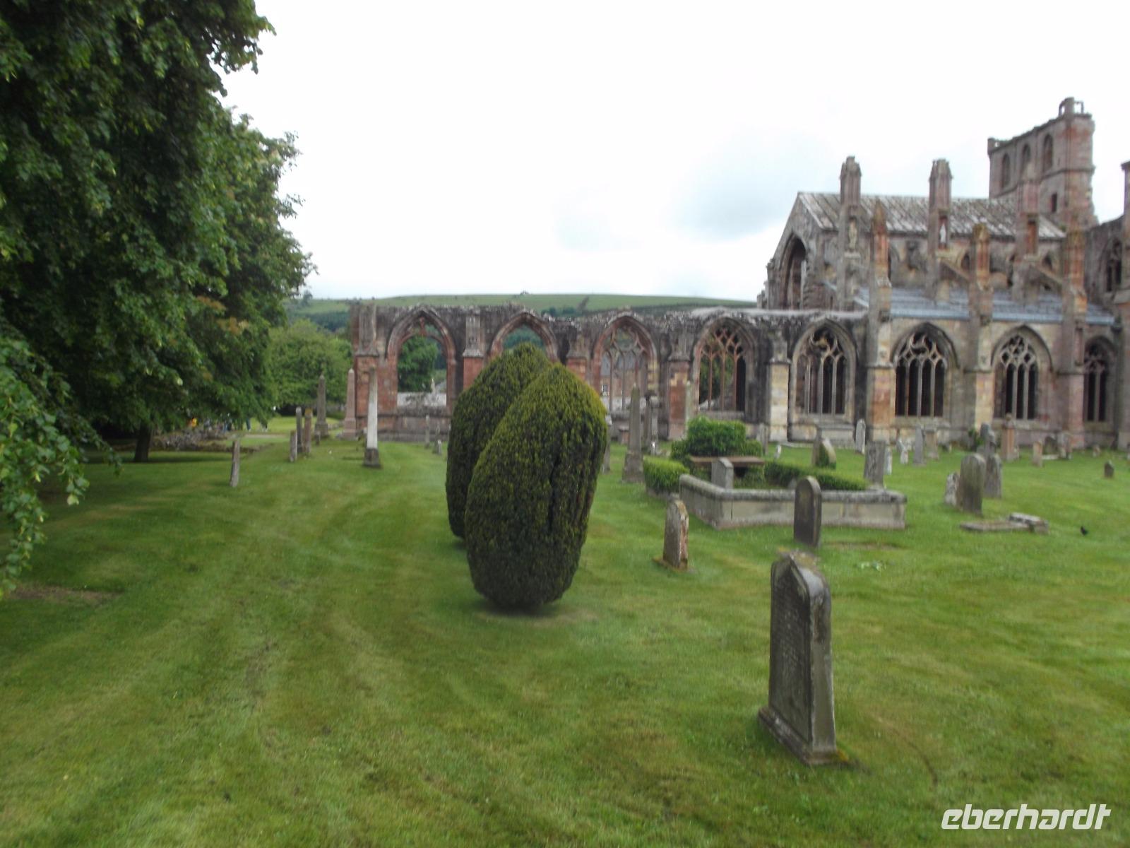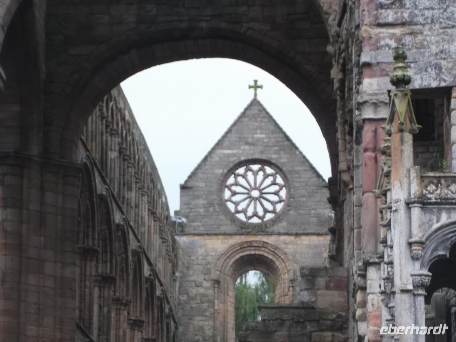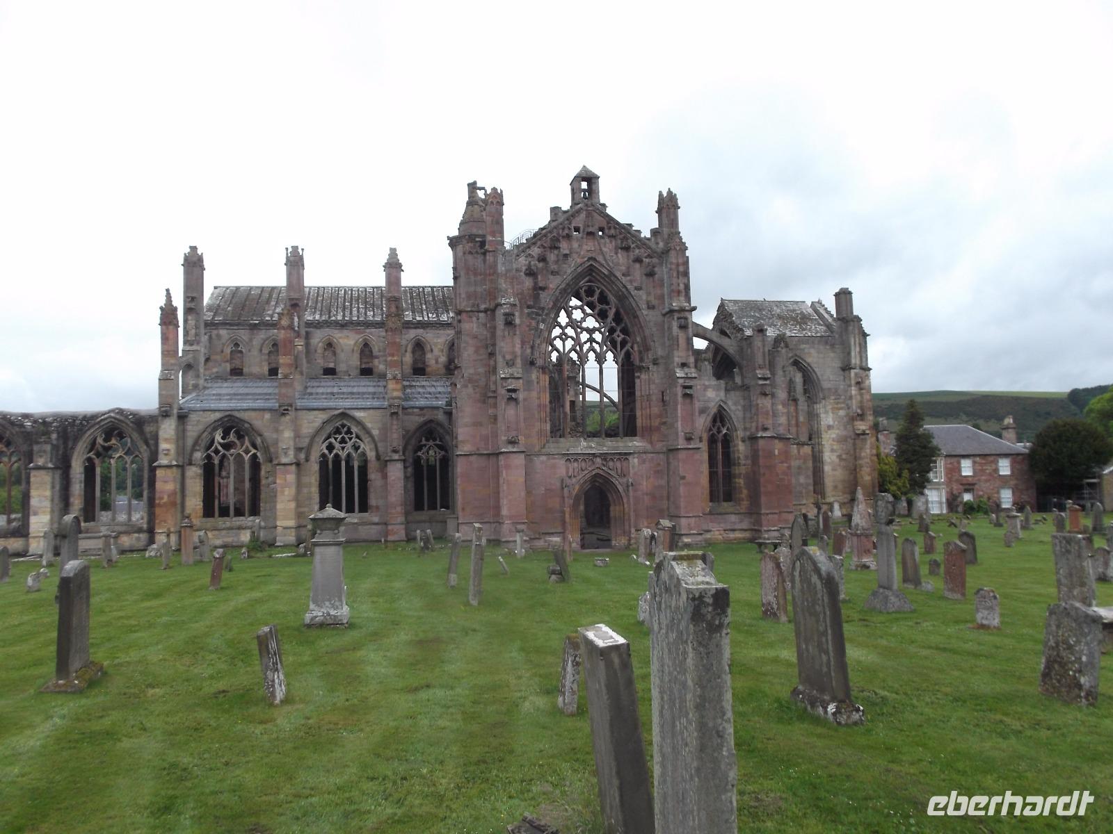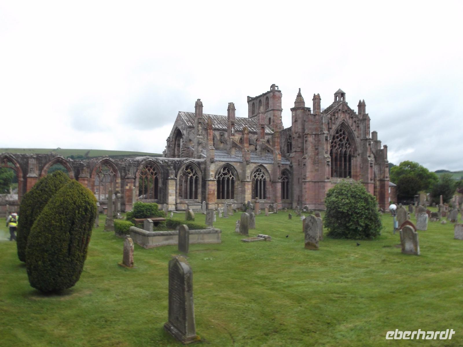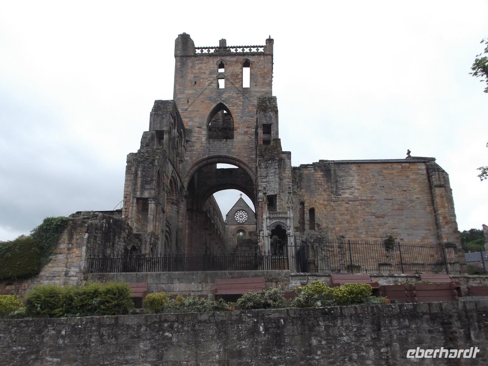 Weiter ging es dann wenige Kilometer bis zum Parkplatz an der Abtei. Jedburgh Abbei, schon im 12. Jh. in königlichem Auftrag als Augustinerabtei gegründet, ist die größte der Borderabtei-Ruinen. Es war Zeit und Gelegenheit für die Besichtigung der gewaltigen Abteiruine oder für einen Spaziergang durch die kleine Stadt, in der man sich von außen das alte Gefängnis, das historische Marktkreuz oder das historische Haus ansehen konnte, in der angeblich einmal Maria Stuart gewohnt haben soll.