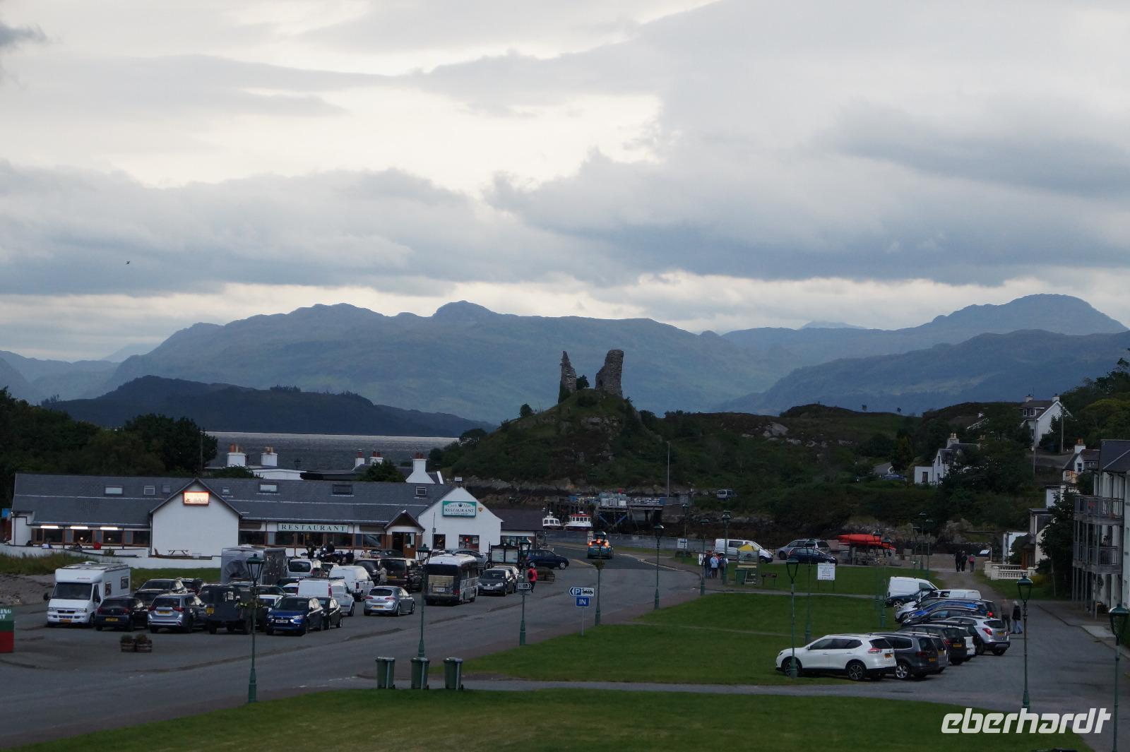 Nach dem Besuch dieser Burg fuhren wir wieder zurück nach Skye, um in Kyleakin zu nächtigen. Abends im Hotel spielte ein Dudelsackspieler im Kilt auf, der von einigen für einen örtlichen Musiker gehalten wurde, sich am nächsten Tag aber als Busfahrer einer anderen Reisegruppe herausstellte. 320 km schafften wir an diesem Tag.