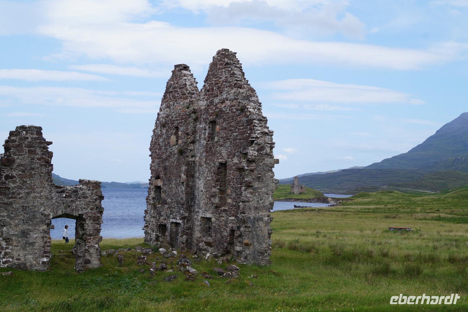 Der Loch Assynt mit dem aus den Ruinen des Ardvreck Castles errichten Calda House bot Anlass, uns bald wieder die Füße zu vertreten.