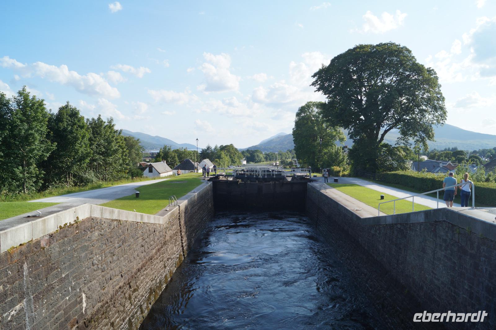 Vor unserer Ankunft in Fort William machten wir dann noch einen Zwischenstopp an den Banavie Locks, jener Schleusentreppe des kaledonischen Kanals von Thomas Telford, die auch als Neptun's Staircase bekannt ist. Sie verbindet den Firth of Moray im Osten Schottlands, in den der River Ness bei Inverness aus dem Loch Ness entwässert, mit Loch Linnhe via der Seen Loch Ness, Loch Oich und Loch Lochy. Loch Ness, Loch Oich und Loch Lochy sind Seen, Loch Linnhe und seine Nebenlochs Loch Etive und Loch Eil sind fjordartige Meeresarme.