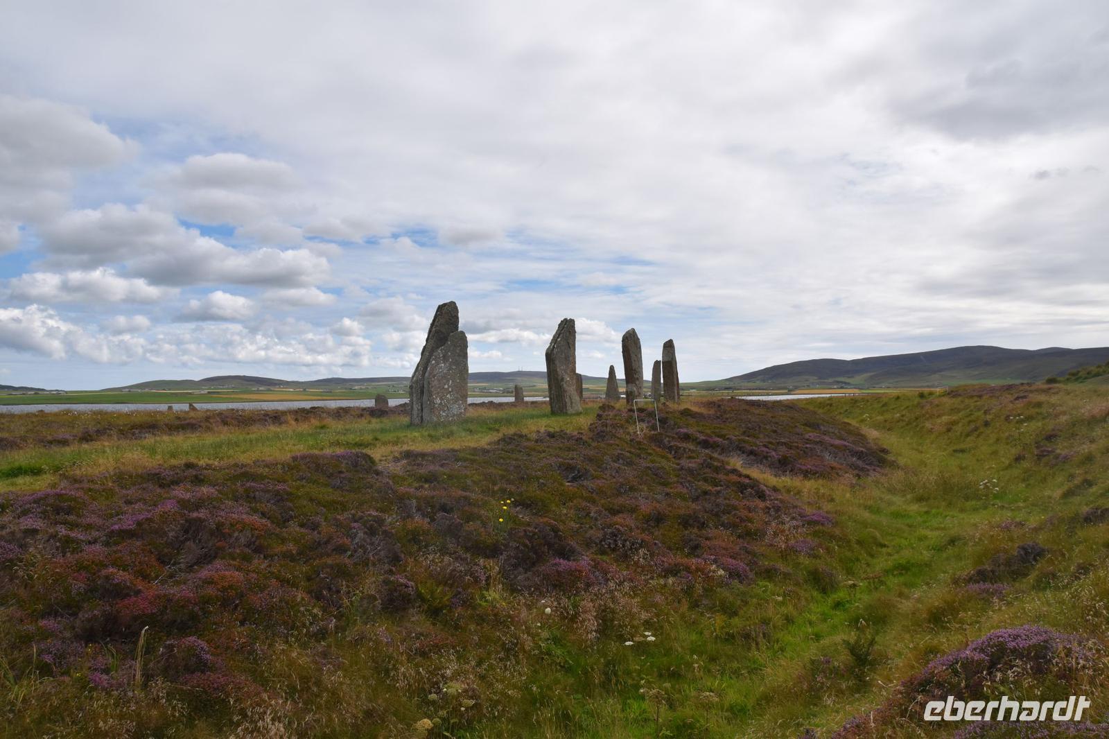 Auf den Orkneys haben wir eine geführte Rundfahrt mit schottischem Bus und Reiseleiterin. Sie erklärt uns die Ereignisse des ersten und zweiten Weltkrieges, wir machen Fotostopps an der Churchill Barrier und der italienischen Kapelle, sowie einen einstündigen Mittagsstopp in der Hauptstadt Kirkwall mit der schönen Kathedrale. Danach besuchen wir den Steinkreis Ring of Brodgar und dann die Ausgrabungsstätten von Skara Brae. Auch den alten Herrensitz hier besichtigen wir noch, bevor uns eine kleine Rundfahrt zurück zur Fähre bringt.