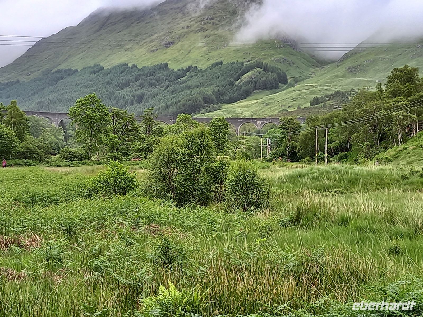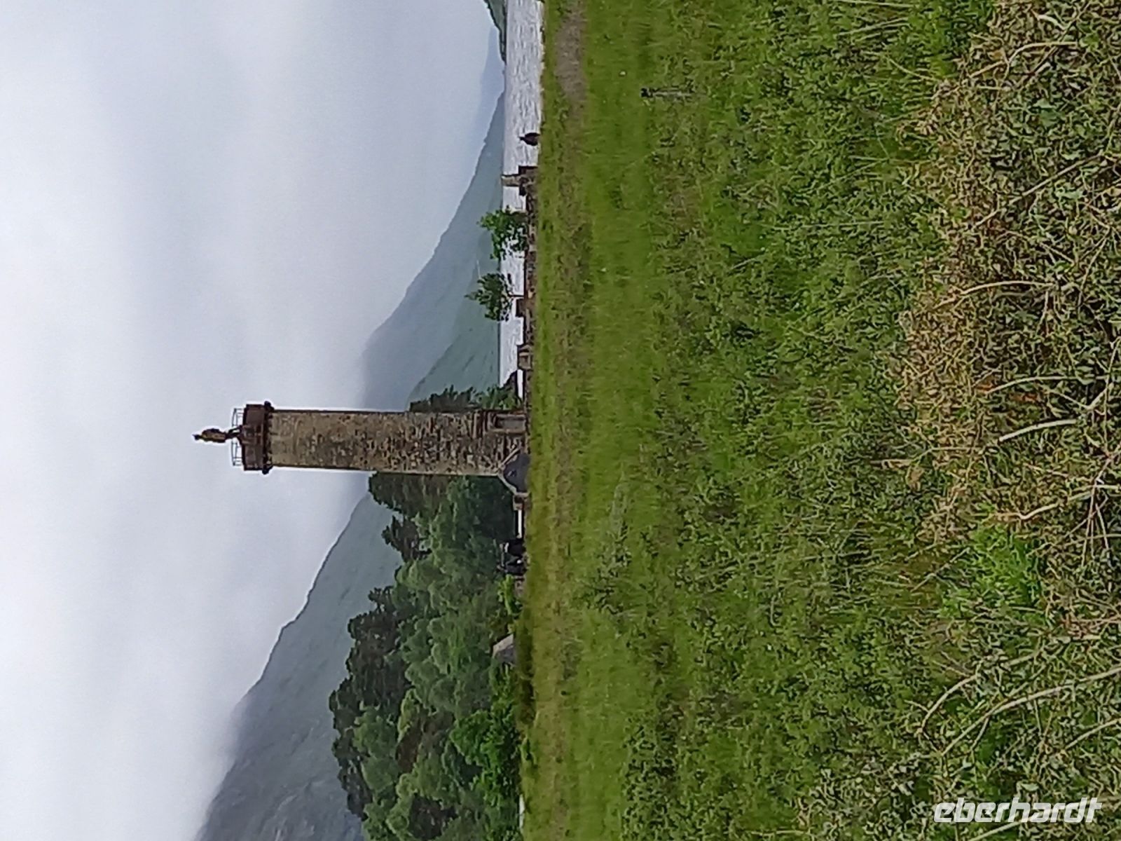 Gleich darauf gab es den nächsten Fotostopp am bekannten Glenfinnan Monument, das an der Stelle errichtet wurde, wo 1745 der letzte große schottische Aufstand der „Jakobiten“, geführt vom Thronanwärter „Bonnie Prince Charlie“ gegen die englische Herrschaft über Schottland begann. Von hier aus zogen die Hochländer gegen England, wurden aber nach anfänglichen Erfolgen in der Schlacht bei Culloden 1746 vernichtend geschlagen und eine Periode der Etmachtung und Enteignung schottischer Clans begann.