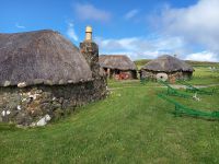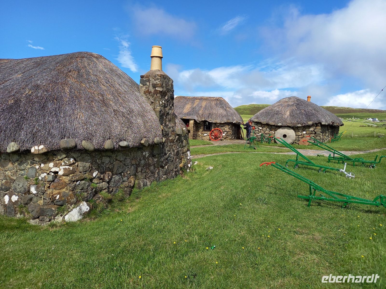 Als letzten für den Nachmittag geplanten Programmpunkt busechten wir das „Isle of Skye Museum“, ein kleines Freilichtmuseums mit traditionellen „Black Houses“ und einer kleinen lebendigen Ausstellung über die Lebensweise vergangener Jahrhunderte auf den Hebriden. Letzte Etappe auf Skye war dann die Fahrt zum kleinen Fährhafen Uig, von dem kurz nach 18.00 Uhr die Fähre zur Insel Lewis starten sollte. Leider brachte die so viel Verspätung mit sich, dass wir zu spät für jedes Abendessen auf den Äußeren Hebriden angekommen wären. Doch es gelang mir, für alle Gäste ein Abendessen im Restaurant der verspäteten Fähre zu organisieren, so dass wir zwar sehr spät, aber nicht hungrig im Hotel der Inselhauptstadt Stornoway eincheckten.