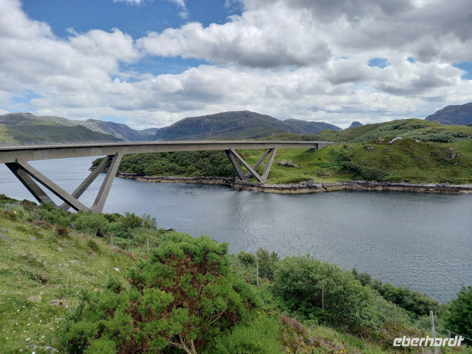 Nach zweieinhalbstündiger Überfahrt erreichten wir pünktlich Ullapool bei schönem Wetter. Von hier aus hing es in den Nordwesten und Norden der schottischen Highlands. Ein ganzer ganzer Tag lang mit Höhepunkten von Landschaft und Natur, unterbrochen von Fotostopps an der Ruine des Ardvreck Castle und später der Brücke von Kylescu an einem tiefen und malerischen Fjord.