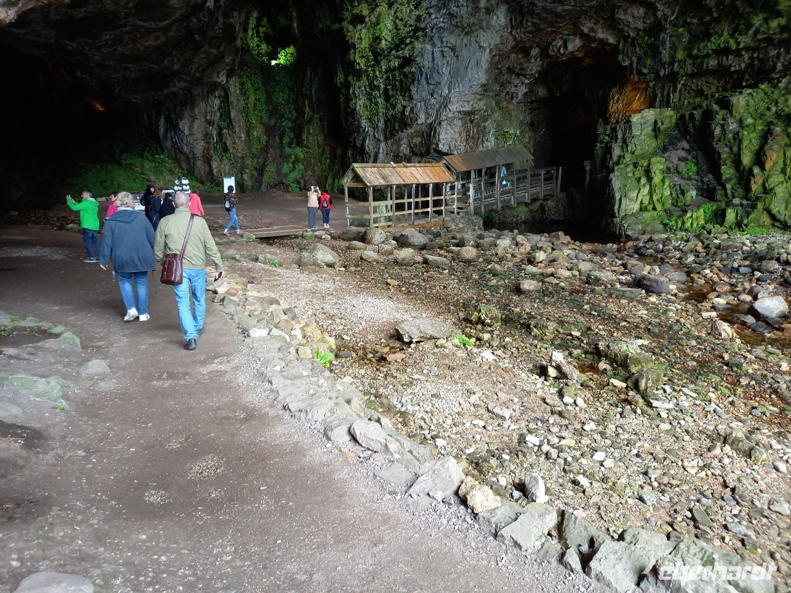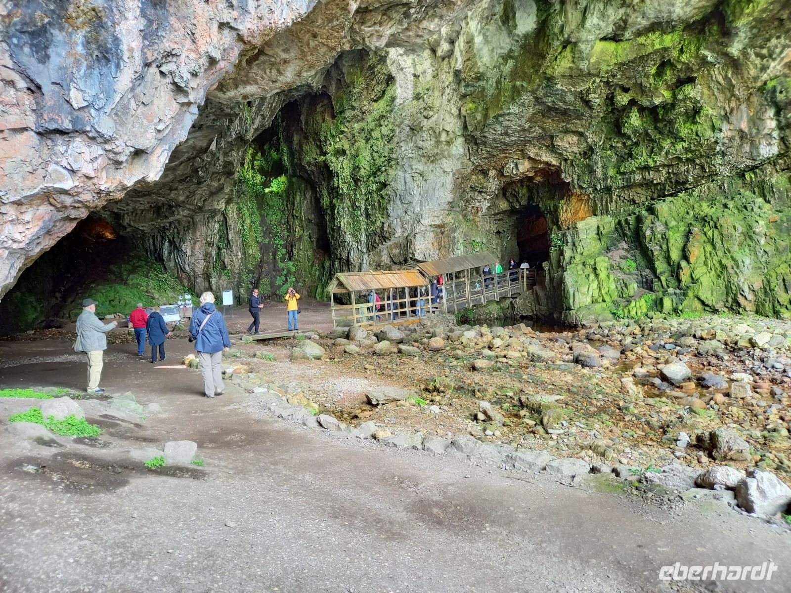 Später hielten wir zum Besuch der geheimnisvollen Smoo –Cave weiter. Es ist eine am Meeresufer liegende große Karsthöhle, recht groß und relativ leicht zugänglich, um die sich seit Jahrhunderten Legenden ranken. Ursprünglich von den alten Griechen als „Eingang zur Unterwelt“ apostrophiert, diente die auf Meeresniveau liegende Grotte wohl oft auch Piraten und Schmugglern als Zuflucht. In den großen Höhlenkammern befindet sich ein Süßwassersee, der oft von einem Wasserfall, in dem sich der Bach Allt Smoo durch ein Loch in der Höhlendecke ergießt, gespeist wird.