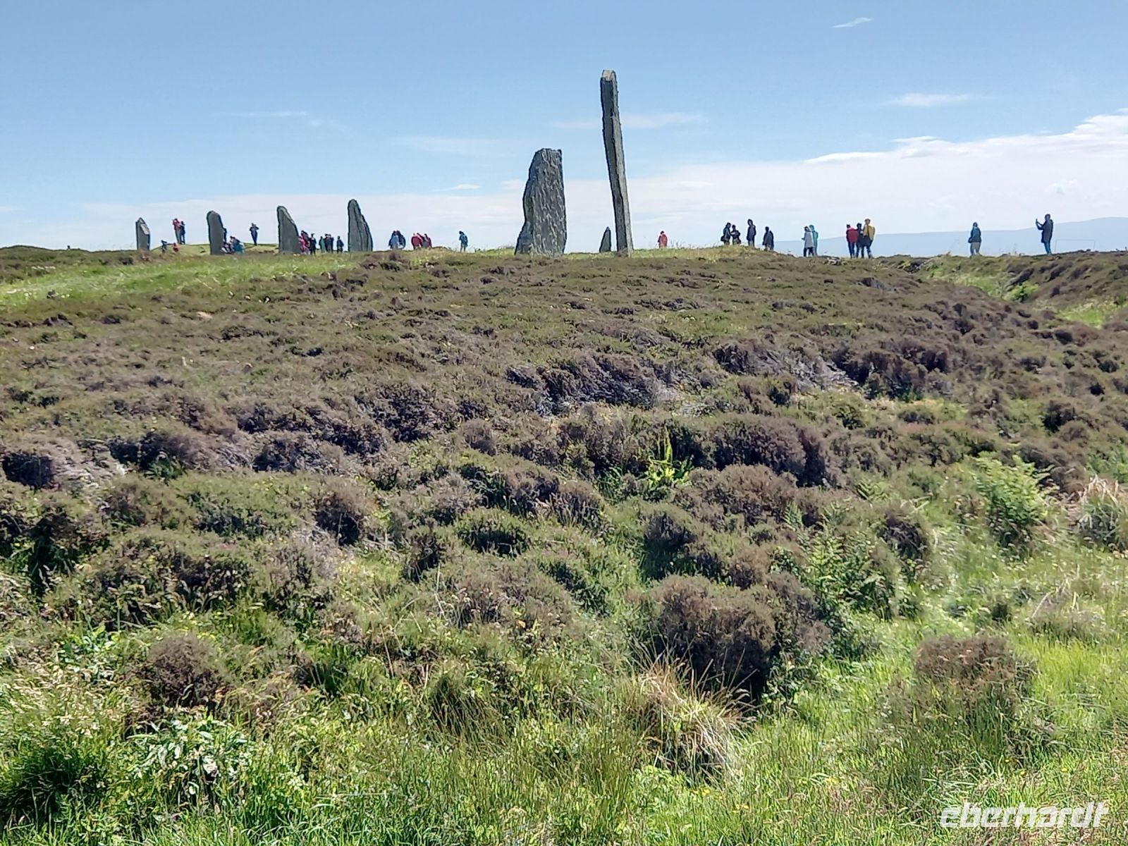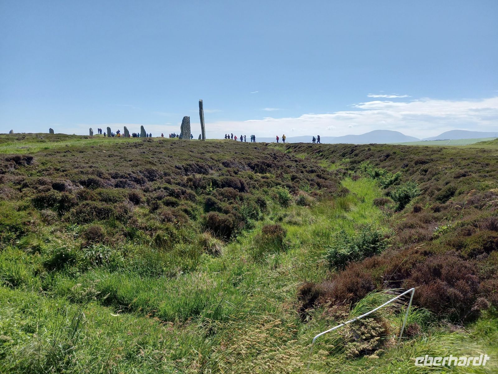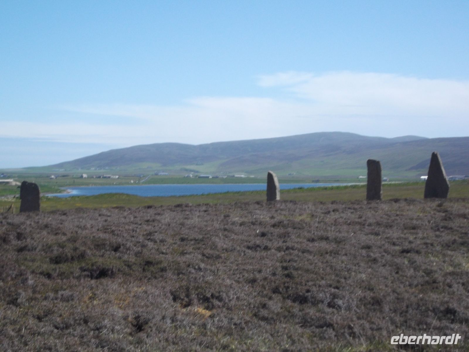Später besuchten wir noch den gewaltigen megalithischen Steinkreis des „Ring of Brodgar“, Er ist einer der größten der bekannten und gut erhaltenen Steinkreise mit über 100 Metern Durchmesser. Zwar ist er damit größer als der von Callanish, den wir auf Lewis besucht hatten, aber viel weniger geschlossen und damit wirkt er auch vielleicht weniger geheimnisvoll..
