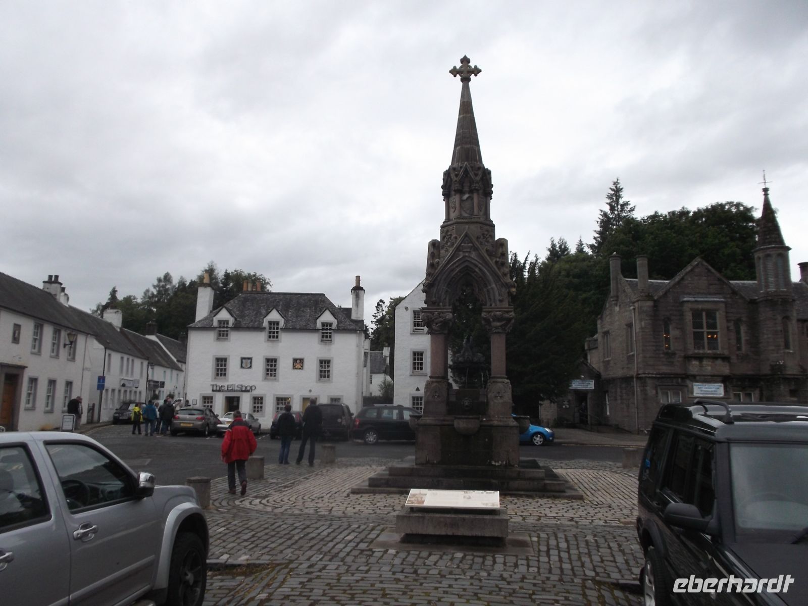 Bei der weiteren Fahrt nach Süden verweilten wir noch etwas im unter Denkmalschutz stehenden Städtchen Dunkeld. Es ist bekannt für seine weißen Häuser um den Marktplatz und seine prachtvolle Kathedralen-Ruine in eine Schleife des Flusses Tay – die jedoch diesmal leider verschlossen war.