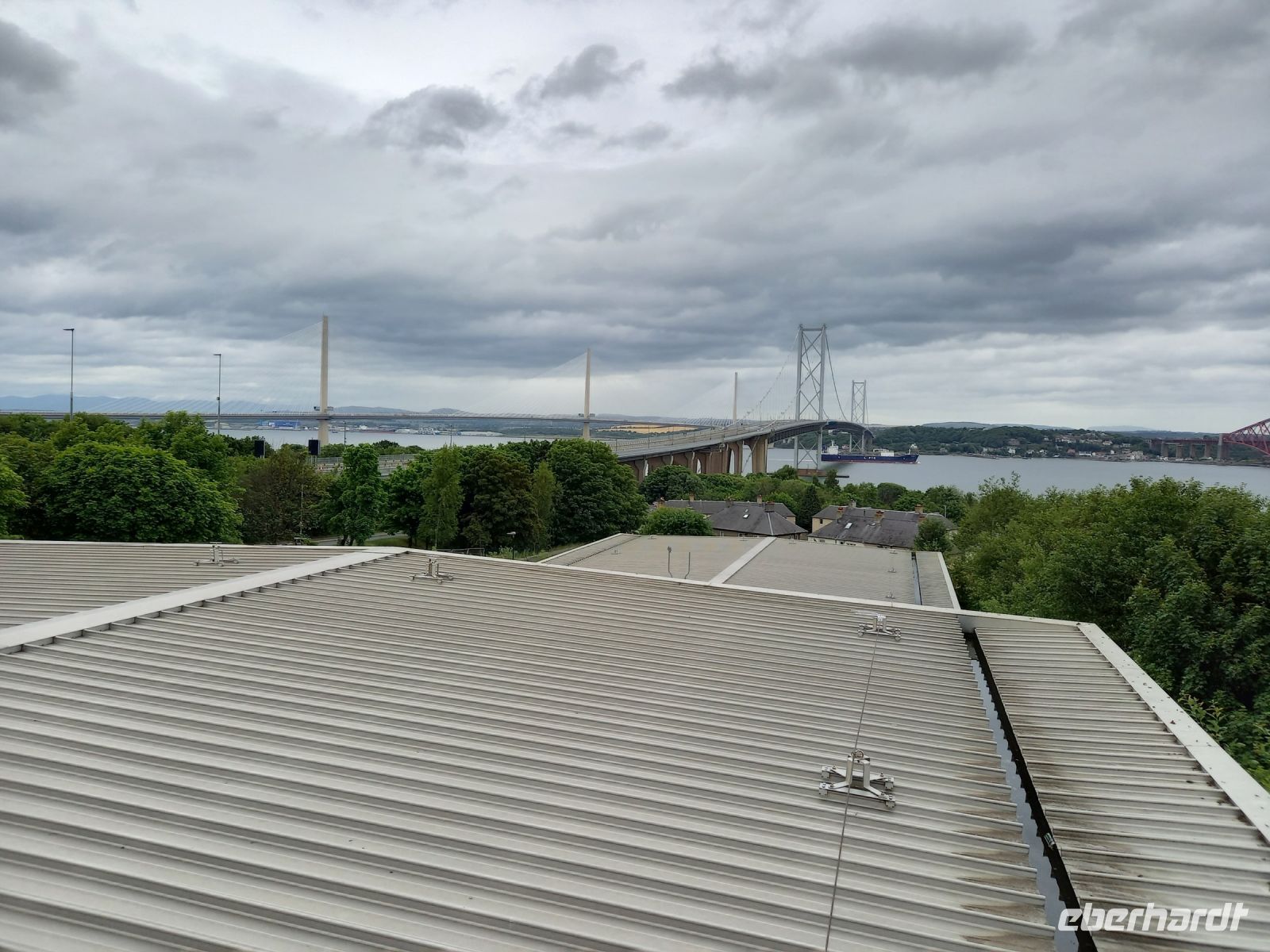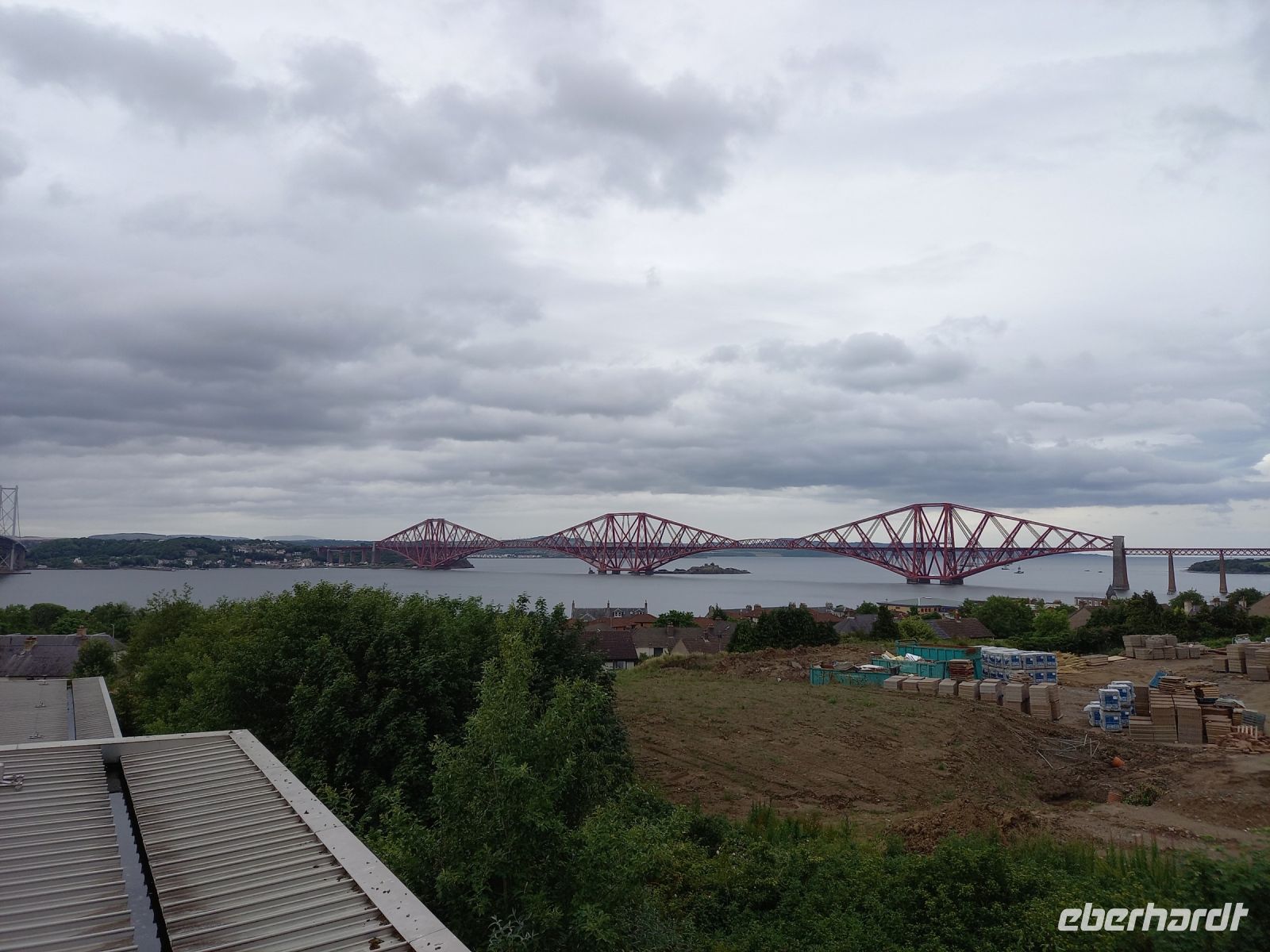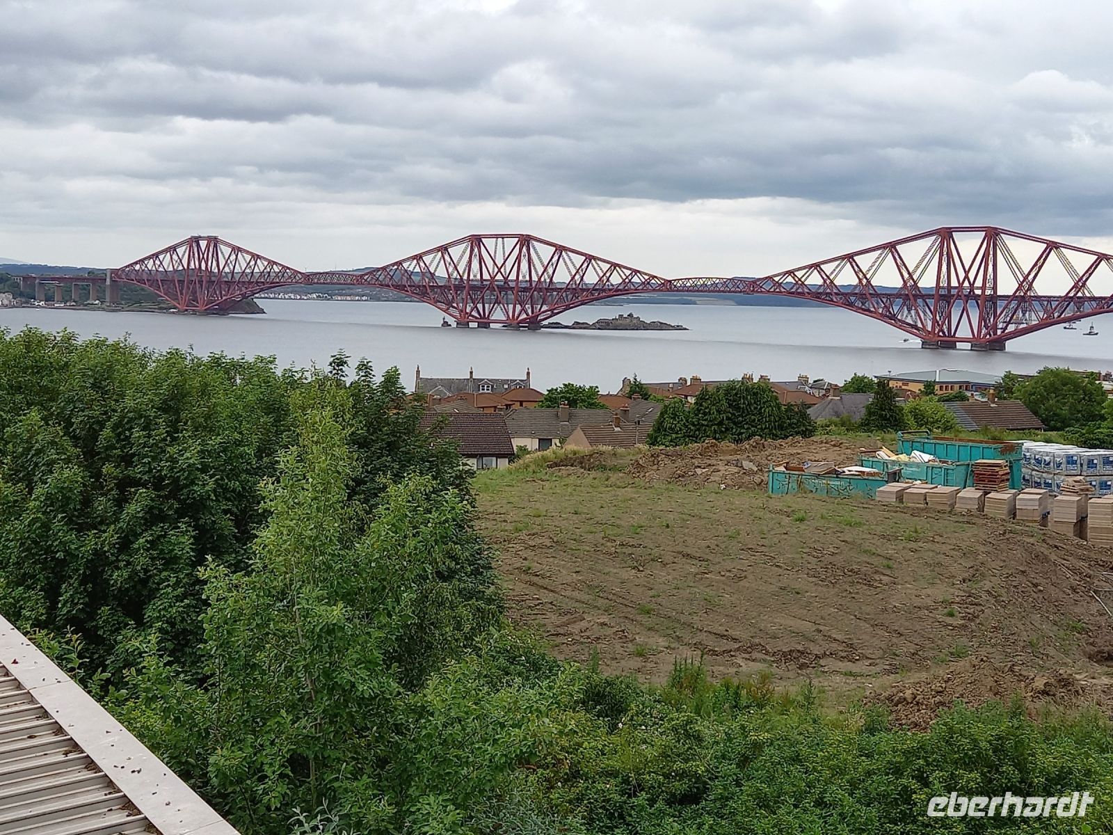 Noch einmal unterbrachen wir nach Dunkeld unsere Fahrt für einen ausgedehnten Fotostopp an den Firth-of-Forth-Bridges. Hier war Gelegenheit gleich drei beeindruckende Brücken zu sehen, die Straßen und Eisenbahn über breite Mündung des Forth führen: die alte Straßenbrücke von 1964 war damals die längste Großbritanniens – ihre Nachfolgerin, die den Verkehr entlasten soll, trägt heute die Hauptstraßen. Vor allem aber die Eisenbahnbrücke von 1890 – übrigens auf der Liste des UNESCO-Weltkulturerbes stehend - gilt bis heute als ingenieurtechnische Meisterleistung.