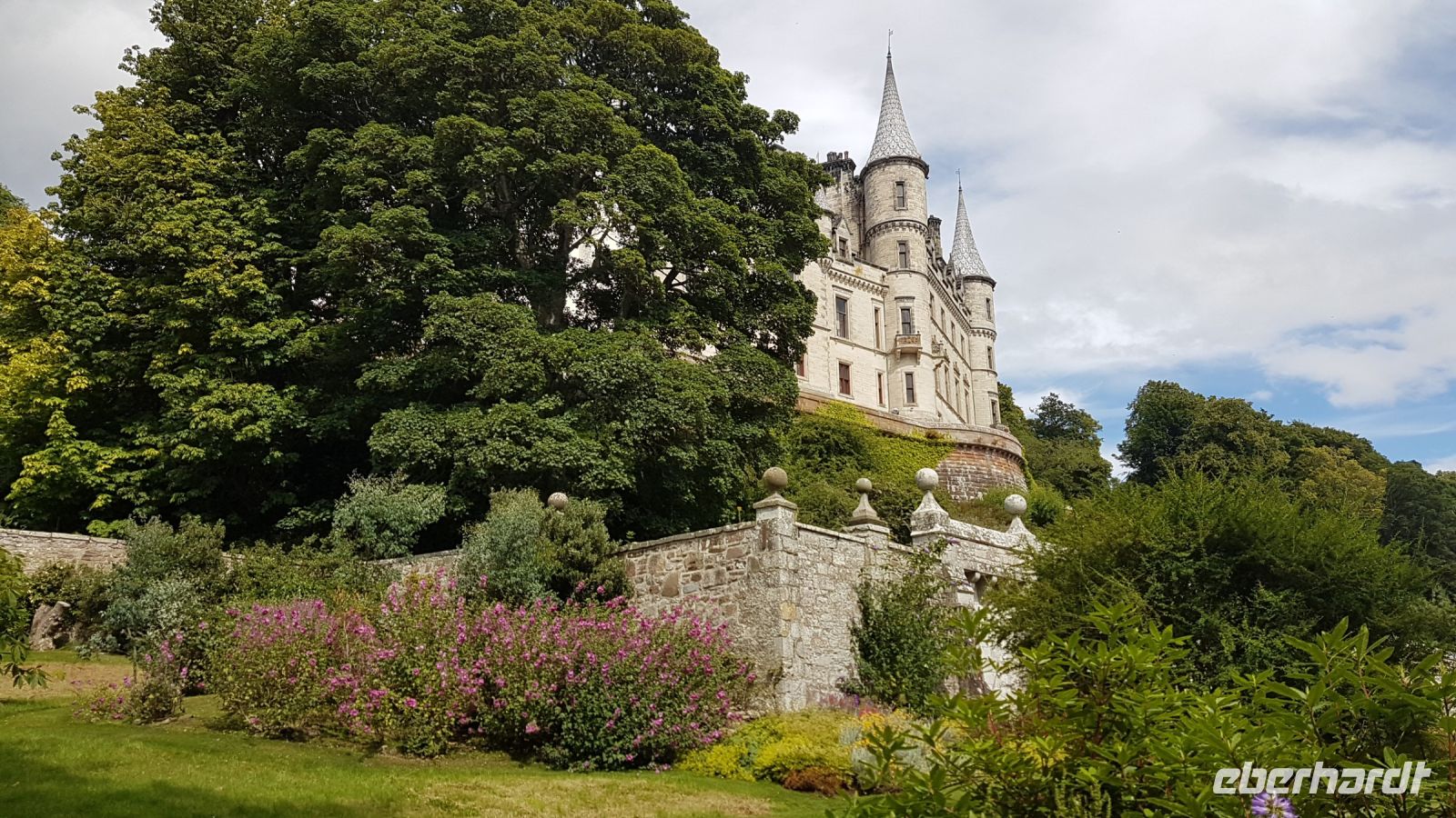 Heute verließen wir Thurso, die nördlichste Stadt auf schottischem Festland. Bei einem schönen Fotostop mit Kaffee vom Bord unseres Busses konnten wir Dunbeath Castle in der Ferne imposant auf einer Klippe über der Nordsee entdecken, ein privates Anwesen, das nur einmal im Jahr die Tore seines Schlossgartens für Besucher öffnet. Gegen Mittag statteten wir Dunrobin Castle einen Besuch ab, seit vielen Generationen der Familiensitz der Earls of Sutherland. Bei einer Falknershow konnten wir diese schnellen Raubvögel beim Fliegen beobachten. Der herrliche Garten im französischen Stil lud zum Verweilen ein, auch das Innere des Schlosses war einen Besuch wert. Wir sahen exquisite Möbel, Gemälde und feines Interieur. Die Lage des im französischen Stil gestalteten Schlosses direkt über einem Strand an der Nordseeküste und seine verspielten Türme, Treppen und Erker konnten schon viele Zuschauer der beliebten ZDF-Filme mit Geschichten von Rosamunde Pilcher bewundern. Am Nachmittag hatten wir noch etwas Freizeit in Inverness, der Hauptstadt der Highlands. Direkt neben der Kathedrale konnte unser Bus parken, wir besichtigten das Gotteshaus, bummelten durch die belebte Innenstadt und über allem thront das Inverness Castle, in dessen Vorgarten Flora McDonald als Statue in die Ferne sieht. Hier hat einst Macbeth geherrscht, der uns allen durch Shakespeare ein Begriff ist.