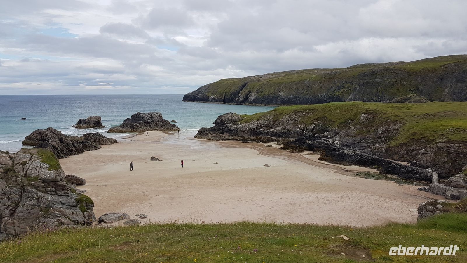 Heute Morgen brachen wir auf und erreichten recht bald den Fährhafen in Stornoway. Wir gingen auf die Fähre und ließen uns ein schmackhaftes Frühstück schmecken. In Ullapool gingen wir von Bord und begannen unsere Rundfahrt durch die schottischen Highlands. An Knockan Crag legten wir unseren ersten Stop ein, hier erfuhren wir einiges über die geologischen Besonderheiten dieser Gegend. An der Kylekin Brücke konnten wir schöne Fotos von der malerischen Umgebung mit Seen und Bergen machen. Nach einiger Zeit erreichten wir Durness, hier gibt es einen berühmten Strand mit Felsen und weißem Sand. Wir besuchten den John Lennon Memorial Garden ganz in der Nähe, hier hat der berühmte Musiker als Kind oft seine Ferien bei seiner Großmutter verbracht. Wir probierten hier schottischen Whisky und Baileys in der herrlichen Landschaft. Smoo Cave erwartete uns gleich danach, eine große Höhle mit mächtigem Wasserfall und herrlichen Ausblicken aufs Meer von verschiedenen Wanderwege aus. Am Abend erwartete uns das Station Hotel in Thurso, das ist die nördlichste Stadt auf schottischem Festland.